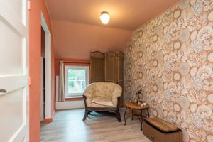 Overloop met toegang naar vijf slaapkamers, separate toiletruimte en de badkamer. De slaapkamers zijn 24 m², 17 m², 11 m², 8 m² en 6 m² groot. De grootste slaapkamer beschikt over een ruime inloopkast.
