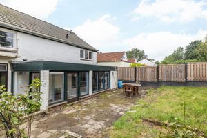 Oprit met voldoende plaats voor het parkeren van meerdere auto's. Voortuin met toegang naar de (inpandige) garage. Aan de linkerzijde is via een oplopend voetpad de entree bereikbaar. Ruime hobbykamer/entree (27 m²) met toegang naar de keuken en via een verdeelhalletje toegang naar de woonkamer. De gezellige woonkamer (36 m²) beschikt over een moderne laminaatvloer, veel lichtinval en staat in verbinding met de keuken. De (gesloten) keuken (14 m²) is ruim van opzet en voorzien van een nette keukeninstallatie. Vanuit de keuken kijkt men uit op de mooie achtertuin. Via de keuken te bereiken badkamer met douche, toilet en wastafel. Eveneens via de keuken te bereiken tuinkamer (18 m²) met trap naar de inpandige garage. De achtertuin is geheel omsloten en biedt enorm veel privacy. De achtertuin is gesitueerd op het noorden en aangelegd met een terras, graszone en diverse borders met aanplant.