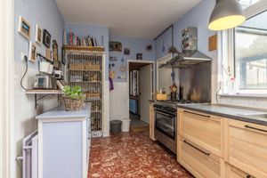 Provisiekelder met opstelling cv-combiketel. Inpandige garage (29 m²) met trap naar de tuinkamer.