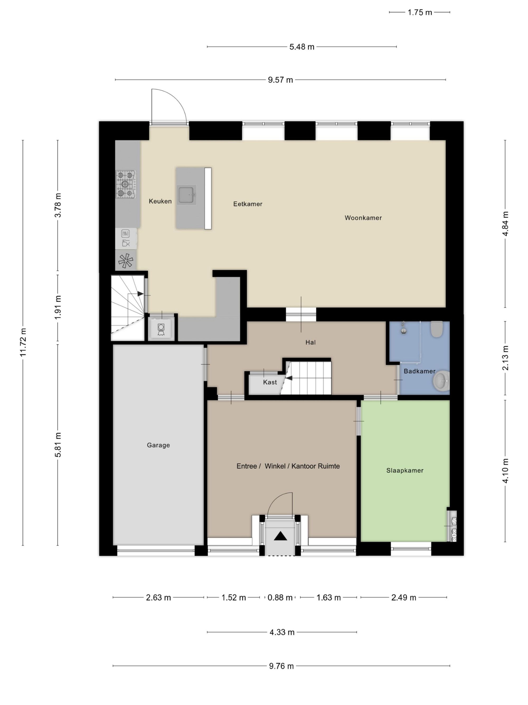 - inpandige garage circa 15m2 met elektrisch bedienbaar rolluik