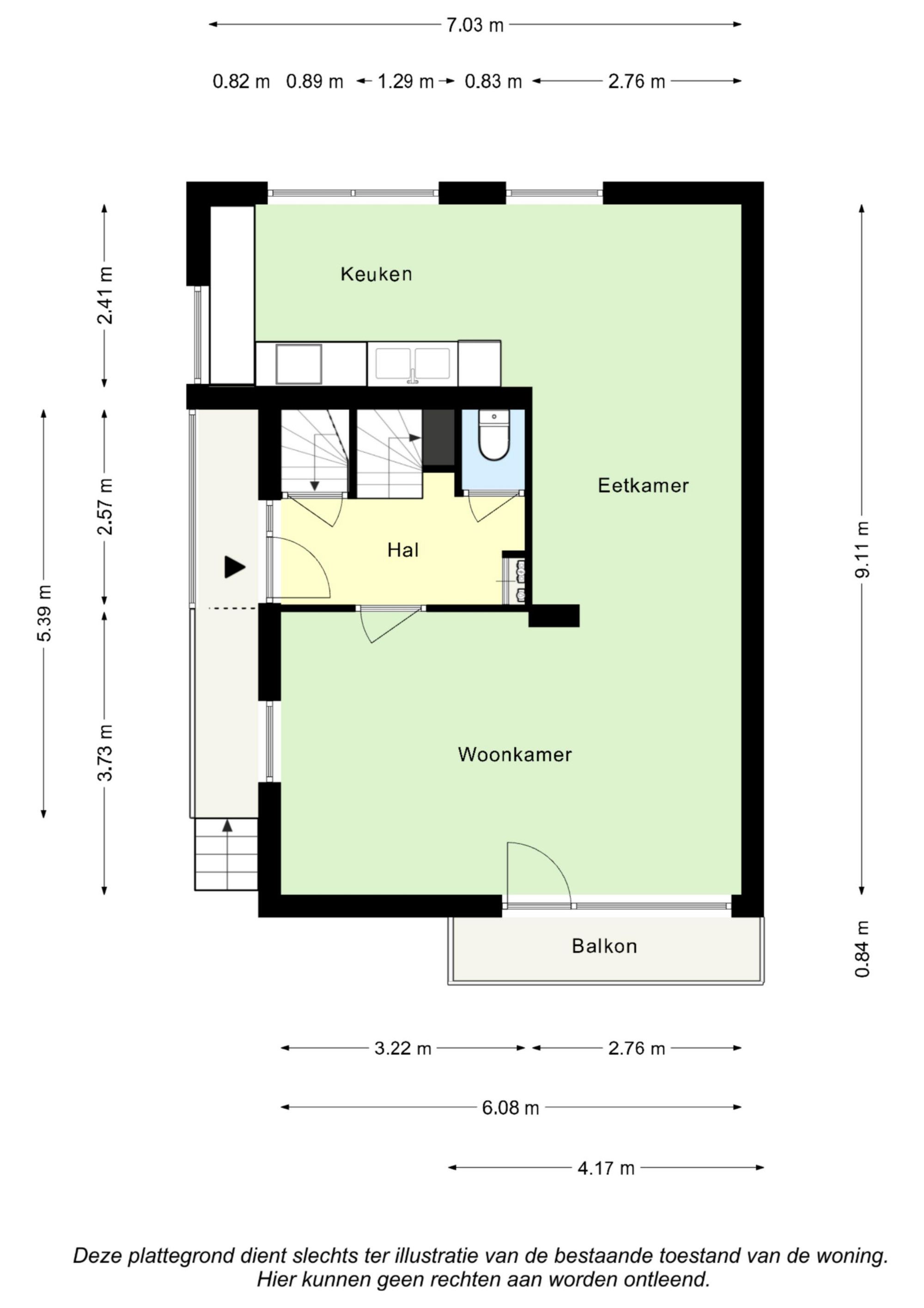 - woonkamer voorzien van lamelparketvloer met toegang tot balkon aan de voorzijde