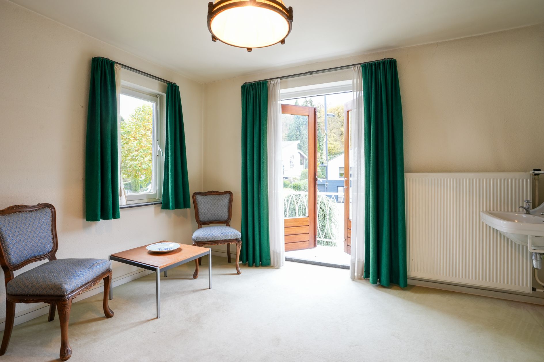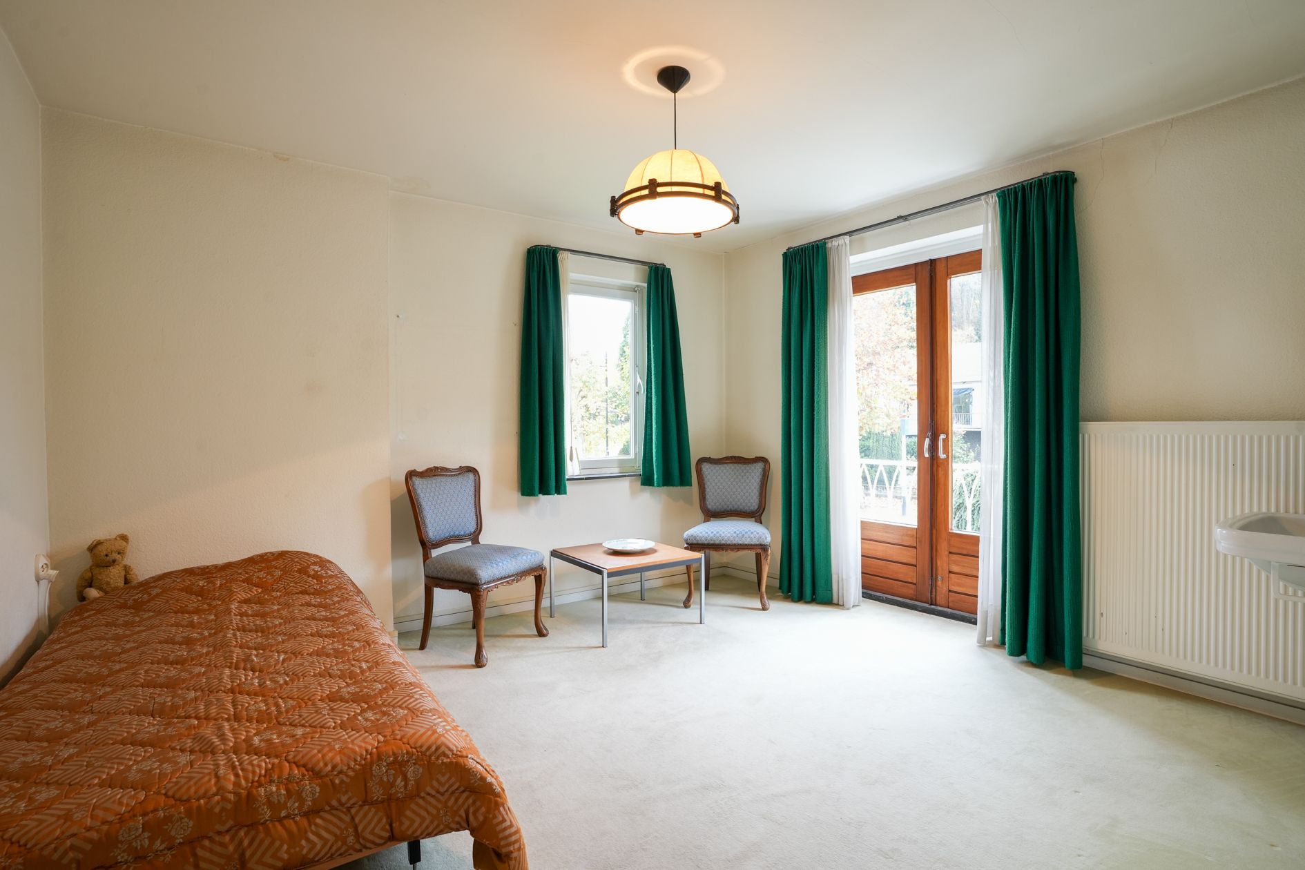 Dubbele bewoning zou mogelijk moeten zijn als men de slaapkamers c.q. kantoorruimtes op de begane grond omvormt tot één vertrek.