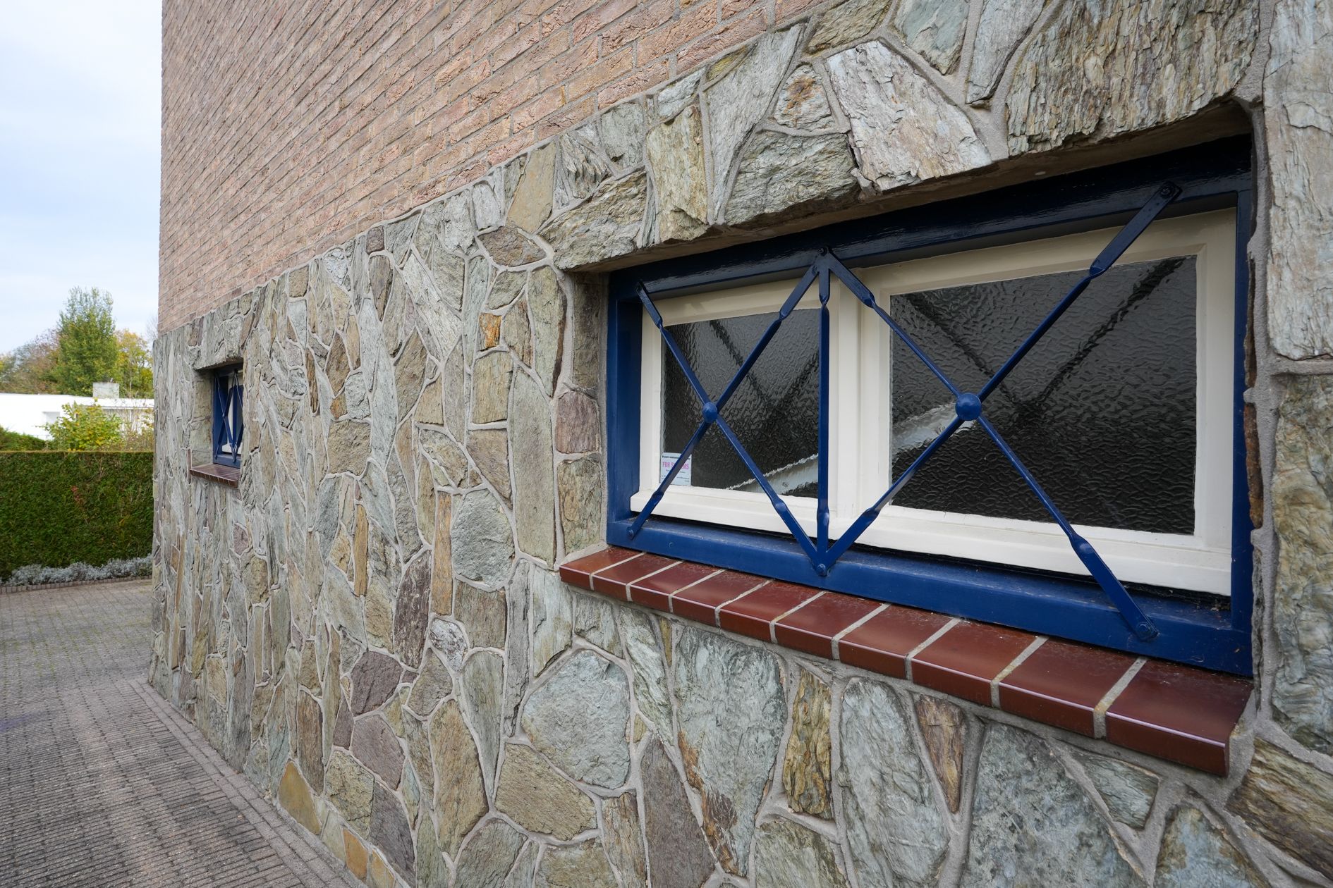 De kozijnen zijn van hout en kunststof, met dubbele beglazing op de begane grond (met uitzondering van de voordeur) en enkele beglazing op de verdieping. Bijna overal zijn rolluiken aangebracht, op de slaapkamer op de verdieping aan de voorzijde is deze elektrisch bediend.