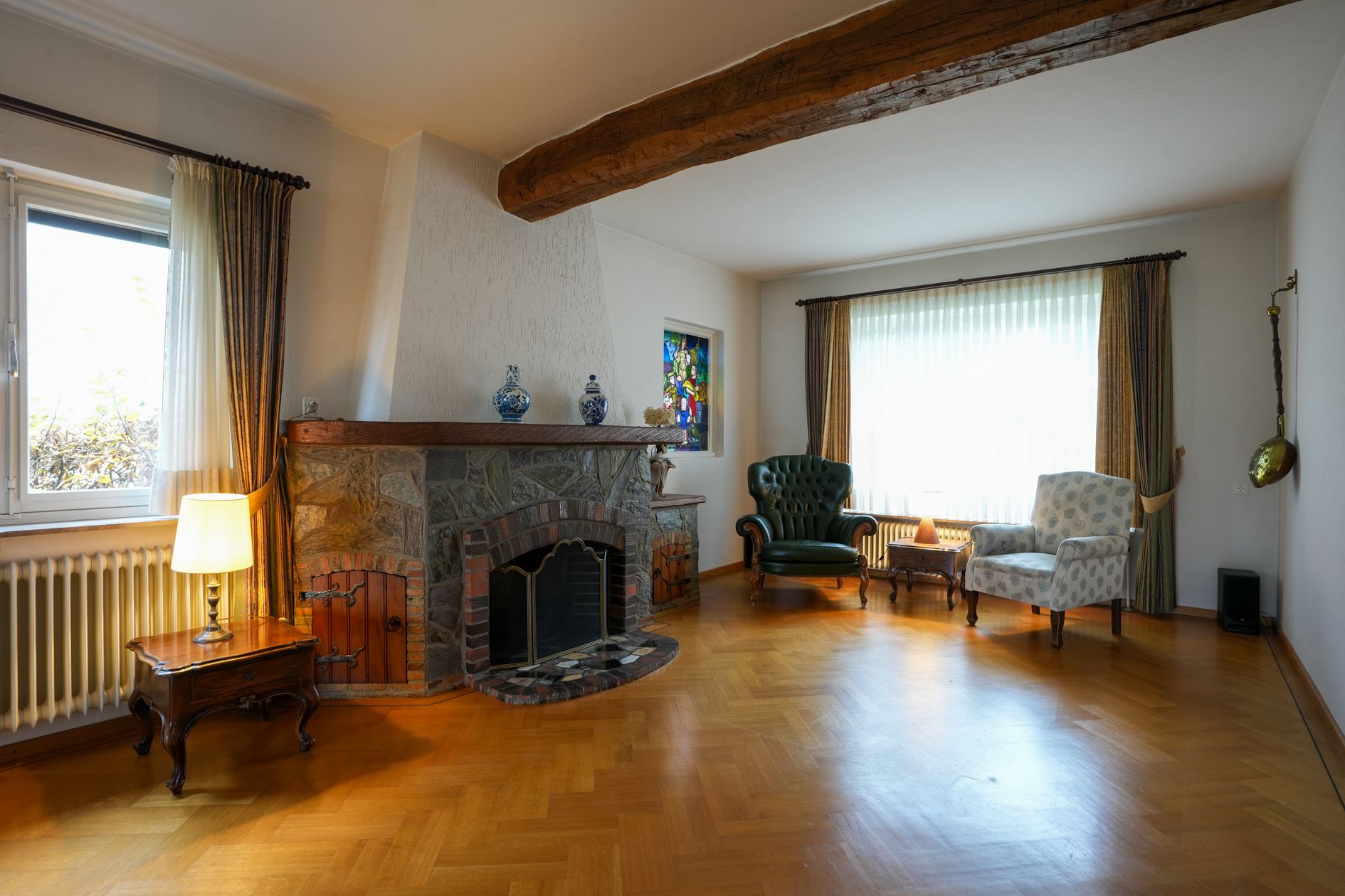 Deze degelijk gebouwde vrijstaande woning heeft authentieke details zoals glas in lood ramen en een balkon op de verdieping aan de voorzijde (slaapkamer). Daarnaast verschaft dit pand de optie tot een praktijkruimte of kantoor aan huis.