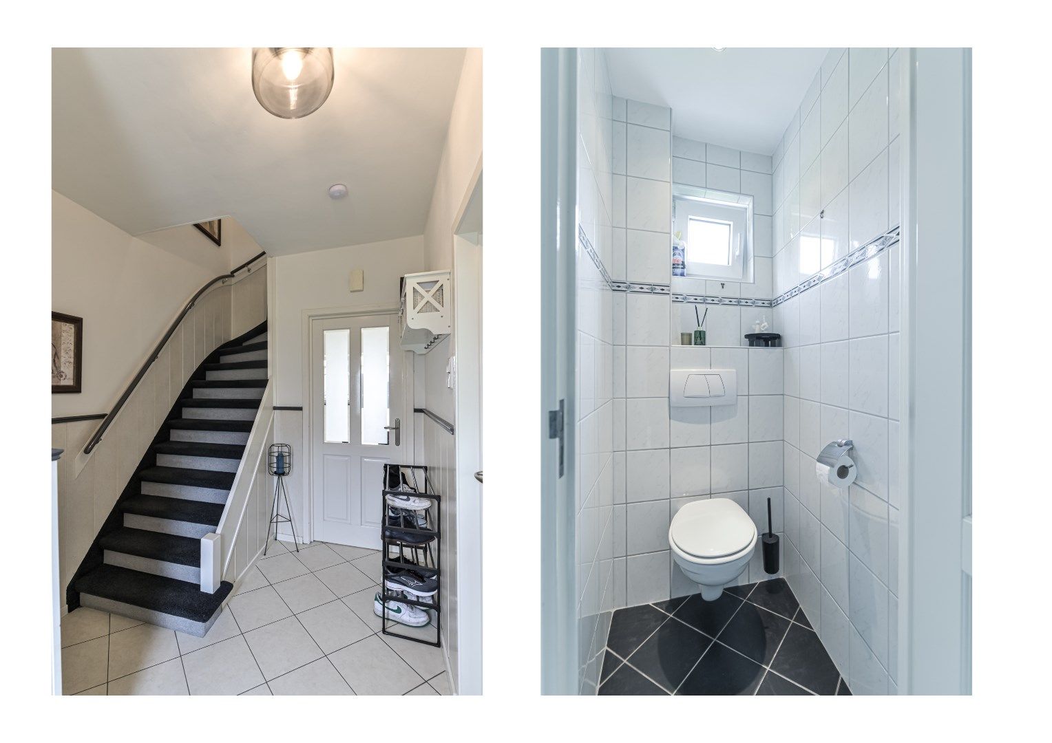 1ste verdieping: overloop met laminaatvloer en muurkast (de muurkast is de voormalige badkamer welke uitermate geschikt is voor het plaatsen van het witgoed). 3 slaapkamers met laminaatvloer waarvan 2 met muurkast. Moderne badkamer (2004) met douche, wastafel, 2de zwevend toilet, designradiator.