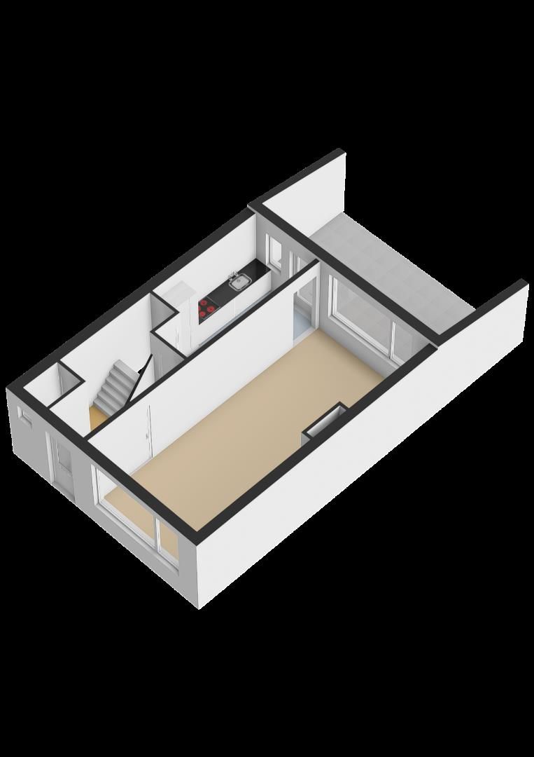 Begane grond: entree met garderobe en keramische tegelvloer. Zwevend toilet (2000). Woonkamer met laminaatvloer (vloer is in 2022 aan de onderzijde geïsoleerd). Nette keuken uit 2002 waarvan vrijwel alle apparatuur in 2021 en 2022 zijn vervangen (koelkast, diepvries, inductiekookplaat en vaatwasser), tevens beschikt de keuken over een afzuigkap en oven met spit.
