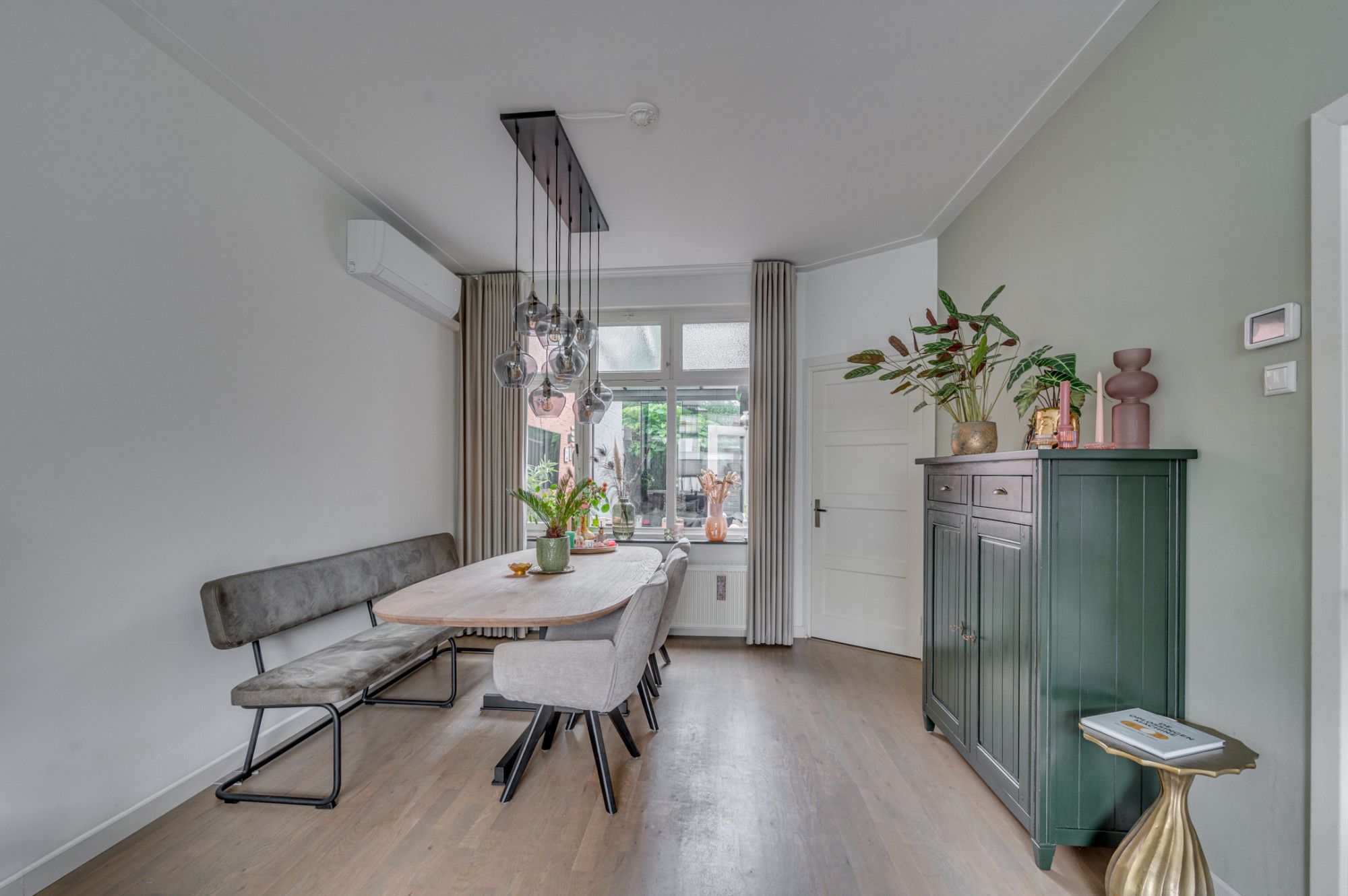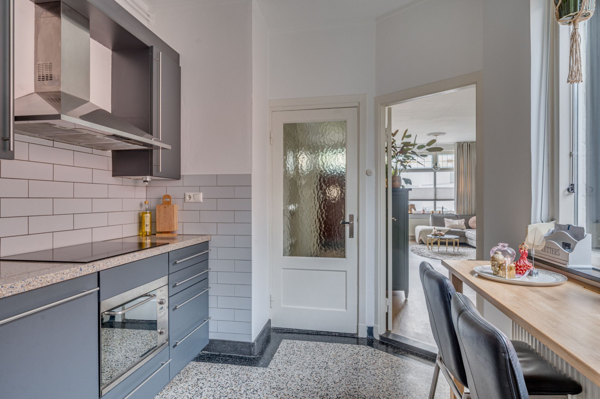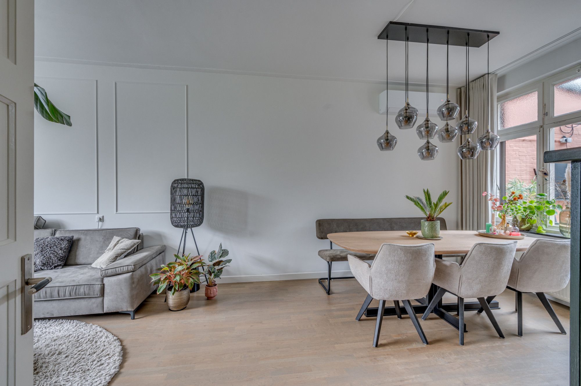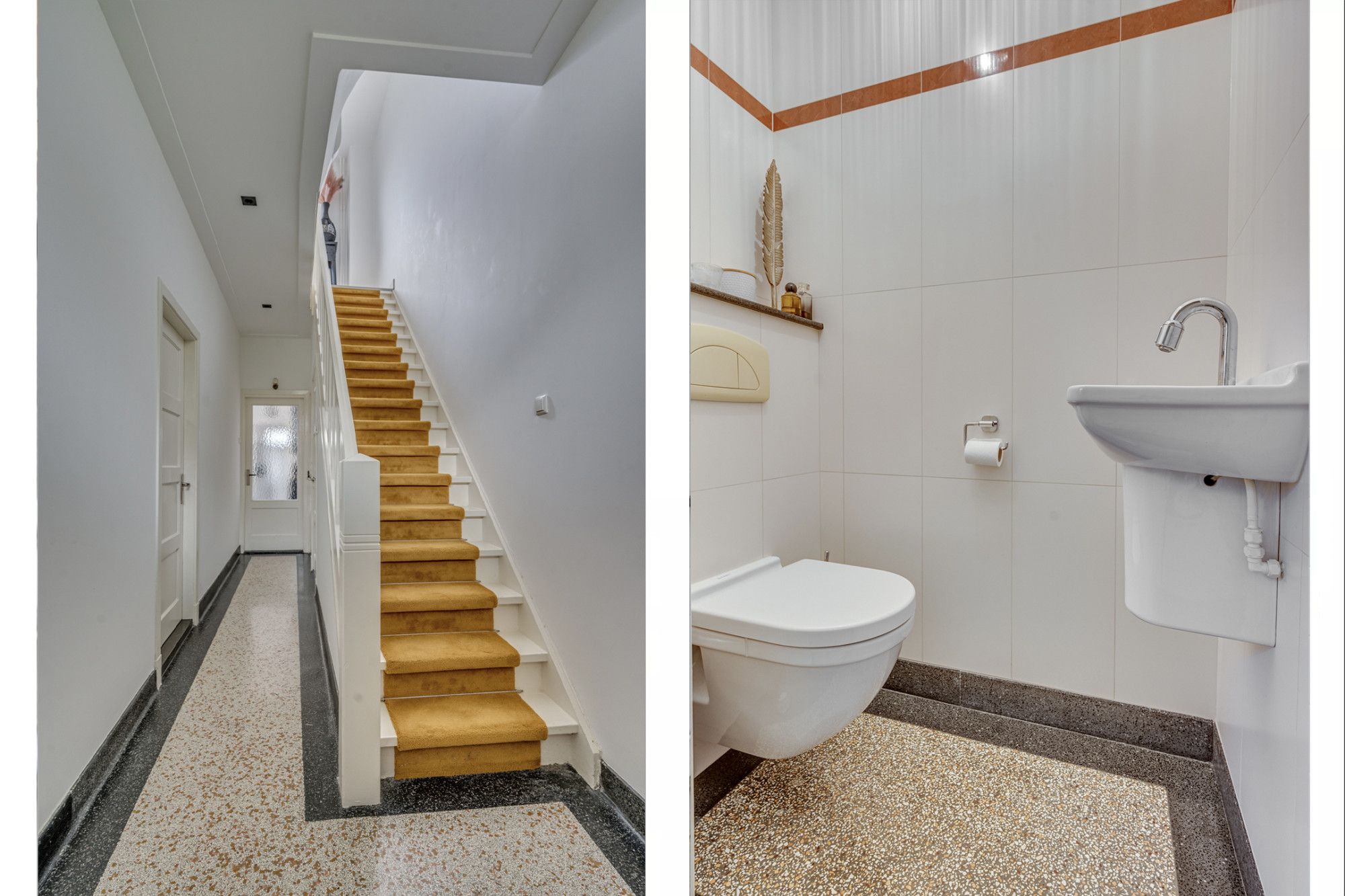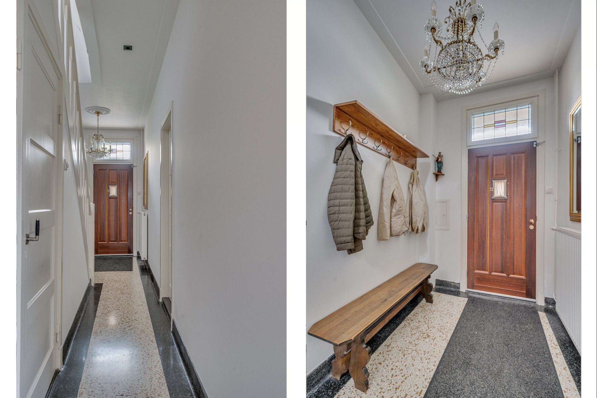 De entree/hal is voorzien van een originele terrazzovloer. De hal geeft toegang tot de statige trapopgang naar de 1e verdieping, de kelder, de toiletruimte en de woonkamer en de keuken. De toiletruimte is voorzien van een zwevend toilet, fonteintje en terrazzovloer. De sfeervolle woonkamer (ca. 29m2) heeft aan de voorzijde een erker met glas-in-loodramen. Verder is de woonkamer voorzien van een eiken parketvloer en een airco. Vanuit de woonkamer is middels een loopdeur toegang tot de keuken (ca.9m2). De keuken is ingericht met een 4-pitsinductieplaat, afzuigkap, combi oven-magnetron , vaatwasser en een close in boiler. De keuken is voorzien van een terrazzovloer. De keuken geeft toegang tot de bijkeuken. In de bijkeuken bevinden zich de aansluitingen voor wasmachine en droger en een aansluiting voor diepvries en koelkast en er staat een keukenblok. Middels een loopdeur bereikt men de tuin.