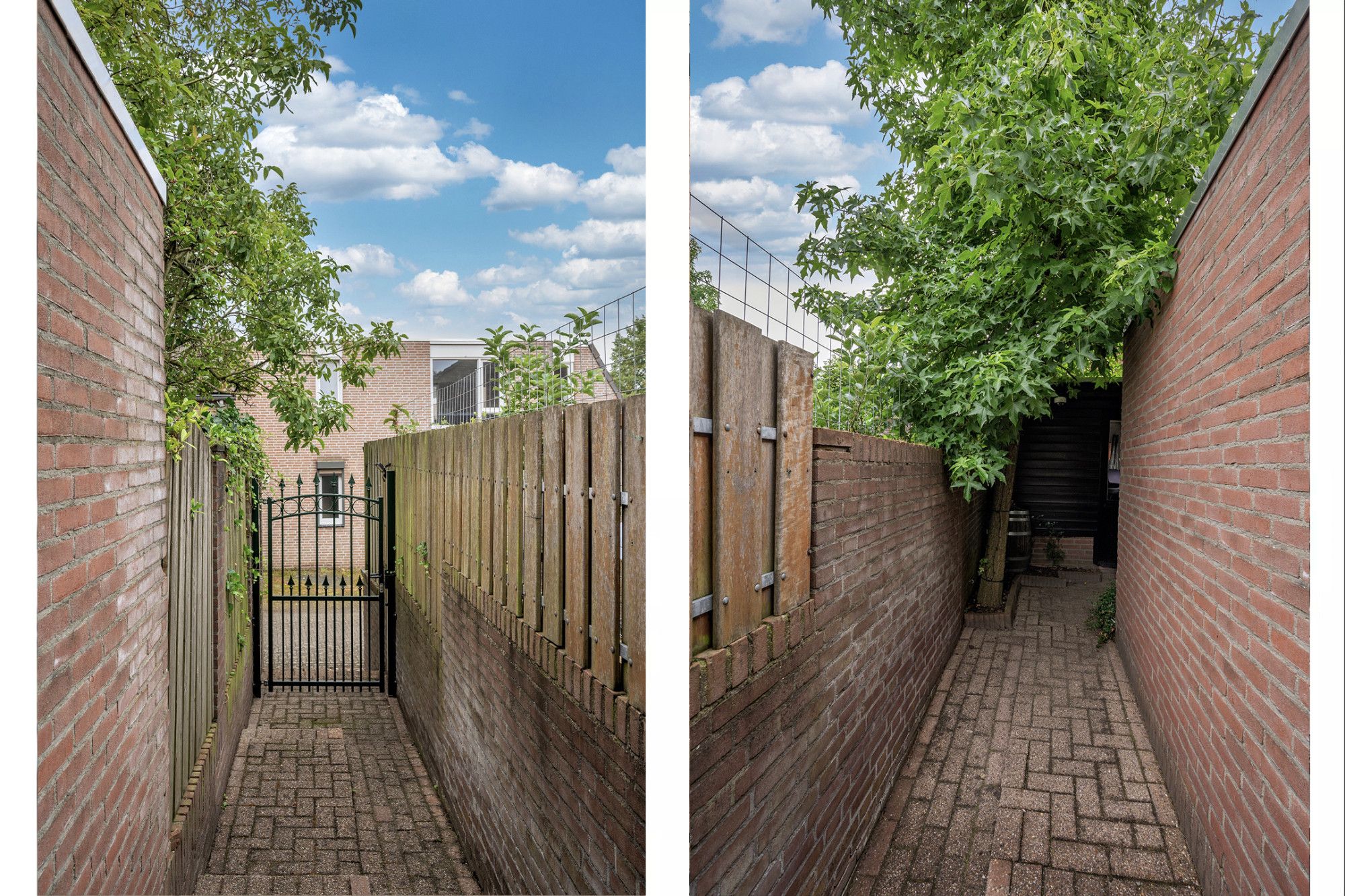 De onderhoudsvriendelijke tuin heeft een glazen overkapping met schuifdeuren, borders met beplanting, terras en een tuinhuis voorzien van elektra. De tuin is gelegen op het westen en is te bereiken middels een vrije achterom.