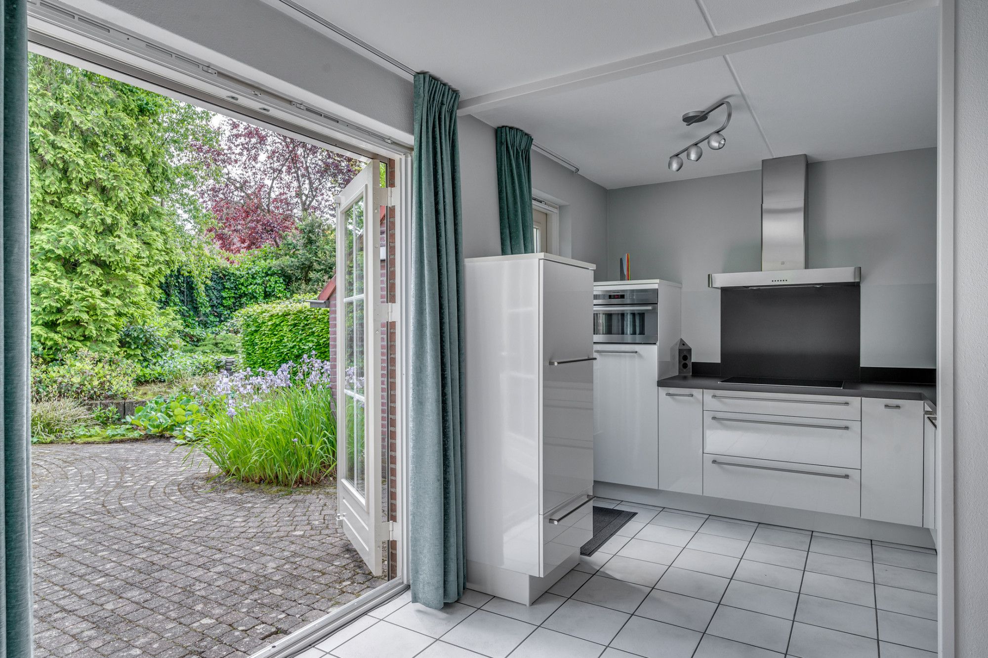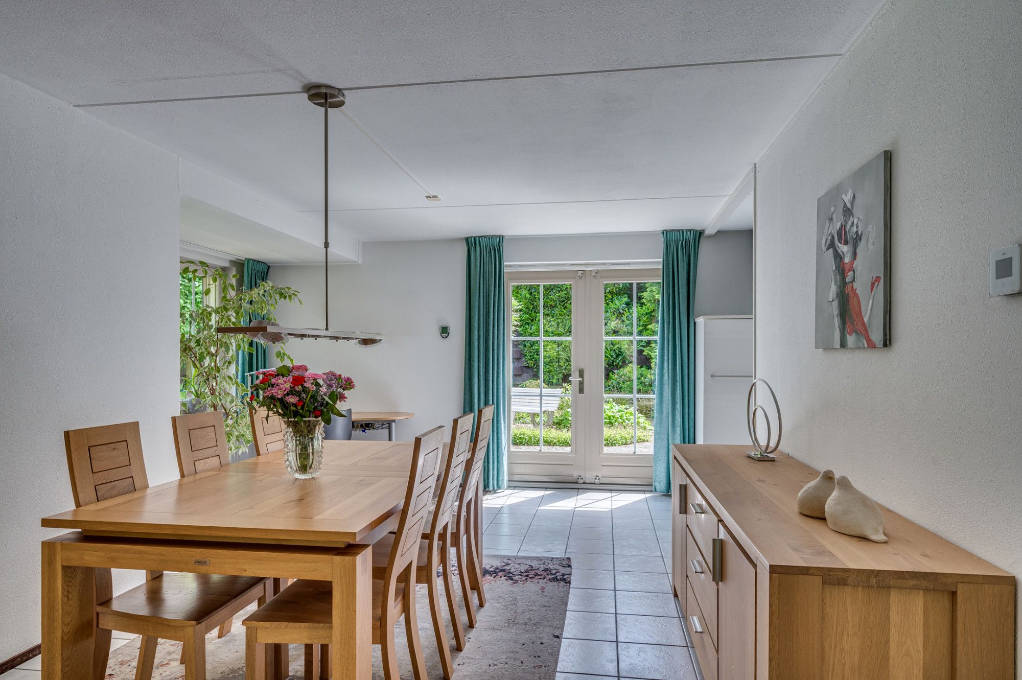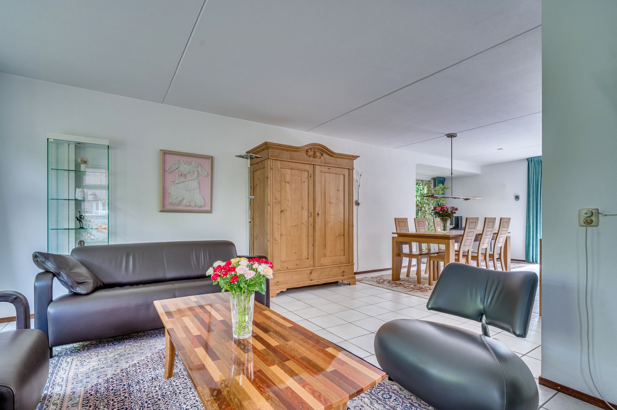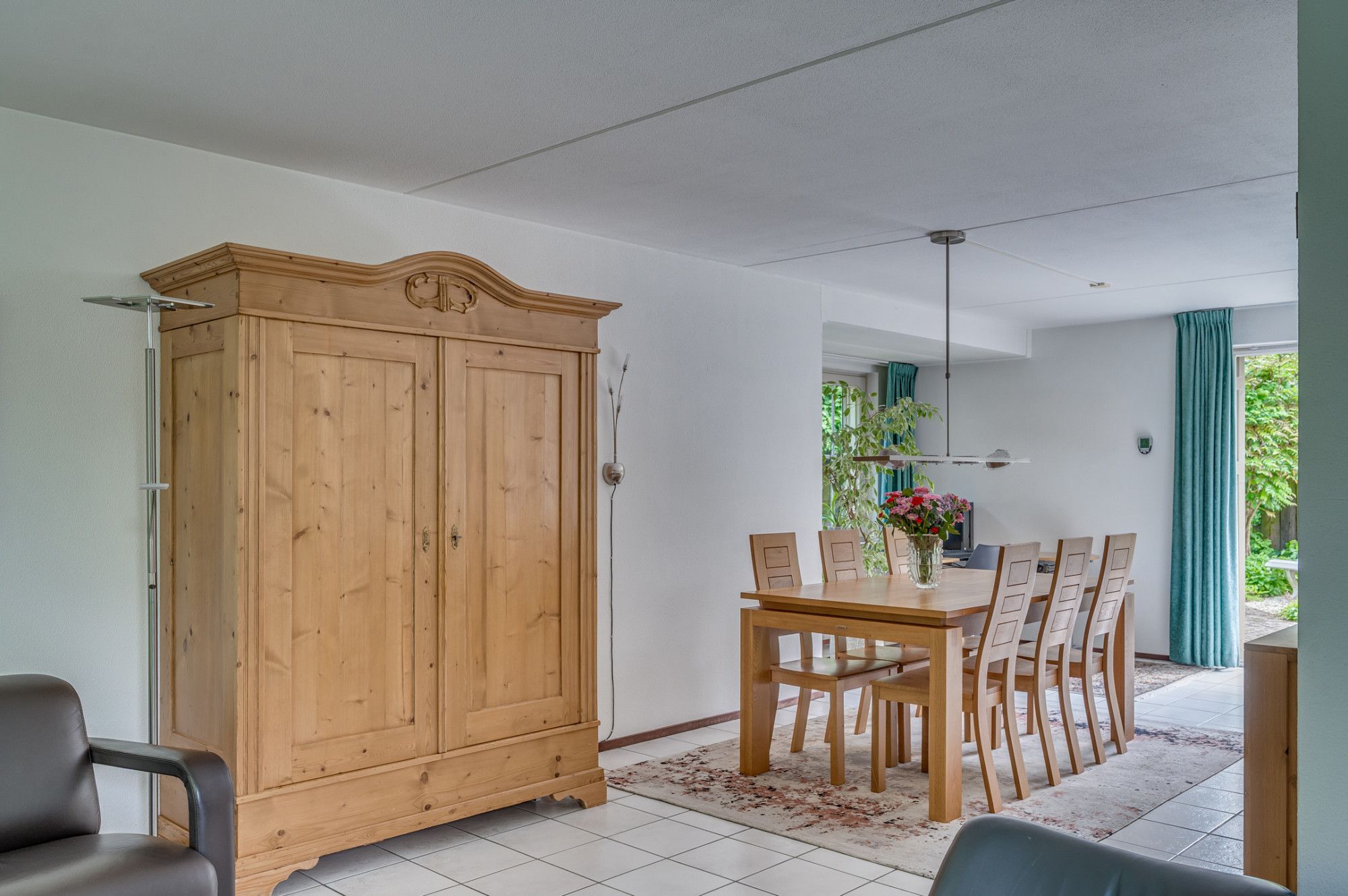 Zowel de overdekte entree als de garage zijn te betreden vanuit de beklinkerde oprit. De hal met tegelvloer geeft toegang de meterkast, toiletruimte, trapopgang naar de 1e verdieping en de woonkamer. De toiletruimte is voorzien van een fontein en closet. De royale L-vormige woonkamer (ca. 42m2) is voorzien van een tegelvloer met vloerverwarming, gestucte wanden en een lichte open keuken. De moderne L-vormige keuken (ca. 6m2) is ingericht met een 4-pits inductiekookplaat, afzuigkap, koelkast, diepvries, combimagnetron en vaatwasser. Vanuit de eetkamer is via de openslaande tuindeuren de mooie groene privacyrijke tuin te betreden. Vanuit de tuin is ook de inpandige garage (ca. 20m2) te bereiken.