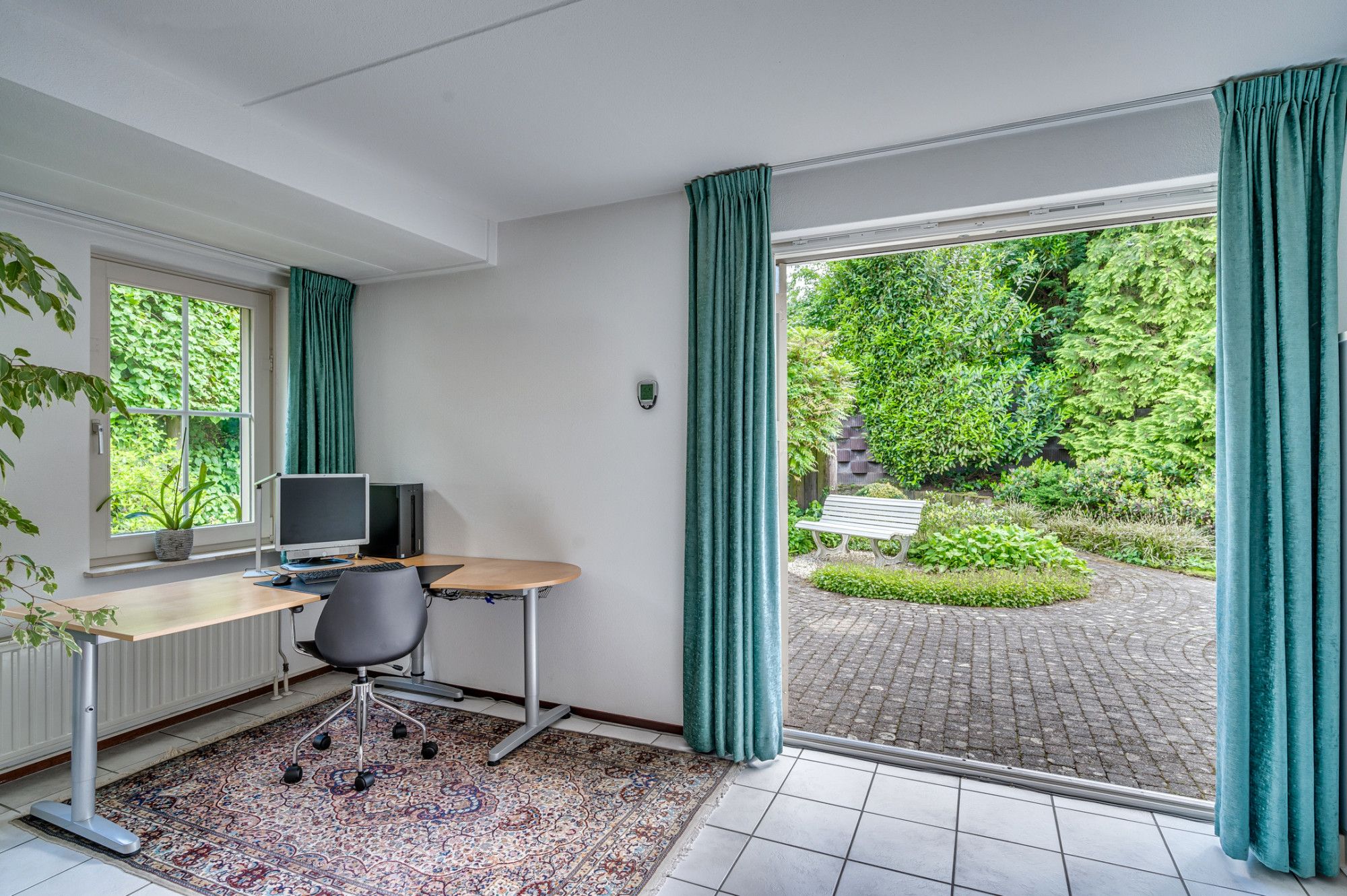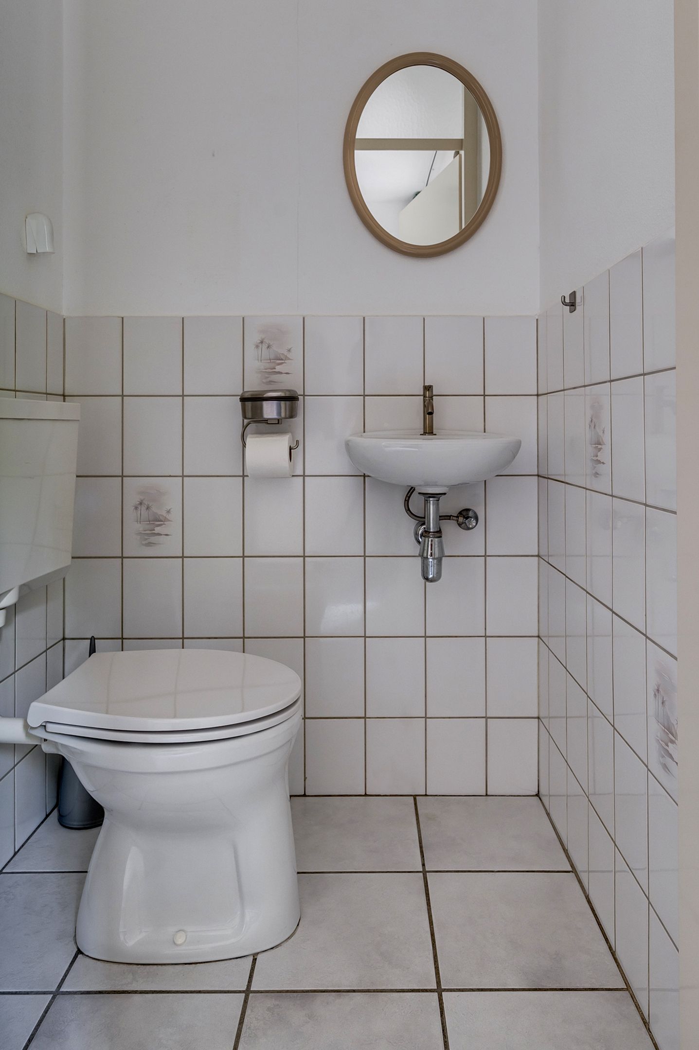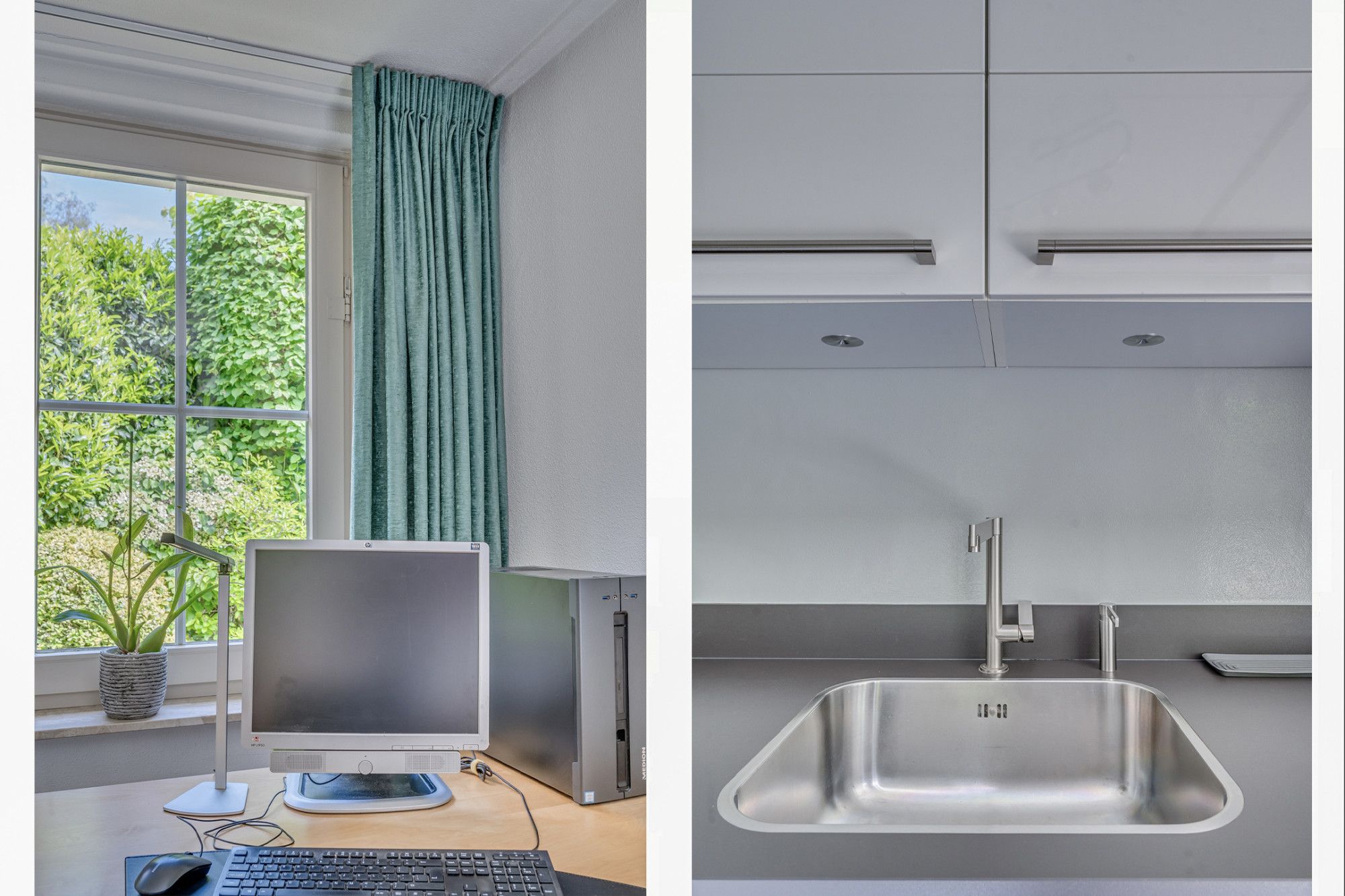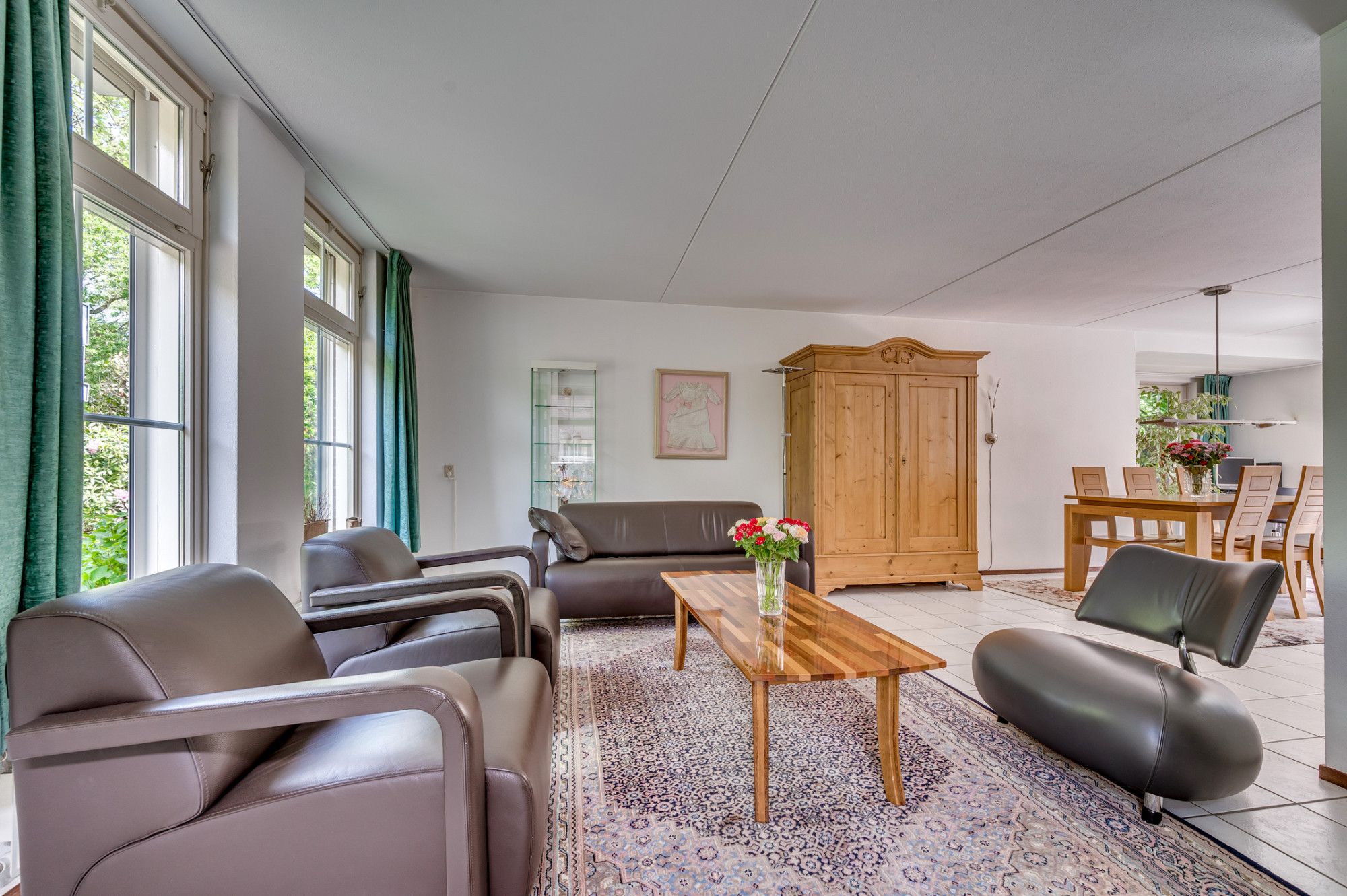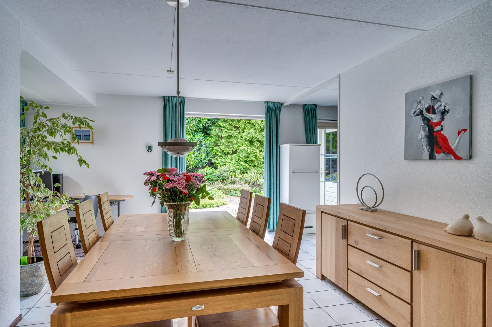 Zowel de overdekte entree als de garage zijn te betreden vanuit de beklinkerde oprit. De hal met tegelvloer geeft toegang de meterkast, toiletruimte, trapopgang naar de 1e verdieping en de woonkamer. De toiletruimte is voorzien van een fontein en closet. De royale L-vormige woonkamer (ca. 42m2) is voorzien van een tegelvloer met vloerverwarming, gestucte wanden en een lichte open keuken. De moderne L-vormige keuken (ca. 6m2) is ingericht met een 4-pits inductiekookplaat, afzuigkap, koelkast, diepvries, combimagnetron en vaatwasser. Vanuit de eetkamer is via de openslaande tuindeuren de mooie groene privacyrijke tuin te betreden. Vanuit de tuin is ook de inpandige garage (ca. 20m2) te bereiken.