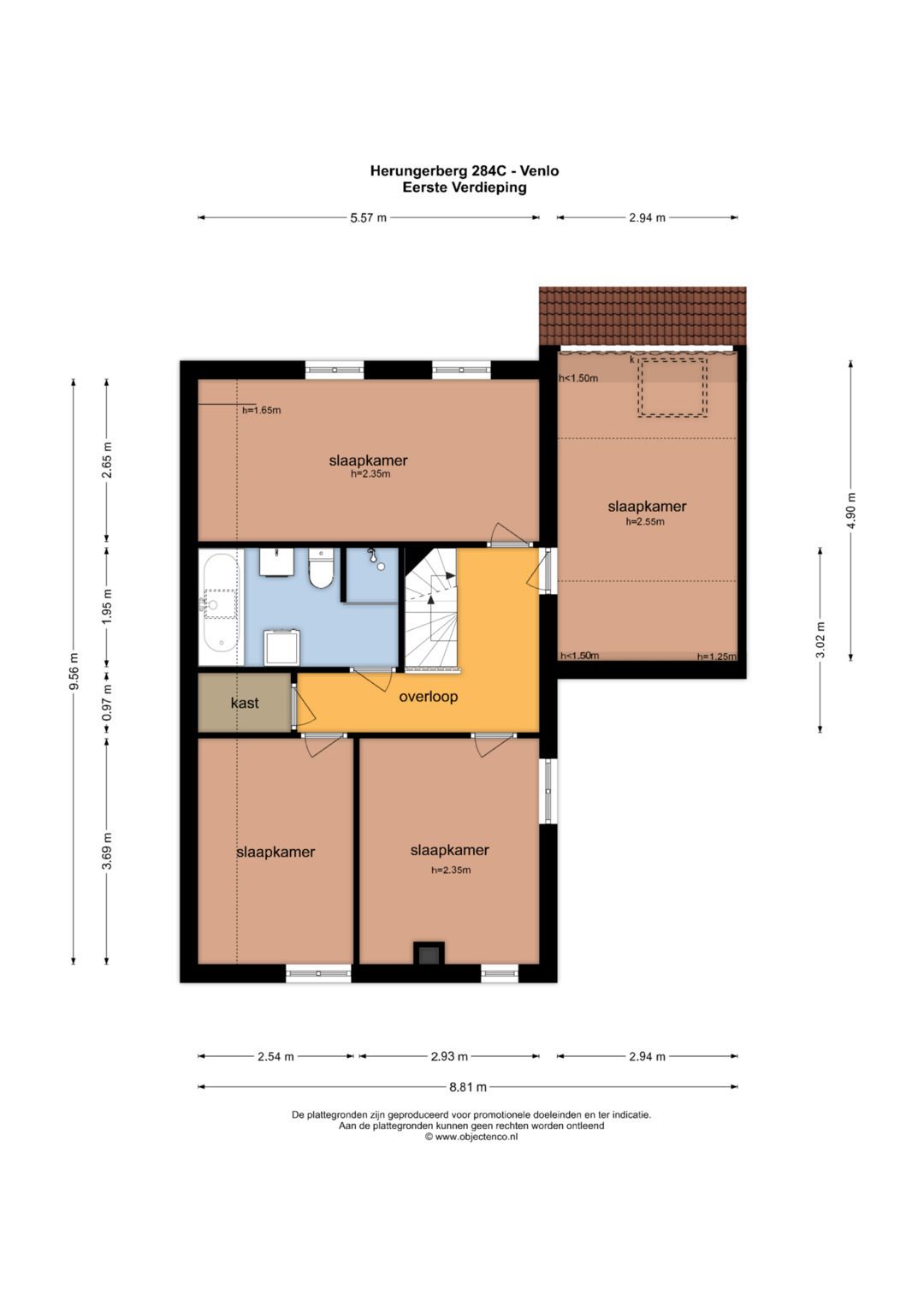 De riante overloop geeft toegang tot de 4 ruime slaapkamers, de badkamer en vaste trap naar de zolder en bergkast. De overloop en de 4 slaapkamers van ca. 9m2, ca. 11m2, ca. 13,5m2 en ca. 14m2 zijn voorzien van vloerbedekking. De badkamer van ca. 6.5m2 is ingericht met een inloopdouche, ligbad, hangend closet, wastafel, dakvenster en witgoedaansluitingen (deze kunne verplaatst worden).