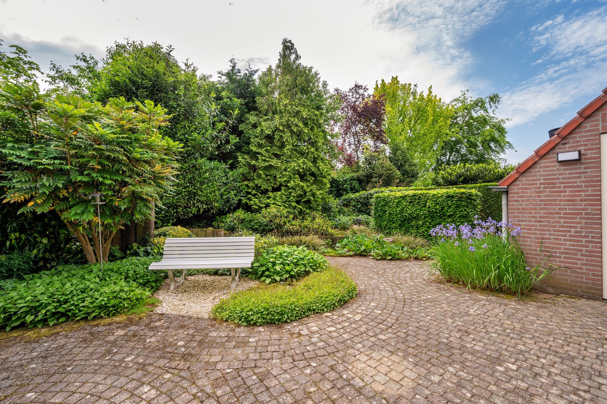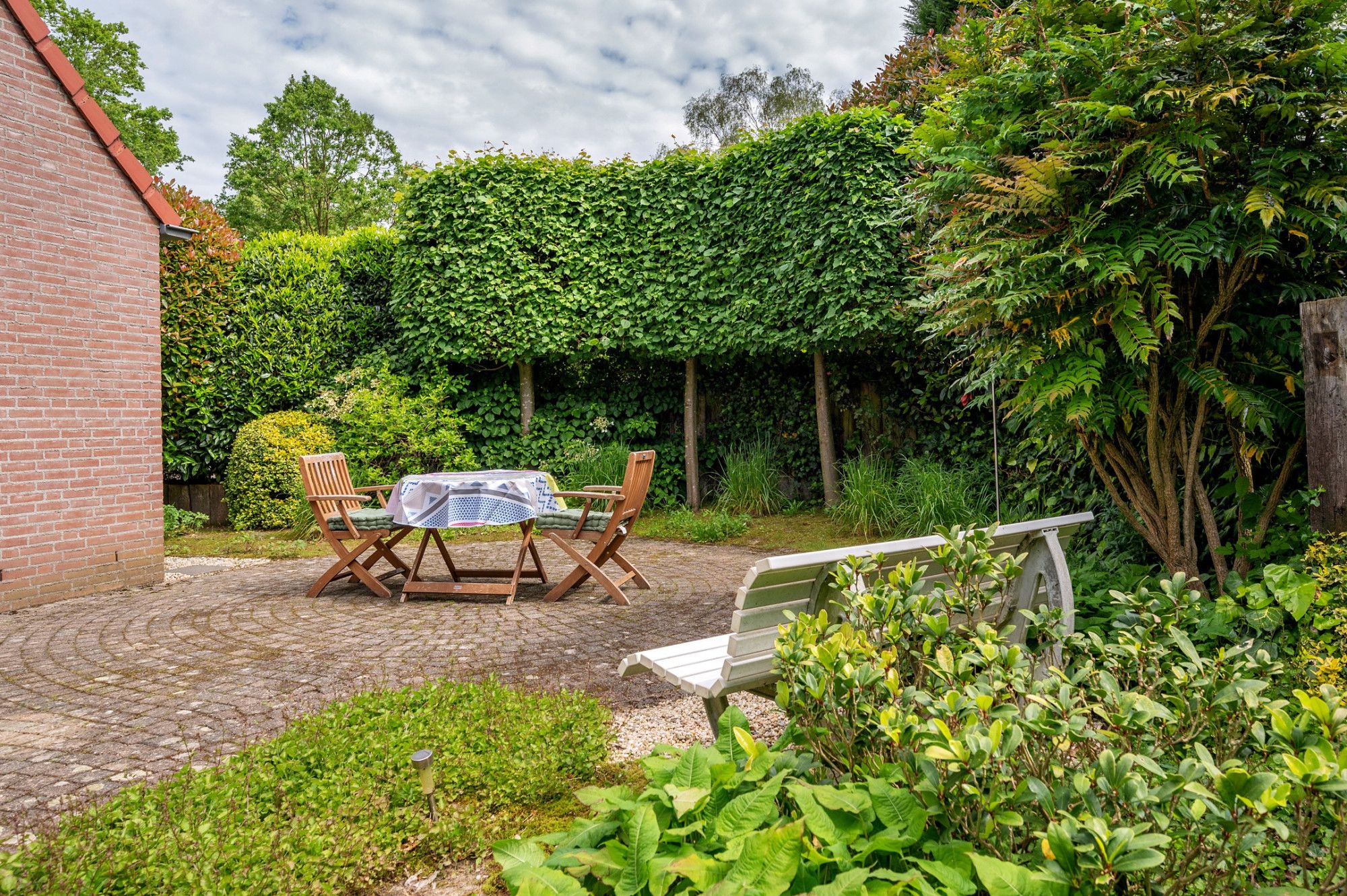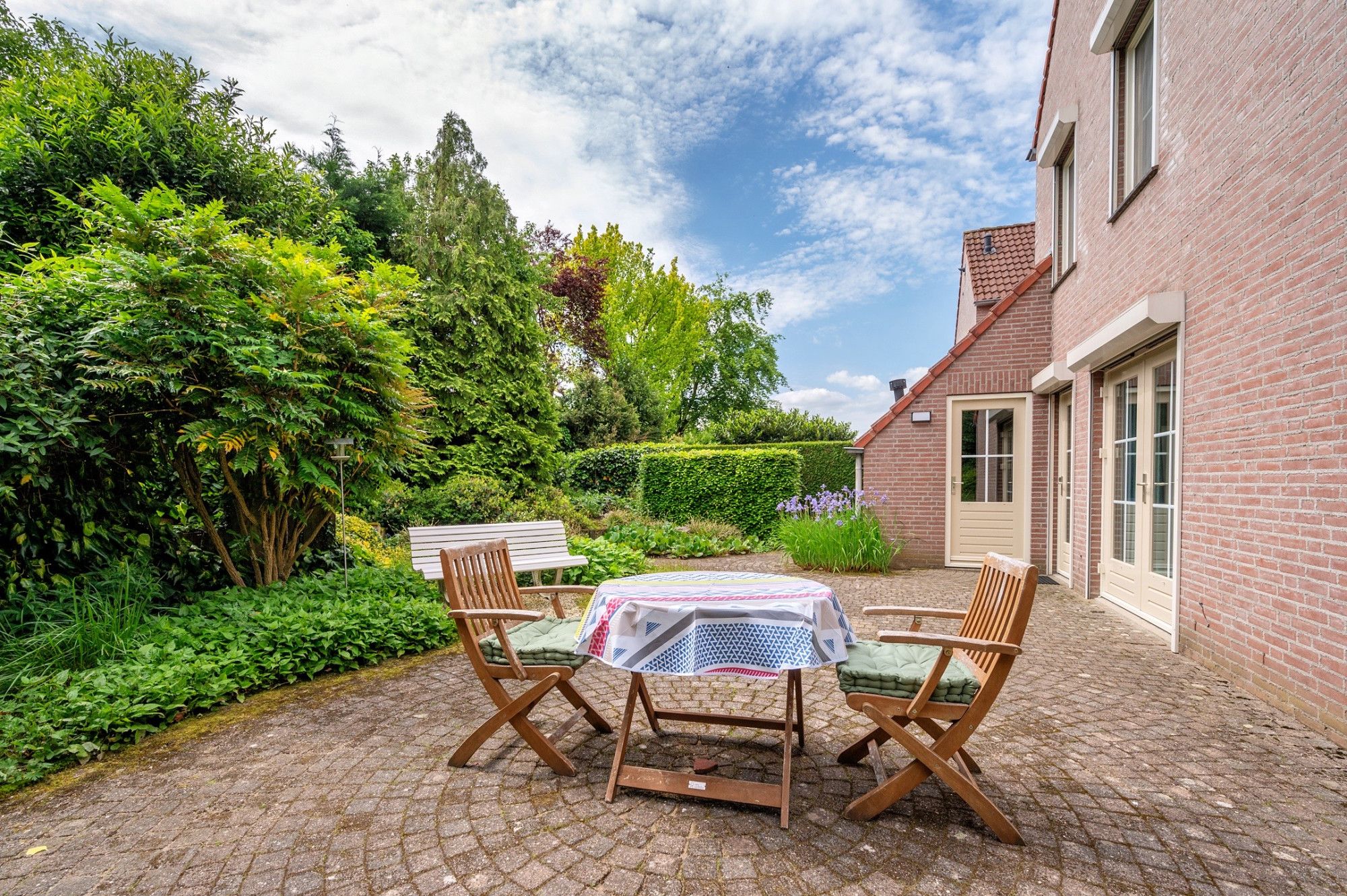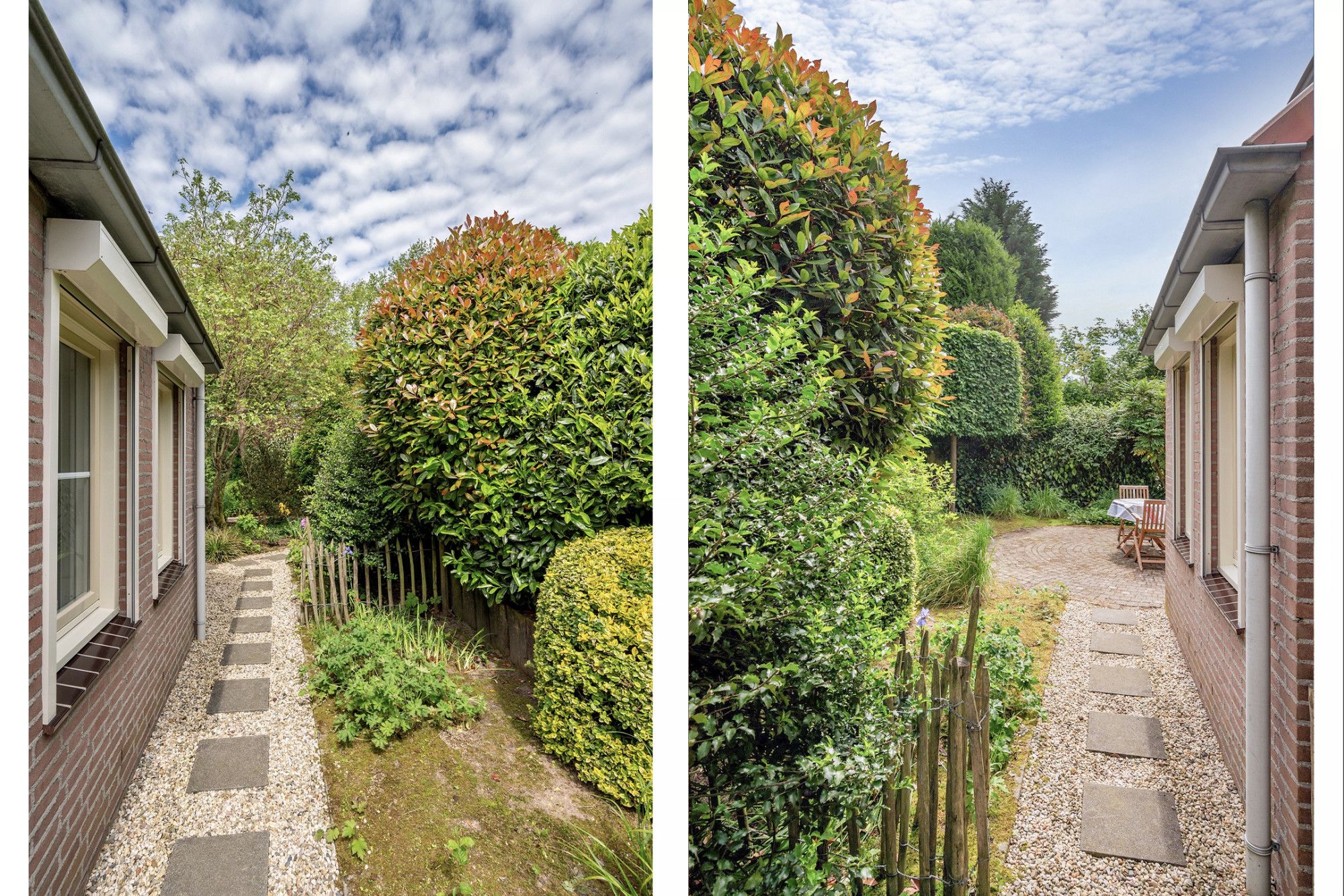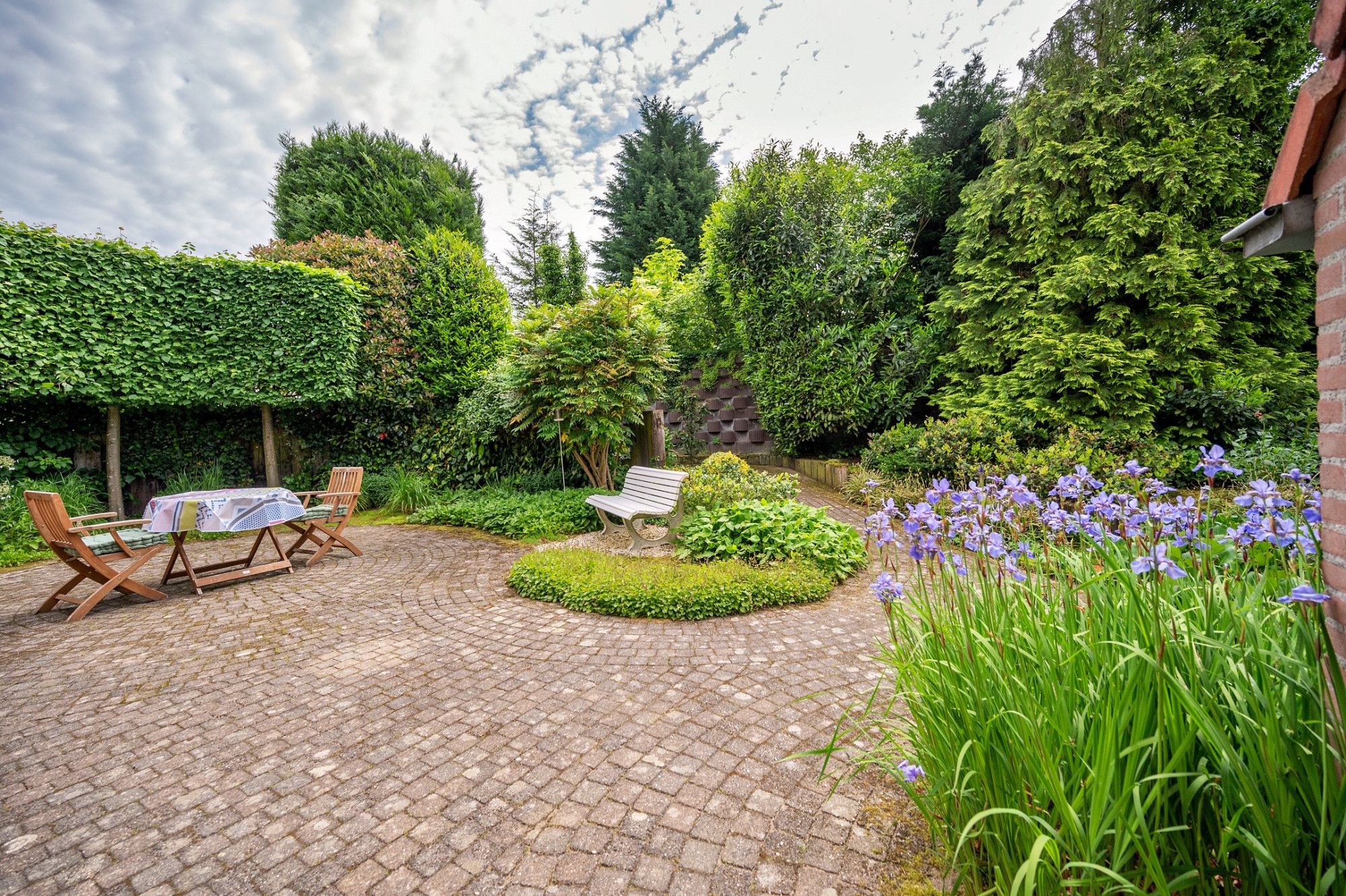 De voortuin is voorzien van een ruime beklinkerde oprit welke plek biedt aan 3 auto’s. Verder is de voortuin nog voorzien van groen met beplanting. De onderhoudsvriendelijke achtertuin is op het Zuidoosten gelegen en grotendeels beklinkerd. De achtertuin, met extra goede afwatering middels grindputten, is voorzien van een achterom, ruim terras en volledig omringd in het groen en biedt veel privacy.