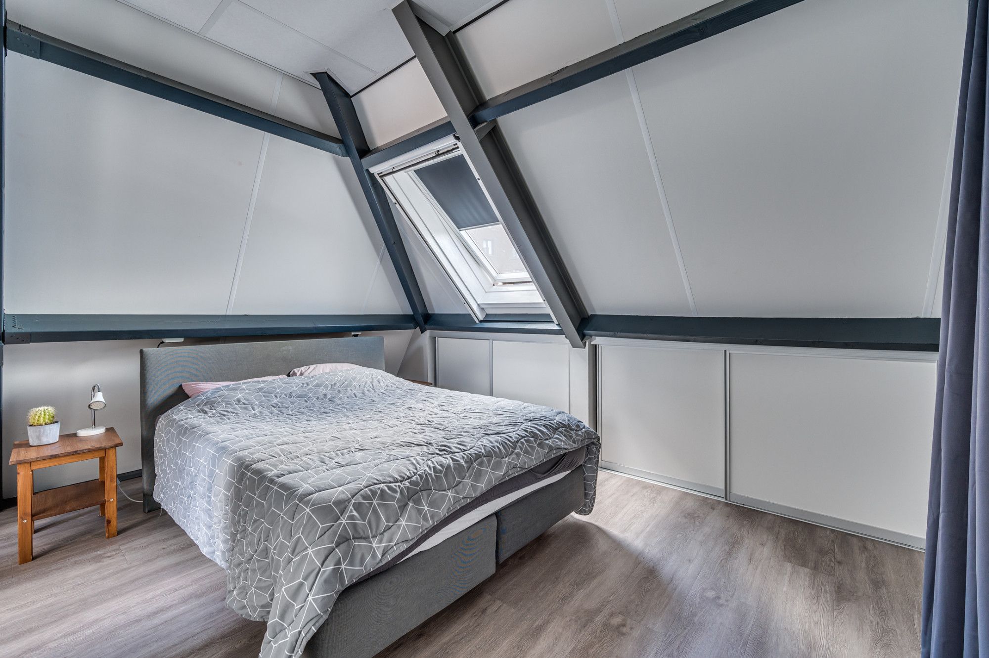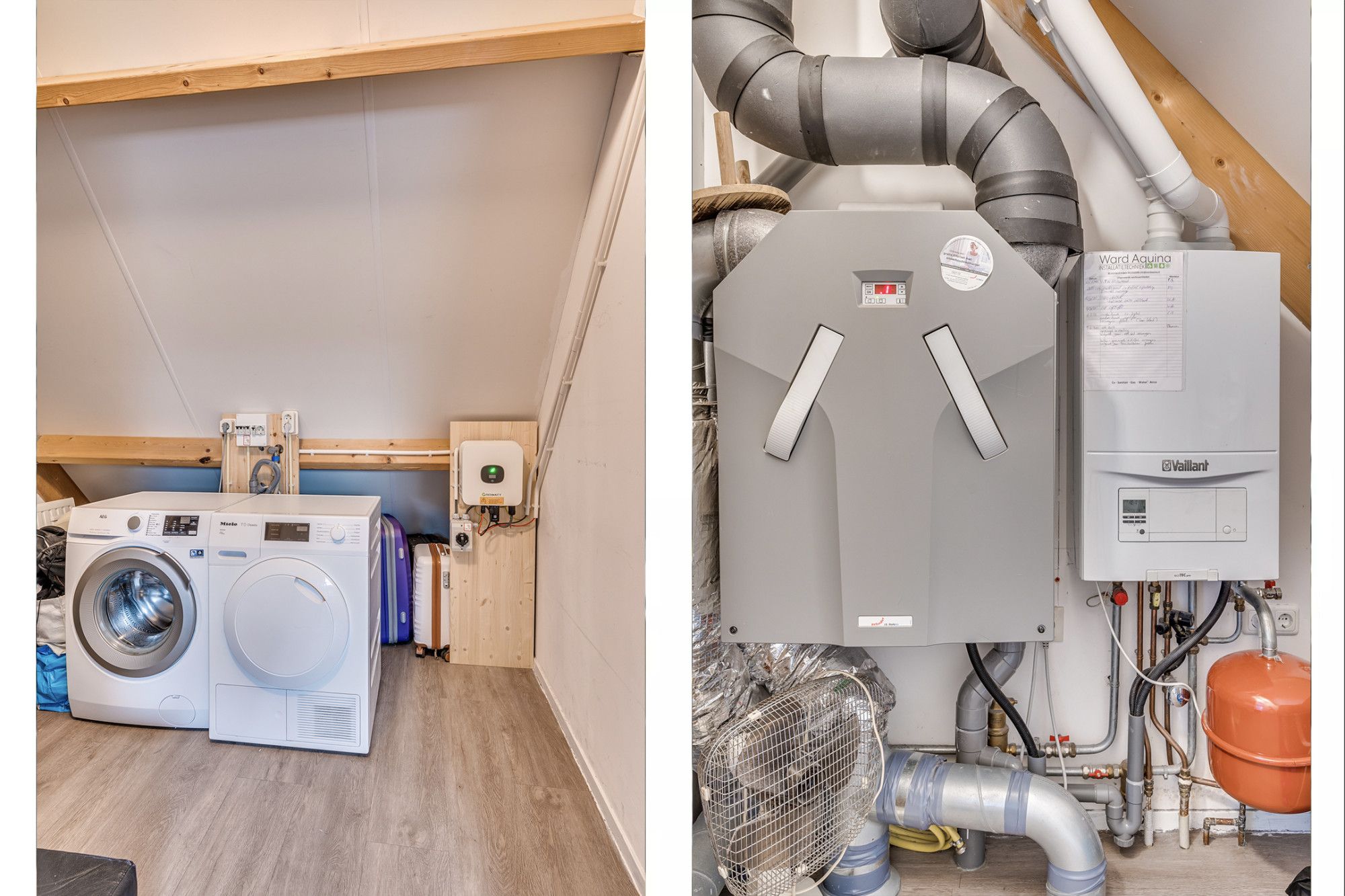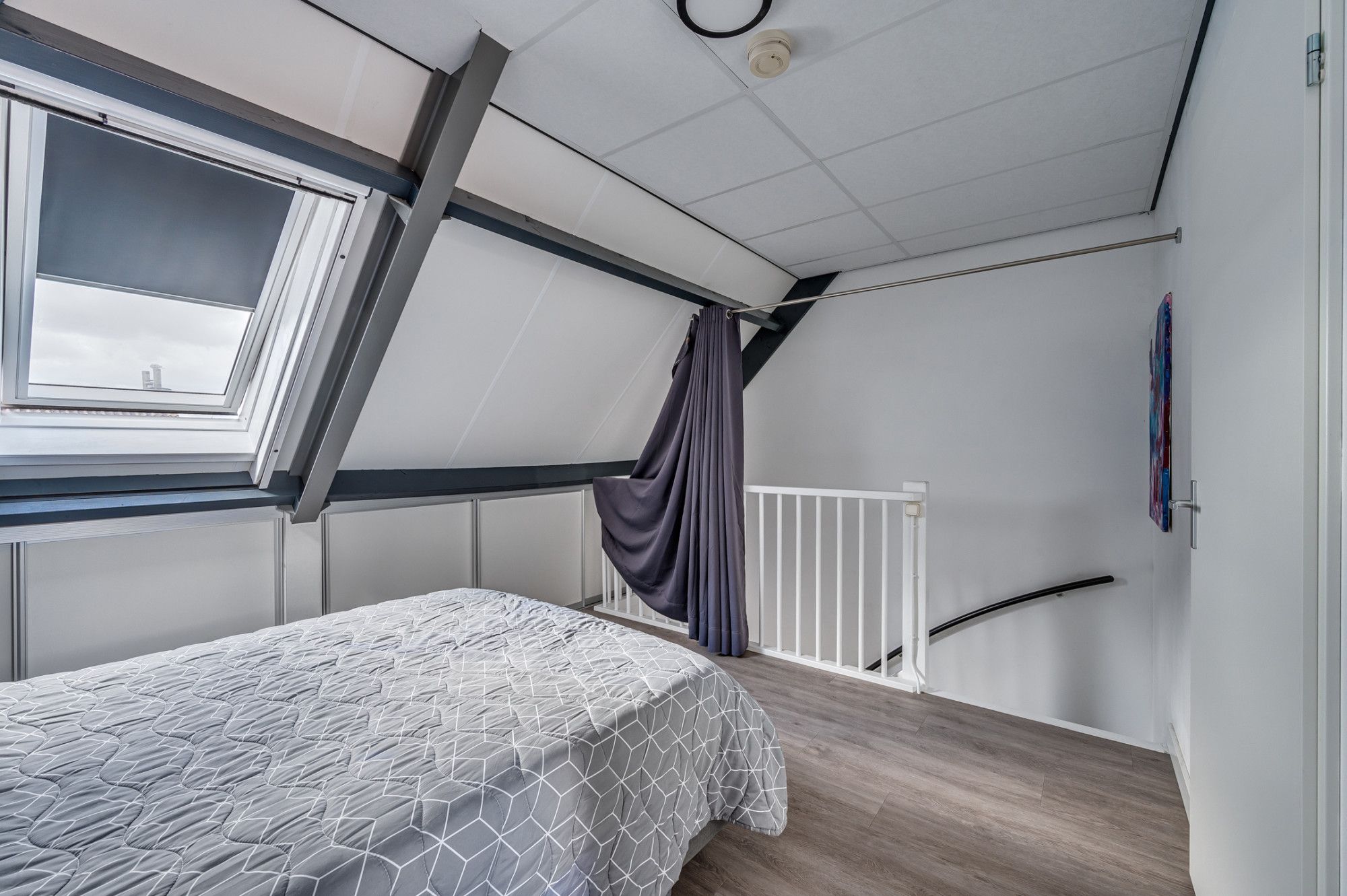 Middels een vaste trap is de 3e verdieping te betreden welke is voorzien van een pvc vloer. Hier is de 3e slaapkamer gepositioneerd welke voorzien is van veel lichtinval door de 2 Velux dakramen. Verder is er bergruimte achter de knieschotten. De wasruimte is in het bezit van de witgoedaansluitingen, Cv-installatie (2013 Vaillant) en omvormer van de 6 zonnepanelen (2022 eigendom).