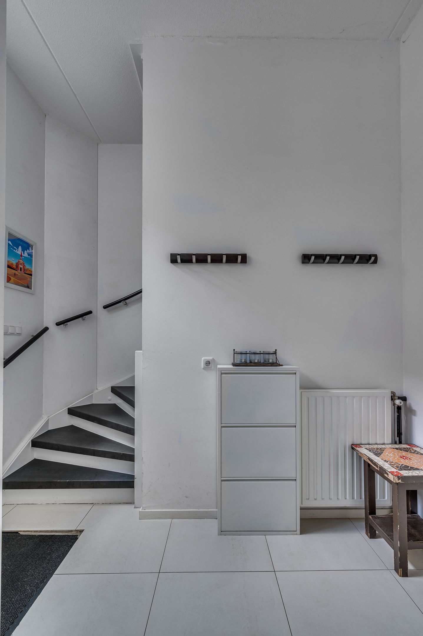 De entree/ hal geeft toegang tot de meterkast, trapopgang naar de 1e verdieping en een kantoorruimte, atelier of eventuele slaapkamer op de begane grond. Tevens is hier een inpandige berging en toegang tot de tuin.
