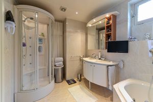 De aparte SieMatic-keuken beschikt over een kookeiland en granieten aanrechtbladen en in inbouwapparatuur zoals: 5-pits inductiekookplaat (2020), een afzuigkap (2021), een vaatwasser (2020), koel/vries combinatie, een hetelucht oven en magnetron (2019). Vanuit de hal is er toegang tot vier slaapkamers met bijbehorende drie badkamers. De hoofdslaapkamer is voorzien van airco met koel- en verwarm-functie en inbouwspots. Aangrenzend bevindt zich een ruime badkamer en-suite, ingericht met stoomdouche, Whirlpool, zwevend toilet en een dubbele wastafel met meubel. Daarnaast zijn er tv, inbouwspots, mechanische ventilatie en een designradiator aanwezig. De tweede en derde slaapkamer zijn voorzien van een vaste muurkast en delen samen de tweede badkamer welke beschikt over een douche, wastafel en mechanische afzuiging. De vierde slaapkamer is eveneens voorzien van muurkast en biedt toegang tot een derde badkamer welke beschikt over een ligbad/douche combinatie, wastafel, mechanische ventilatie en een vaste muurkast.