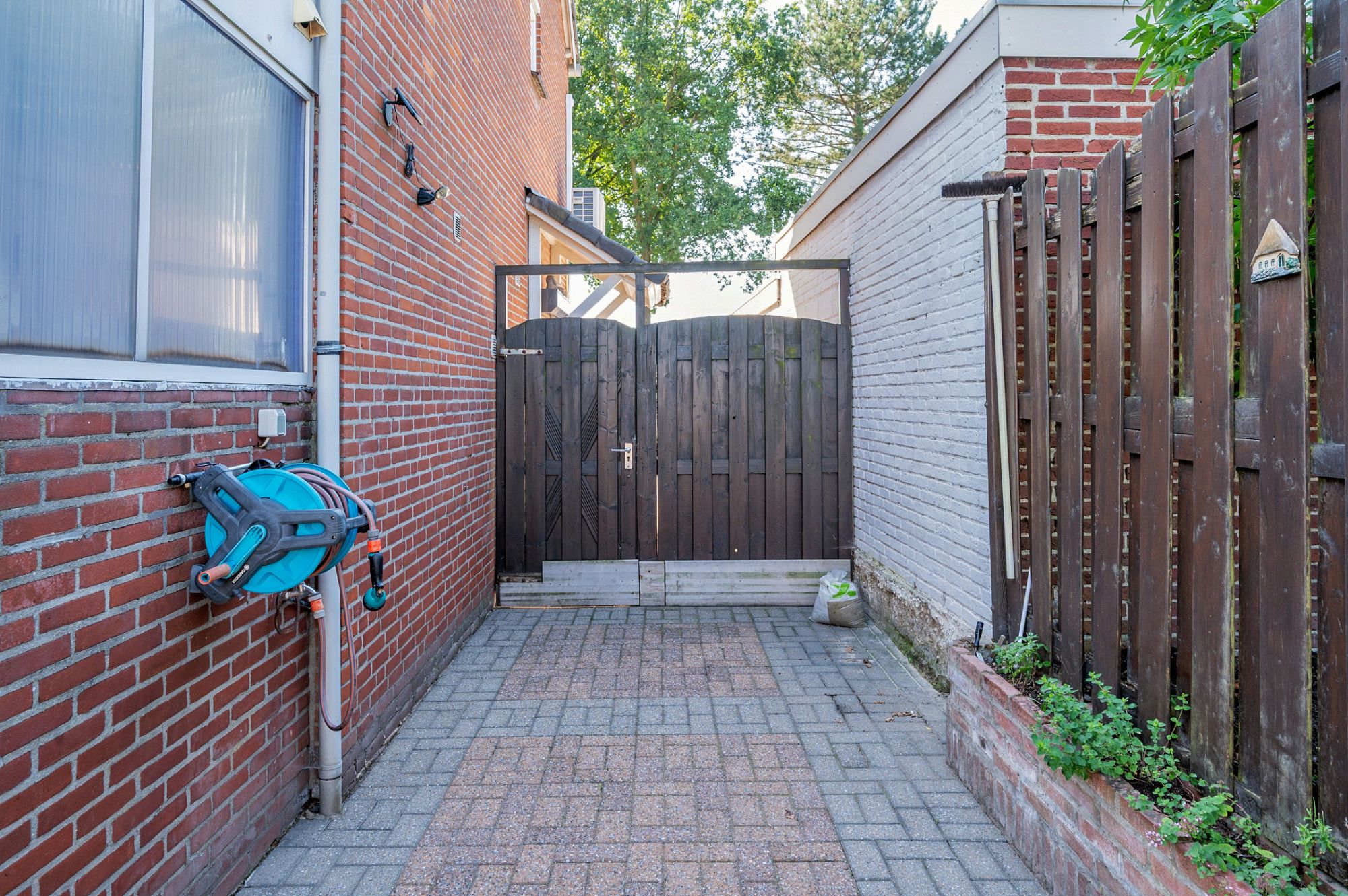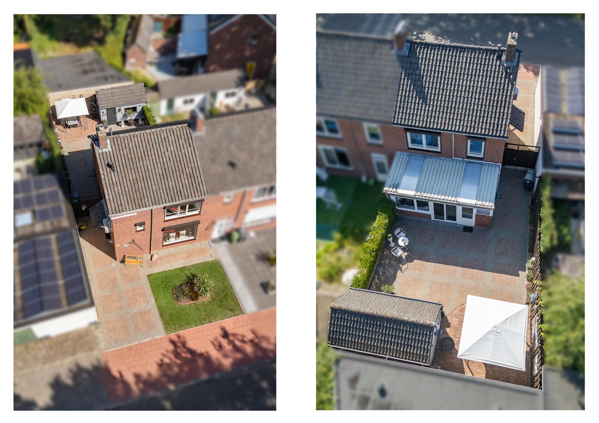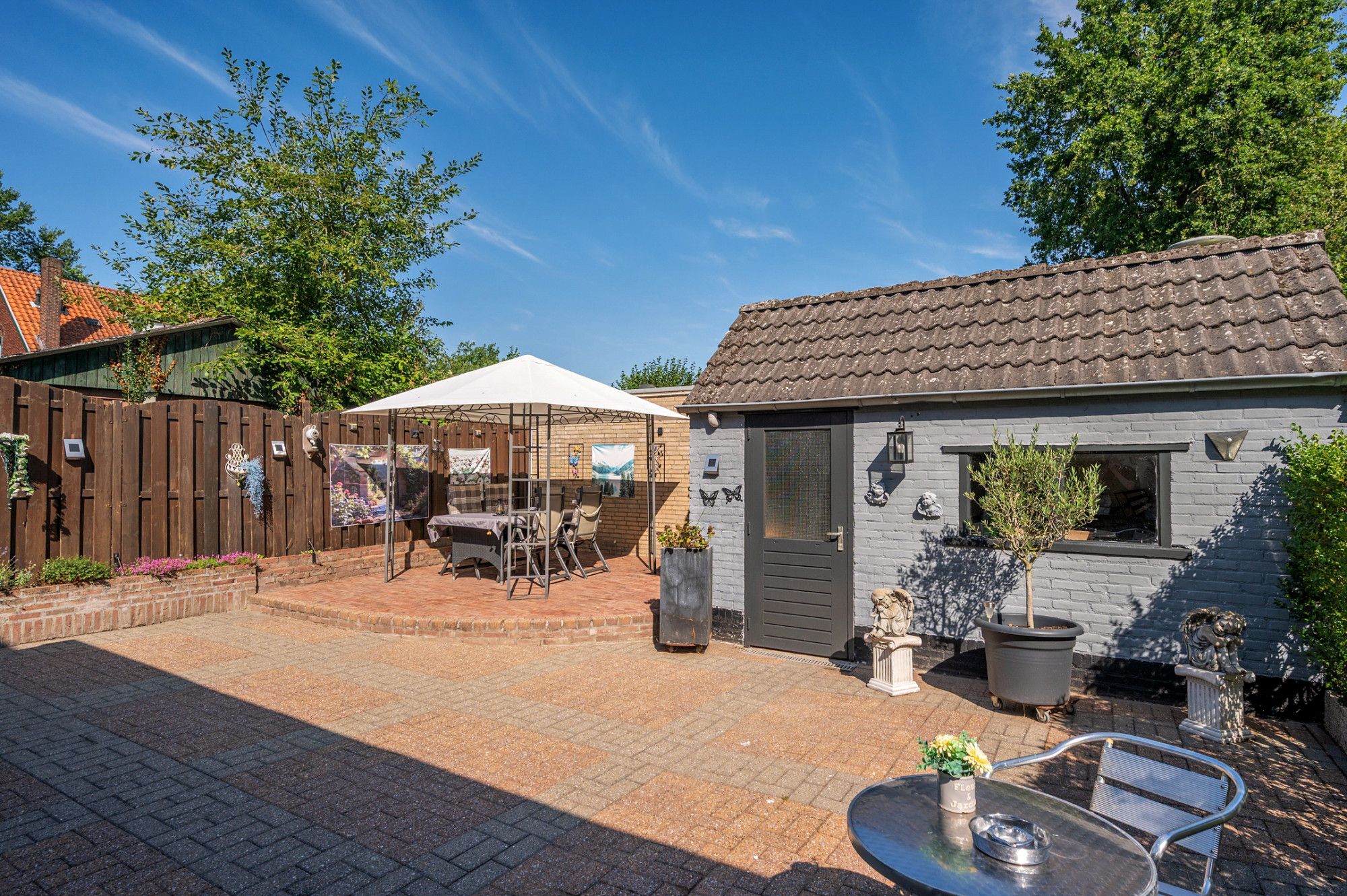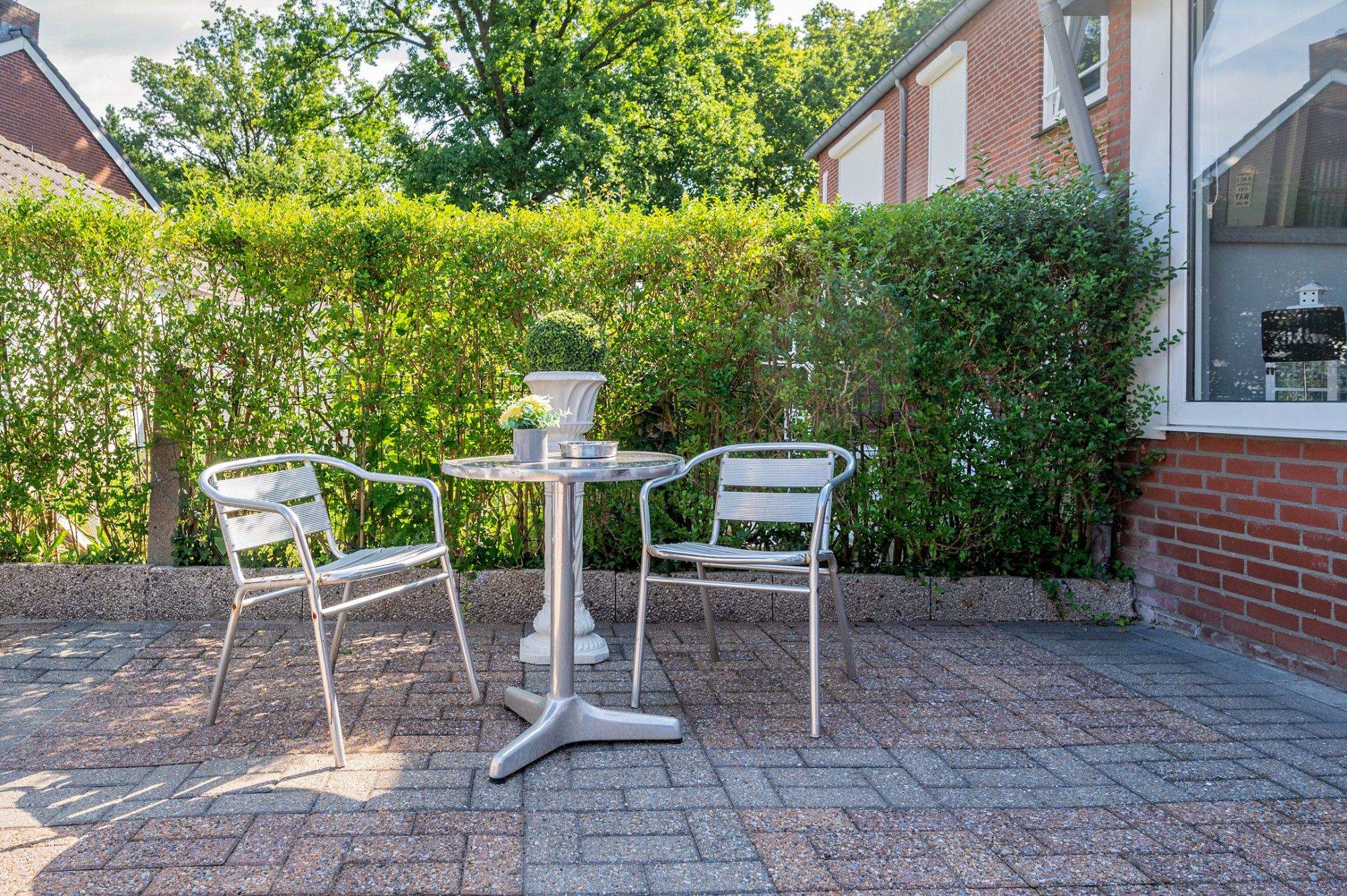 Aan de zijkant van de woning ligt een ruime oprit met laats voor meerdere voertuigen. Via de oprit komt men in de achtertuin. De tuin is gelegen op het noordwesten. De gehele tuin is beklinkerd en is onderhoudsvriendelijk. Een stenen berging zorgt voor veel bergruimte. De tuin ligt in een prachtige groene omgeving en biedt veel privacy.