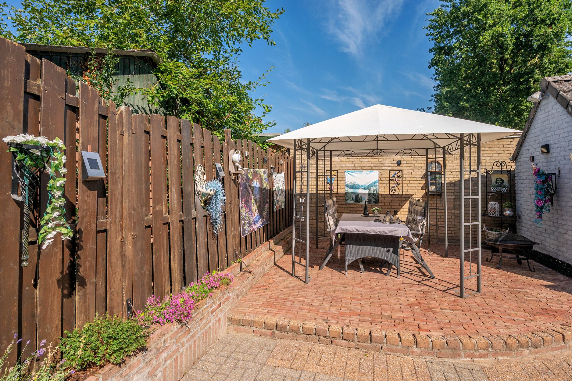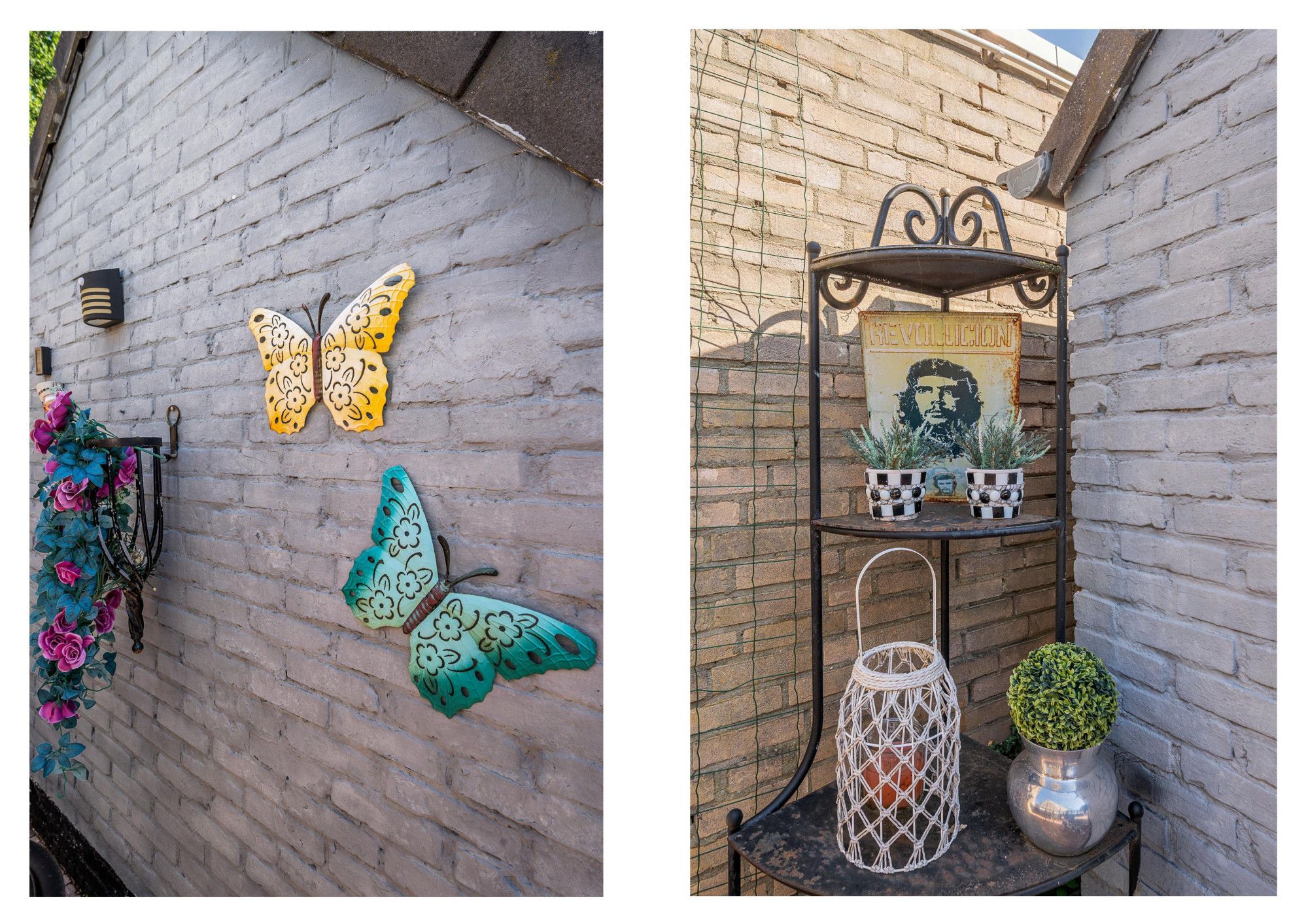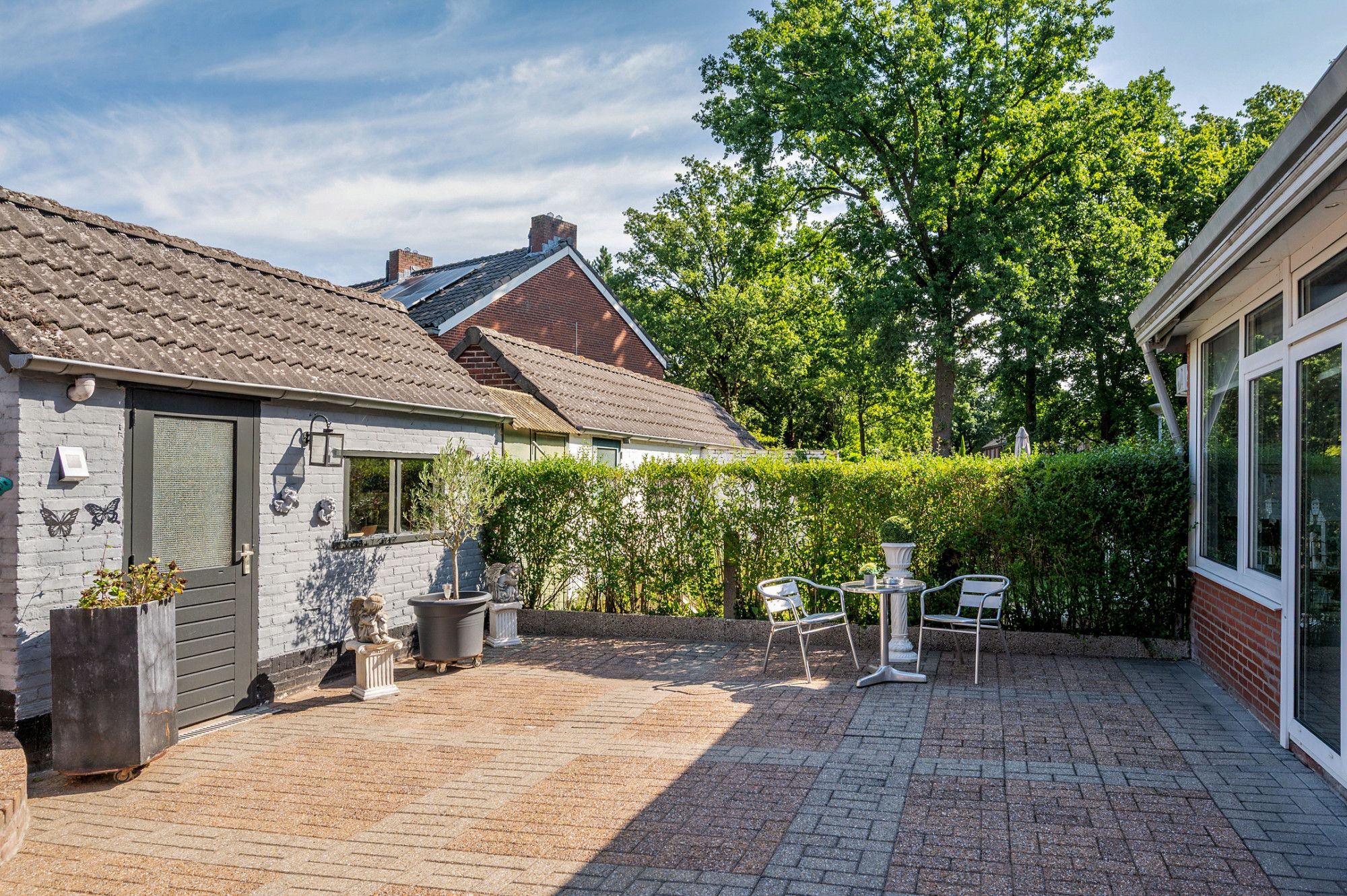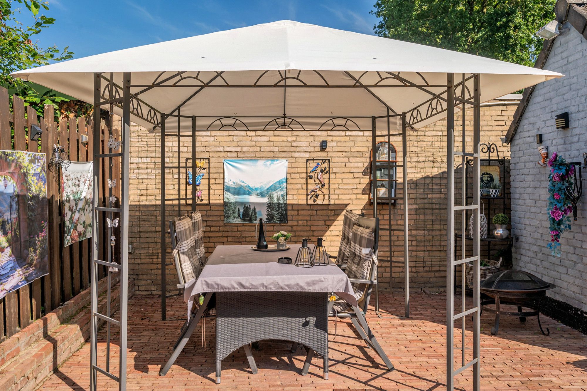 Aan de zijkant van de woning ligt een ruime oprit met laats voor meerdere voertuigen. Via de oprit komt men in de achtertuin. De tuin is gelegen op het noordwesten. De gehele tuin is beklinkerd en is onderhoudsvriendelijk. Een stenen berging zorgt voor veel bergruimte. De tuin ligt in een prachtige groene omgeving en biedt veel privacy.