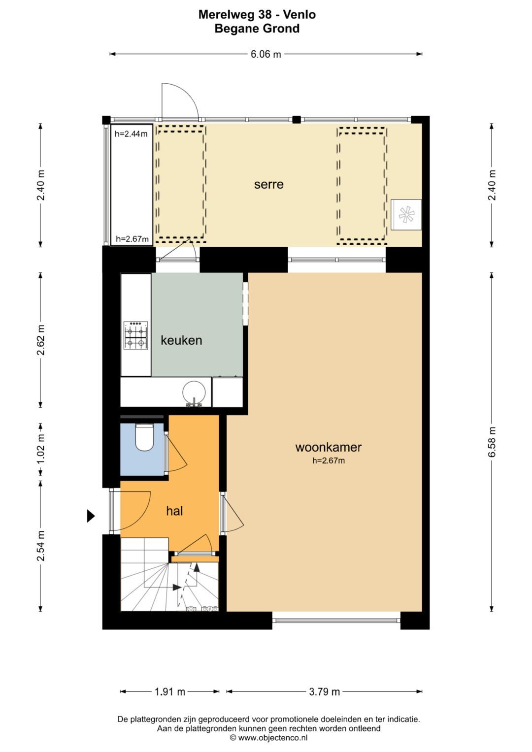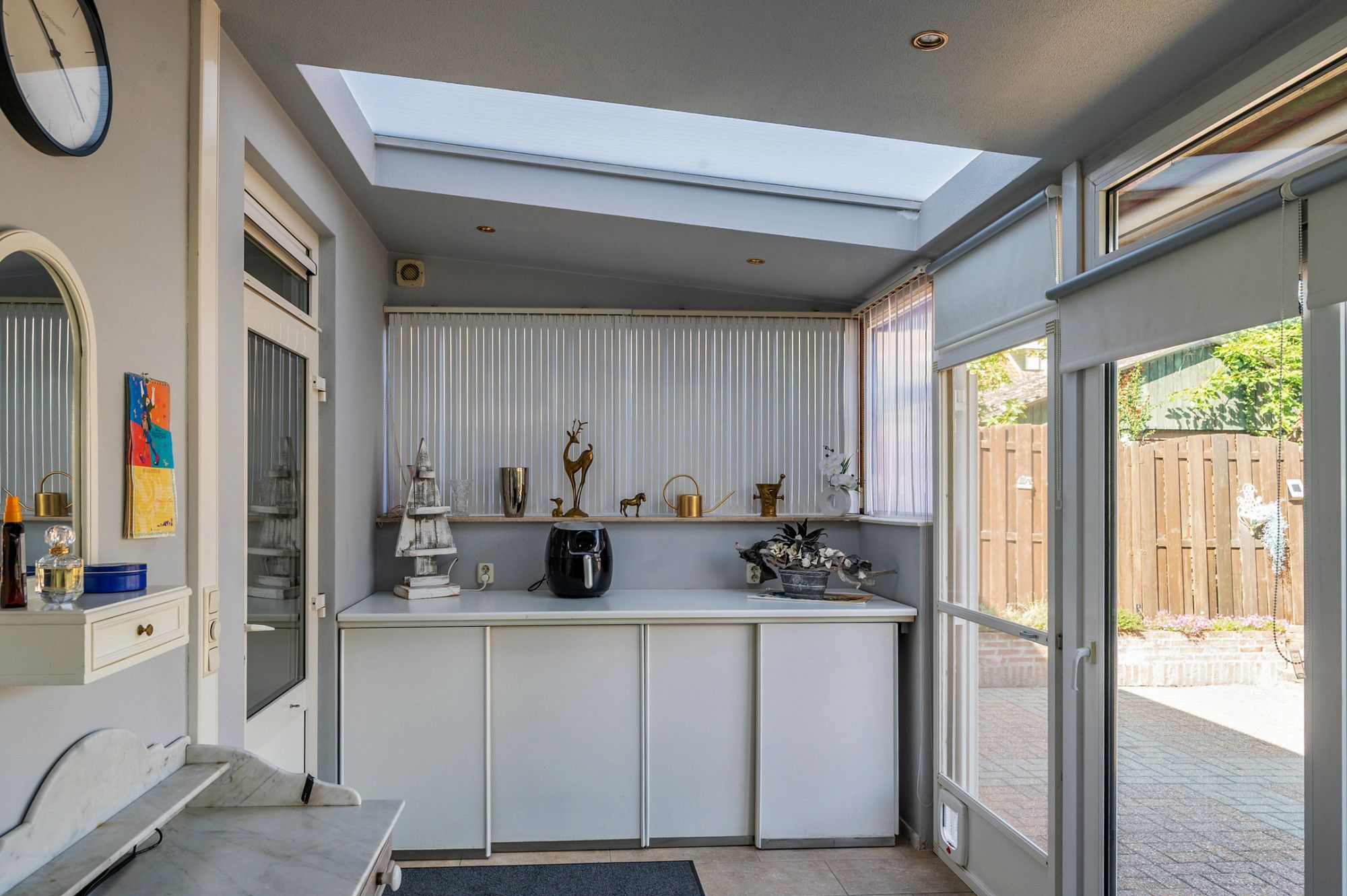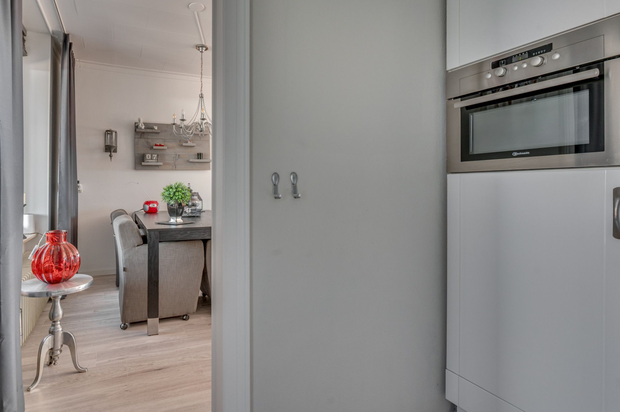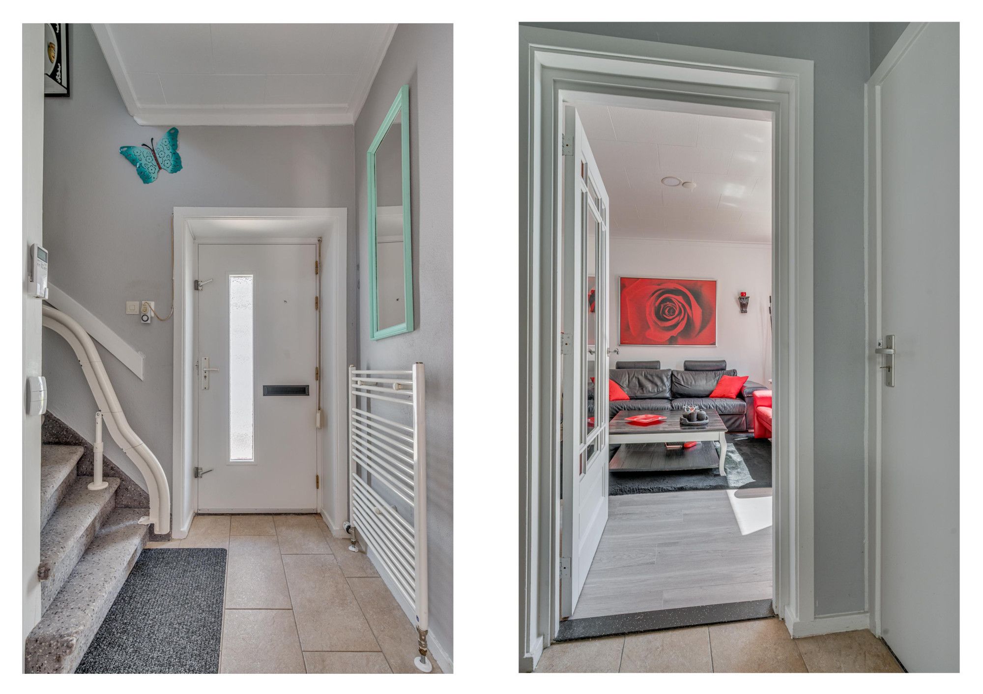 Via de entree komt met in de hal terecht. De hal geeft toegang tot de separate toiletruime, trapopgang naar de verdieping, trapgang naar de kelder en loopdeur naar de woonkamer. De geheel betegelde toiletruimte is voorzien van een zwevend toilet, fonteintje, verwarming en natuurlijke ventilatie. De doorzonwoonkamer is ruim van opzet en geniet veel lichtinval door de grote raampartijen. Aan de achterzijde van de woonkamer is er toegang tot de keuken. De keuken is ingericht met een 4-pits gasfornuis, koelkast, combioven/ magnetron, vaatwasmachine en spoelbak. Middels een loopdeur is er toegang tot de ruime serre. De serre is voorzien van een tegelvloer met verwarming en twee lichtstraten. Een loopdeur biedt toegang tot de onderhoudsarme tuin.