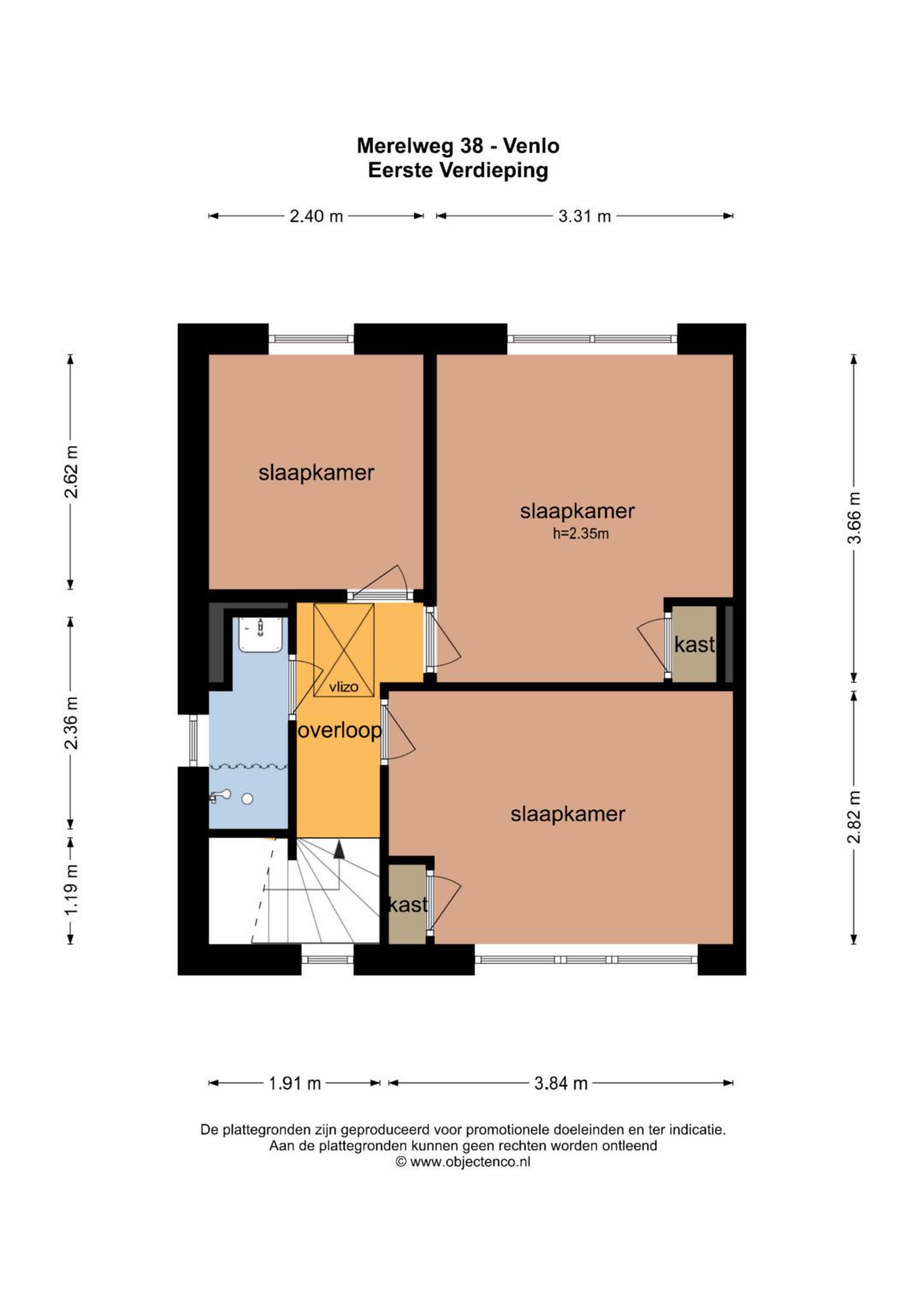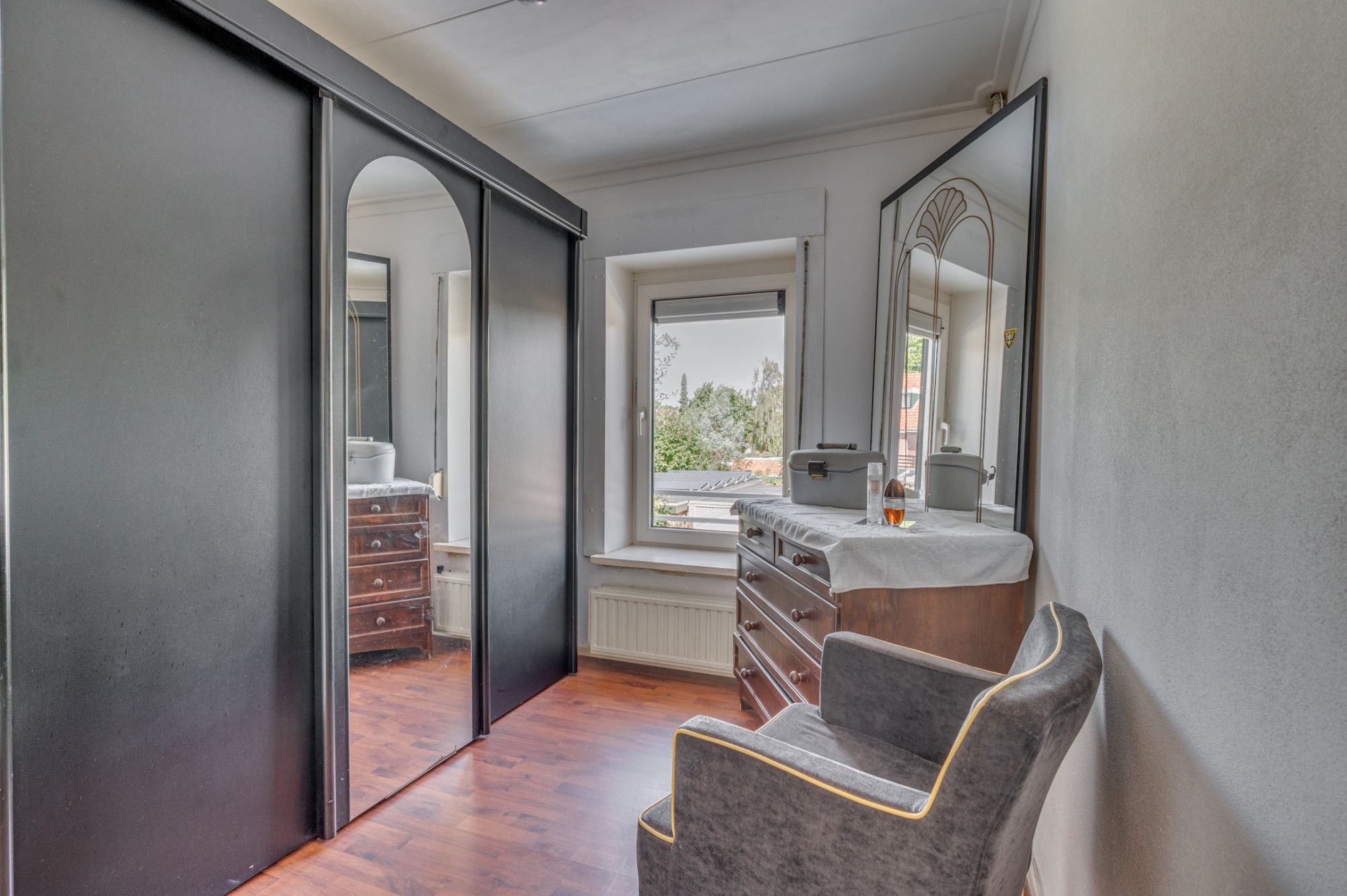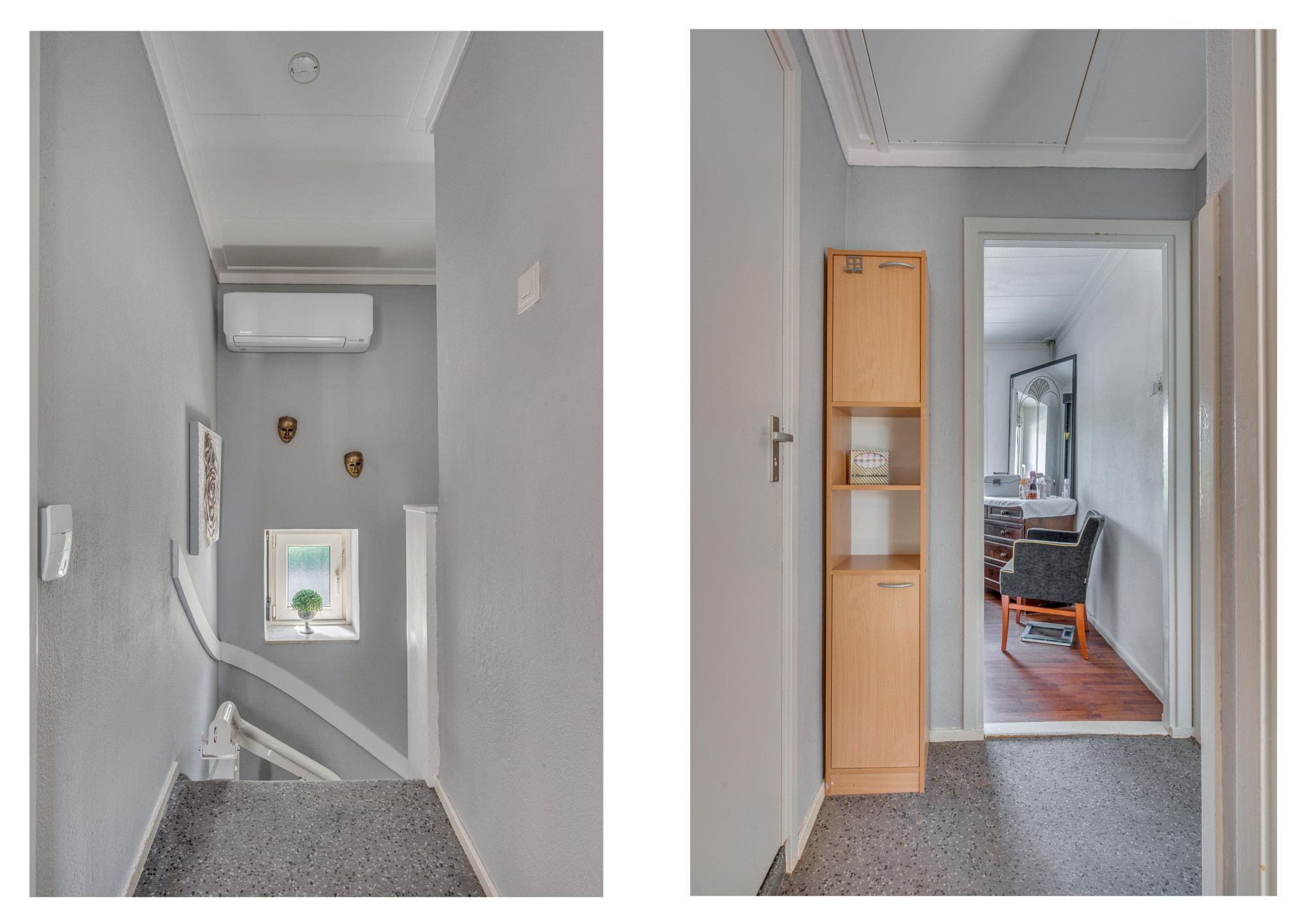 De ruime overloop geeft toegang tot 3 ruime slaapkamers, badkamer en vlizotrap naar de 2e verdieping. De slaapkamers zijn ca. 6,5m², 11m² en 12m² groot. De 2 slaapkamers van 11 en 12m² groot zijn alle voorzien van een muurkast. De badkamer is geheel betegeld en voorzien van een inloopdouche, wastafel en mechanische ventilatie. De overloop beschikt verder over een airco.