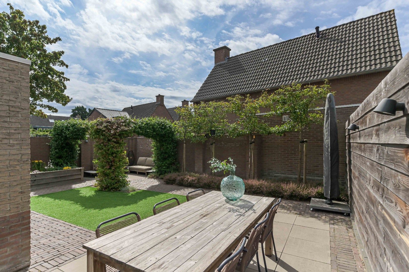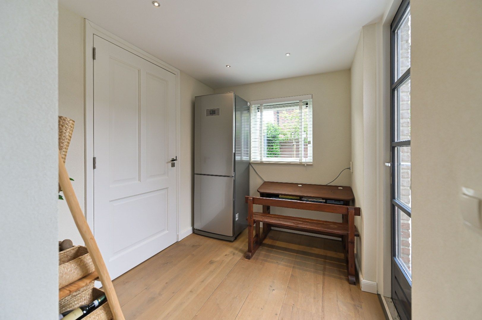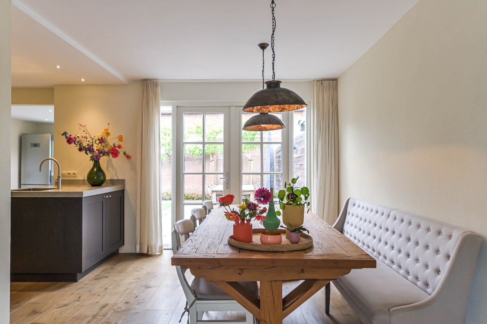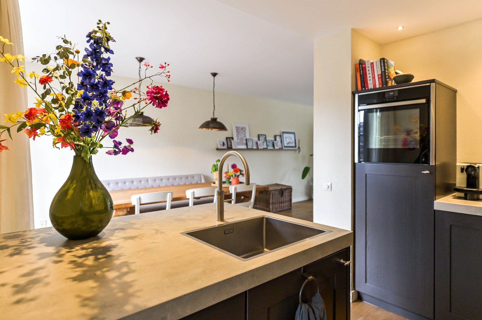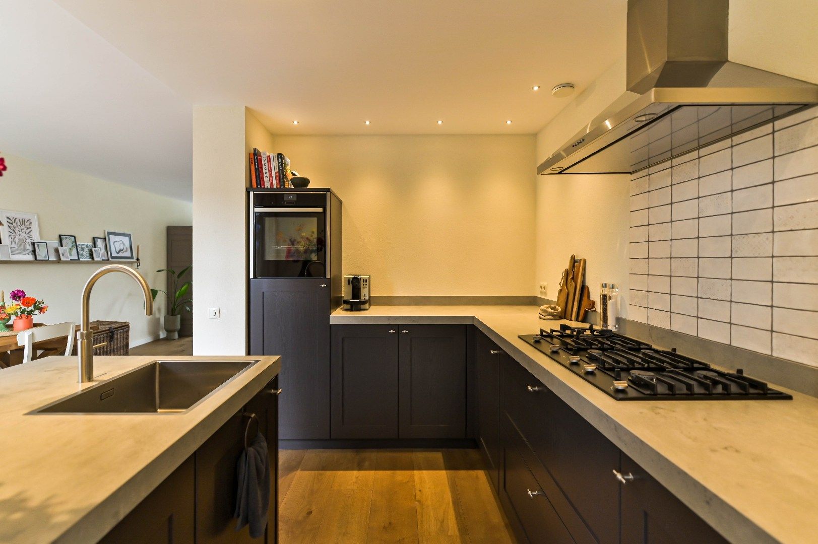 De luxe leefkeuken met schiereiland is een echte blikvanger. Met een keramiek werkblad en hoogwaardige apparatuur, zoals een Quooker, combi-/stoomoven, 5-pits gaskookplaat met wokbrander, koelkast en vaatwasser. Grenzend aan de keuken ligt een praktische bijkeuken (ca. 5m2) en de inpandig bereikbare garage (ca. 17m2) met kantelpoort. De gehele begane grond (m.u.v. de garage) is voorzien van comfortabele vloerverwarming en gestucte plafonds en wanden. De zonnige, onderhoudsvriendelijke achtertuin op het zuiden is fraai aangelegd en biedt dankzij de hoekligging veel privacy. De vrije achterom maakt de tuin praktisch en gemakkelijk bereikbaar. Aan de voorzijde ligt een royale oprit op eigen terrein.