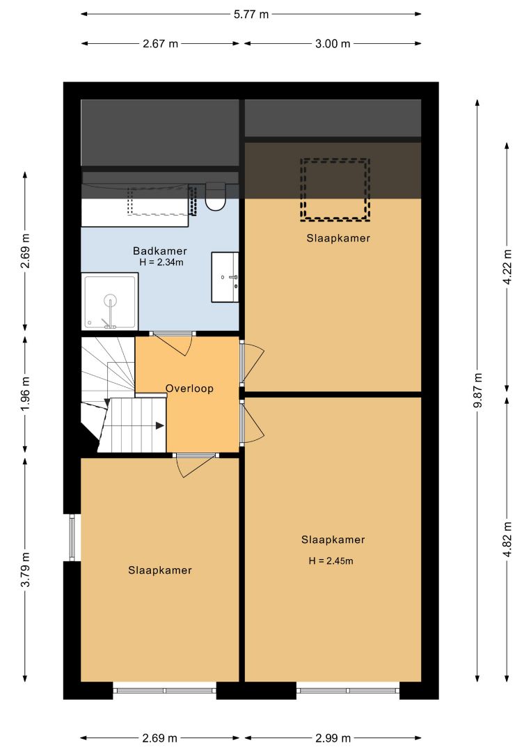 Eerste verdieping: Op de eerste verdieping bevinden zich drie ruime slaapkamers (ca. 10 m2, 11 m2 en 14,5 m2) , waarvan één is voorzien van een Velux dakraam. In alle kamers loopt de laminaatvloer naadloos door. De gestucte wanden en plafonds zorgen voor een frisse uitstraling. De luxe badkamer met Velux dakraam is uitgerust met een half vrijstaand ligbad en een ruime inloop-/stortdouche. De extra grote wastafel met meubel biedt volop opbergruimte. Met een tweede toilet, spiegel met verwarming en verlichting, een designradiator én vloerverwarming is aan alles gedacht voor comfort en gemak.