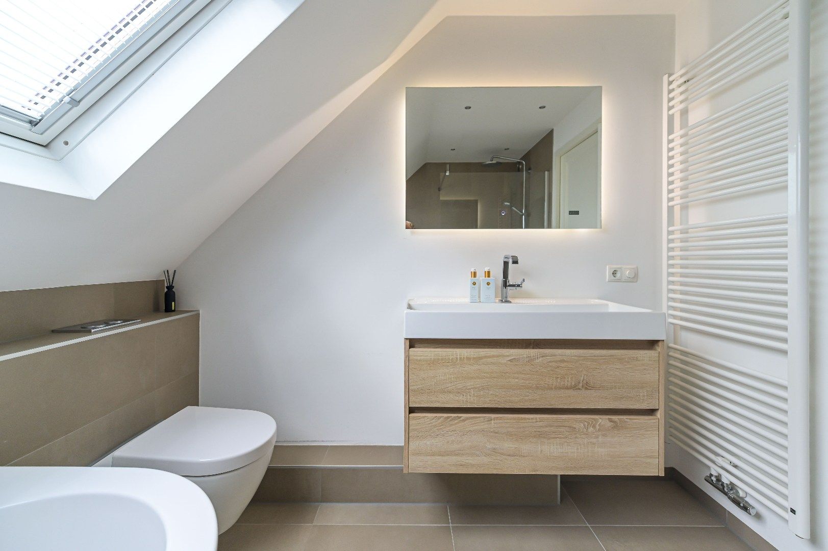Tweede verdieping: Via een vaste trap is de zolderverdieping bereikbaar, voorzien van een groot Velux-dakraam dat veel daglicht binnenlaat. Hier bevinden zich de aansluitingen voor de wasmachine en droger, de cv-installatie (Nefit HR cv-ketel, 2012) en de vernieuwde mechanische ventilatie. Deze ruimte biedt volop mogelijkheden voor een extra slaapkamer, werk- of hobbyruimte.