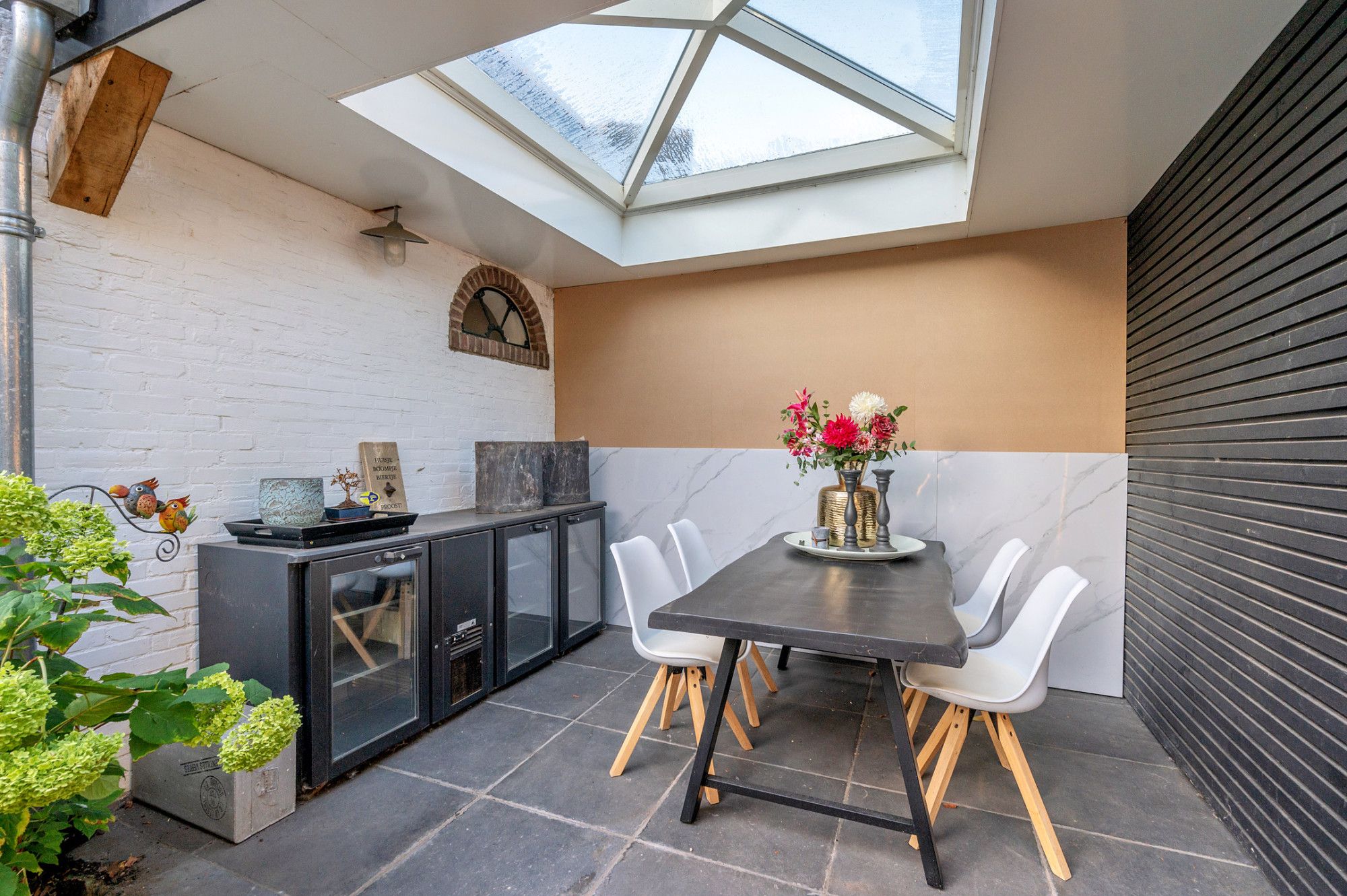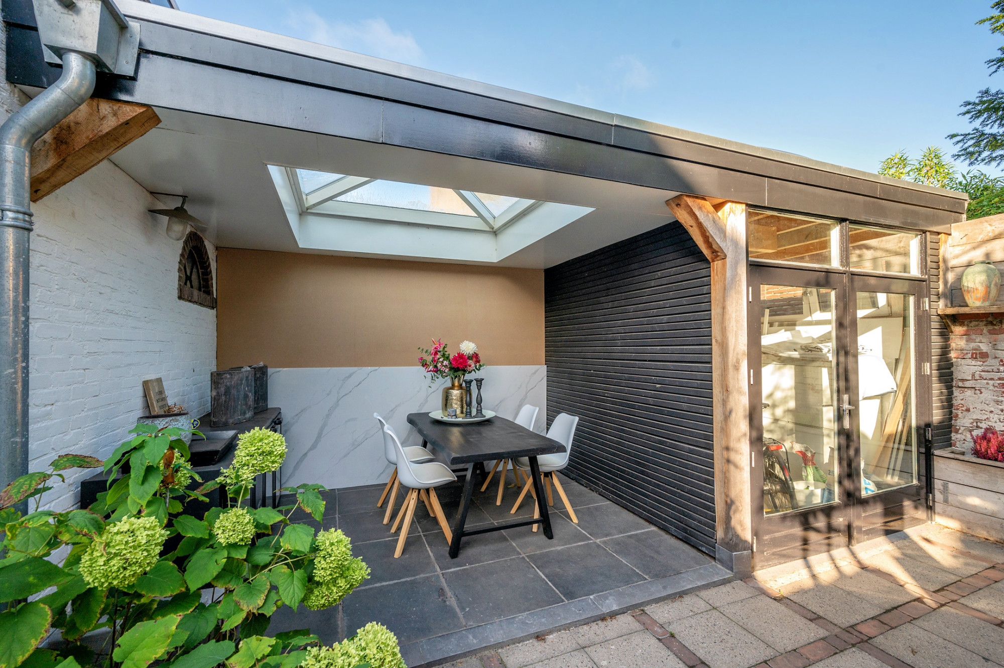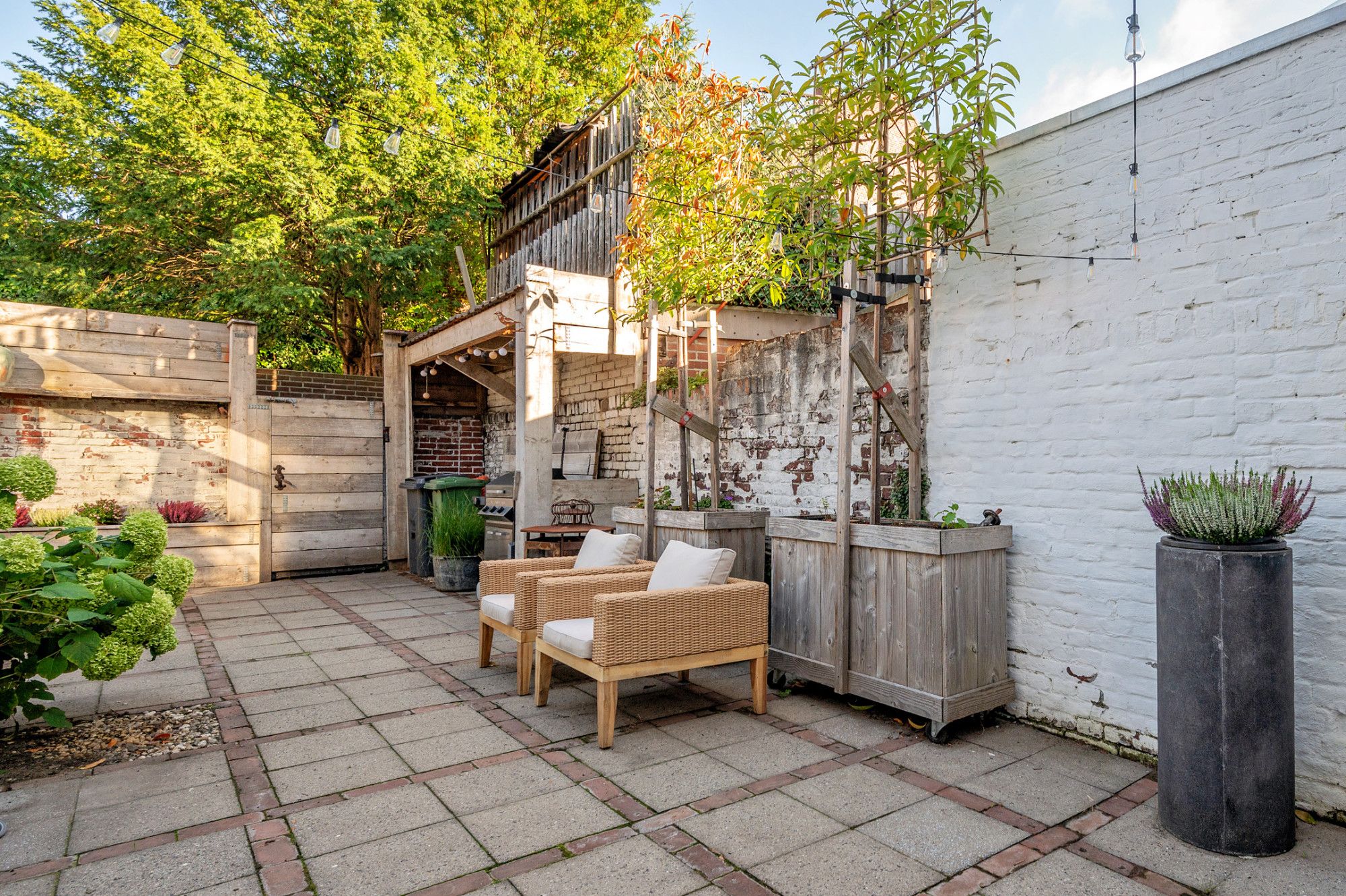 De achtertuin is op het Noordwesten gesitueerd en ontvangt veel zonlicht. De tuin is grotendeels betegeld en beschikt over een vrije achterom. Achter in de tuin is een stenen berging gesitueerd welke voorzien is van elektra-aansluitingen en is er een overkapping met lichtkoepel aanwezig. De tuin biedt verder veel privacy.