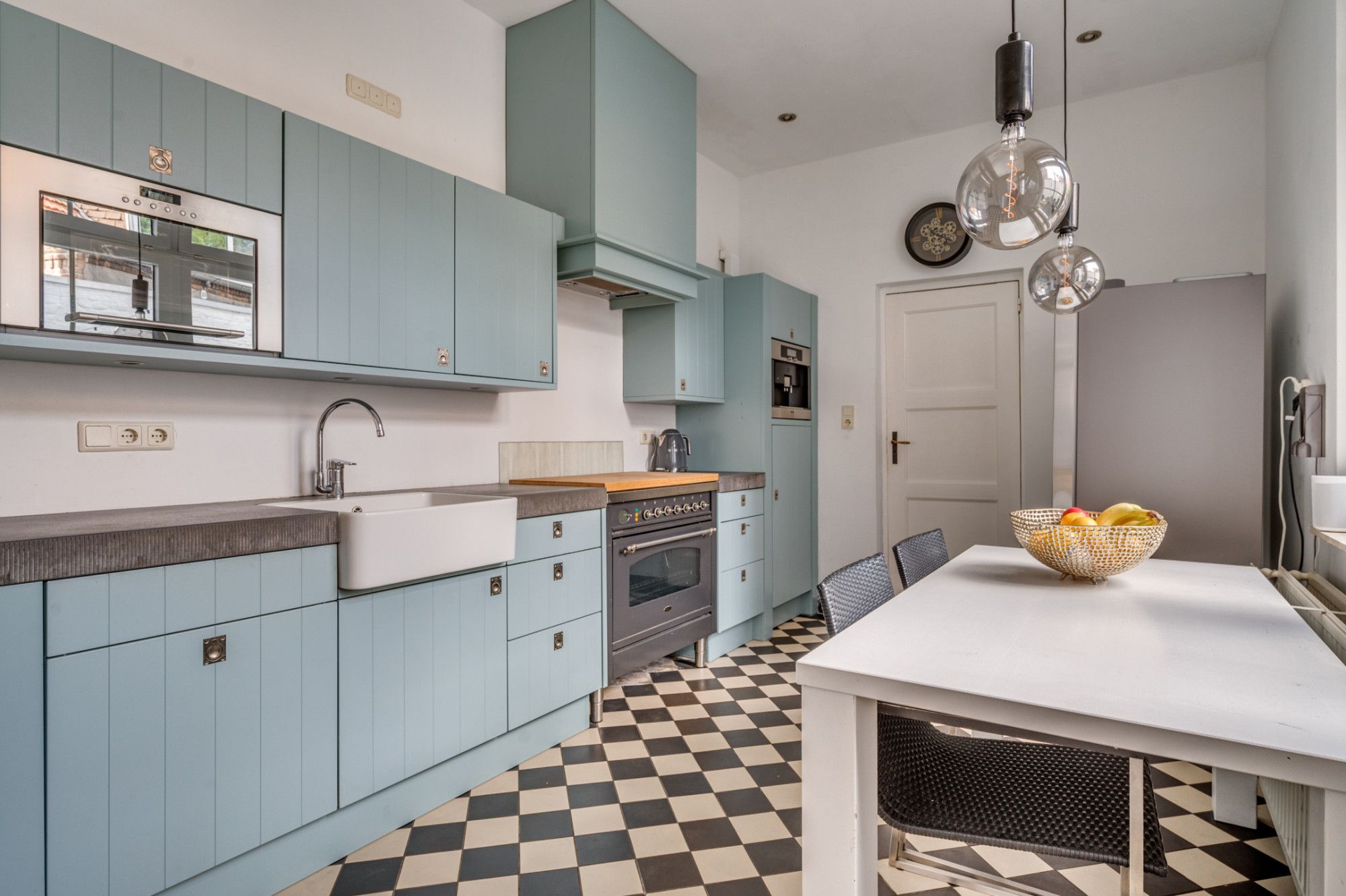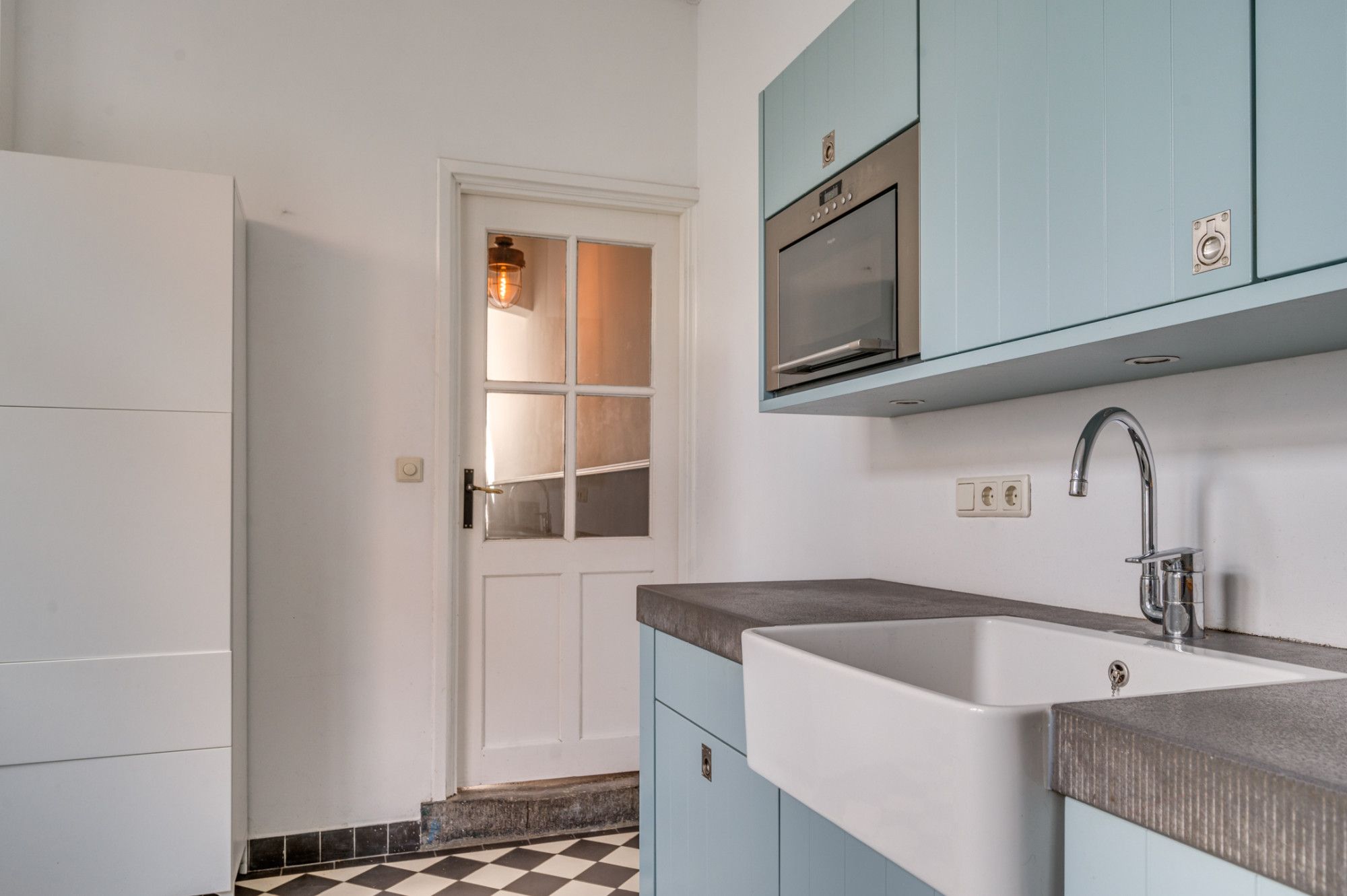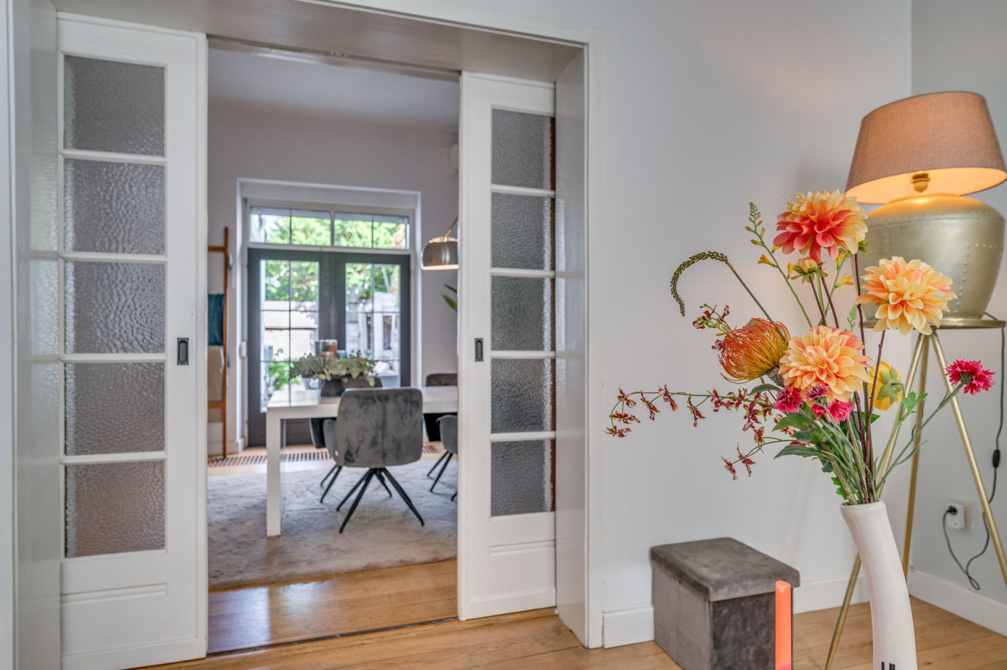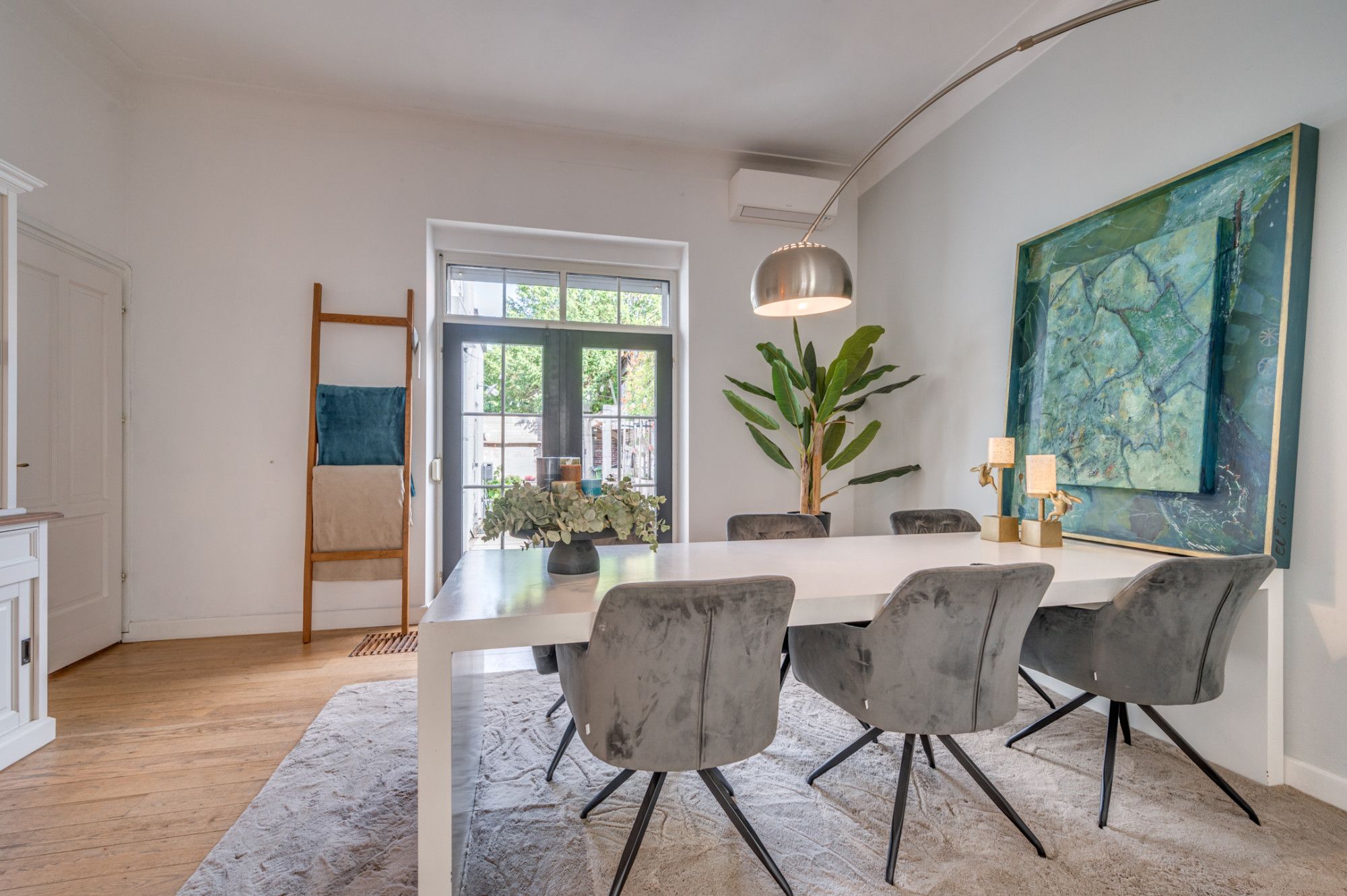 Vanuit het trottoir is de statige entree van de woning te betreden. De entree geeft toegang tot de riante ontvangsthal met authentieke tegelvloer. De ontvangsthal is voorzien van een garderobe en geeft toegang tot de woonkamer, kelder, keuken en imposante trapopgang. De ruime doorzonwoonkamer is liefst ca. 42m² groot en is voorzien van een fraaie houten vloer en schuifdeuren. Aan de voorzijde is de zithoek gerealiseerd met open haard en aan de achterzijde de eetkamer welke tevens toegang geeft middels openslaande tuindeuren naar de tuin en beschikt over een airco. De ruime leefkeuken is voorzien van een 6-pits gasfornuis, afzuigkap, oven, magnetron, koelkast, spoelbak, veel opbergruimte en een loopdeur naar de bijkeuken. In de bijkeuken is er een extra keukenblok met combioven/magnetron, een separate toiletruimte welke is voorzien van een zwevend toilet, fonteintje, buitenraam en verwarming en is de bijkeuken middels een loopdeur de tuin te betreden.