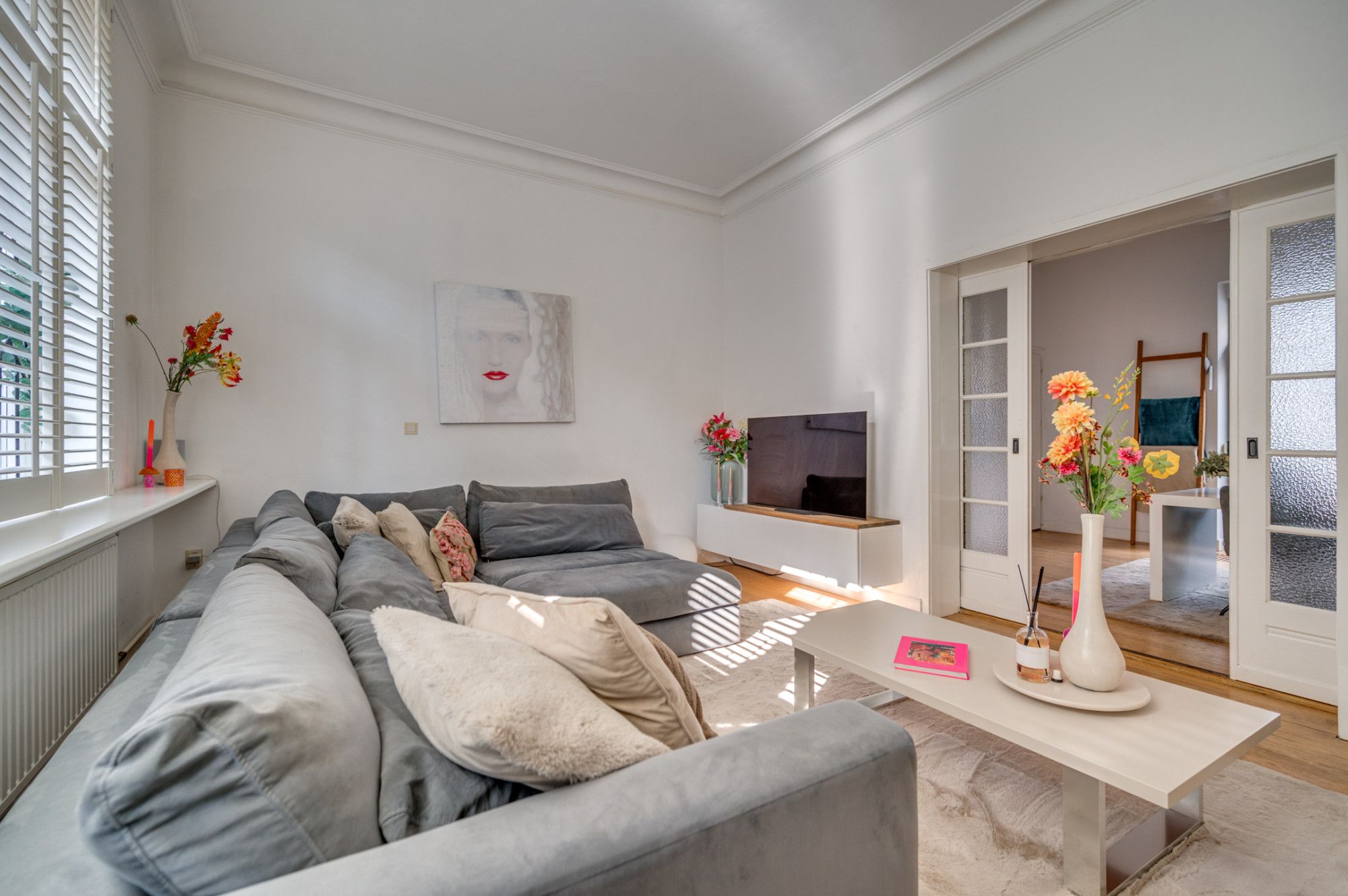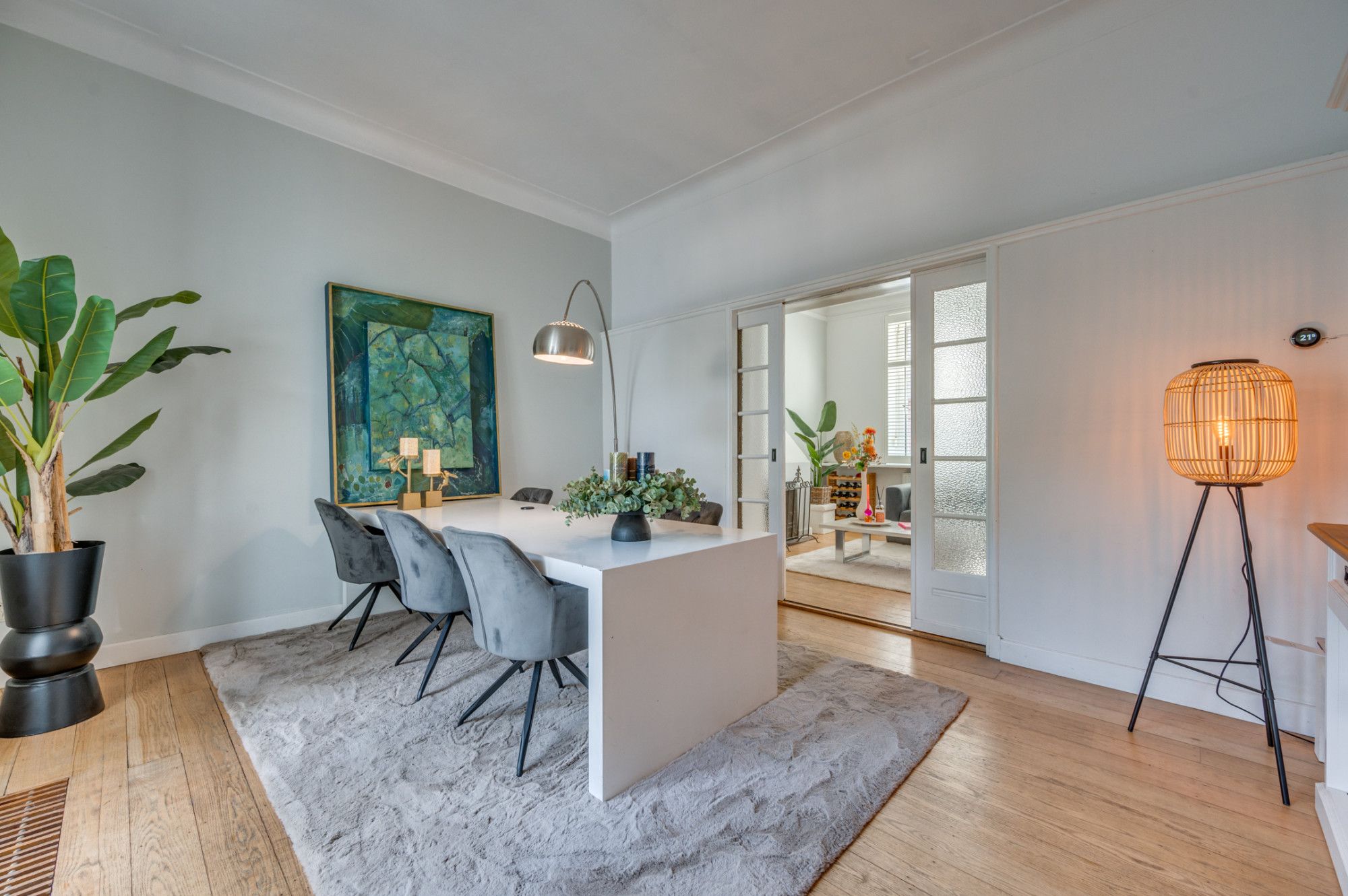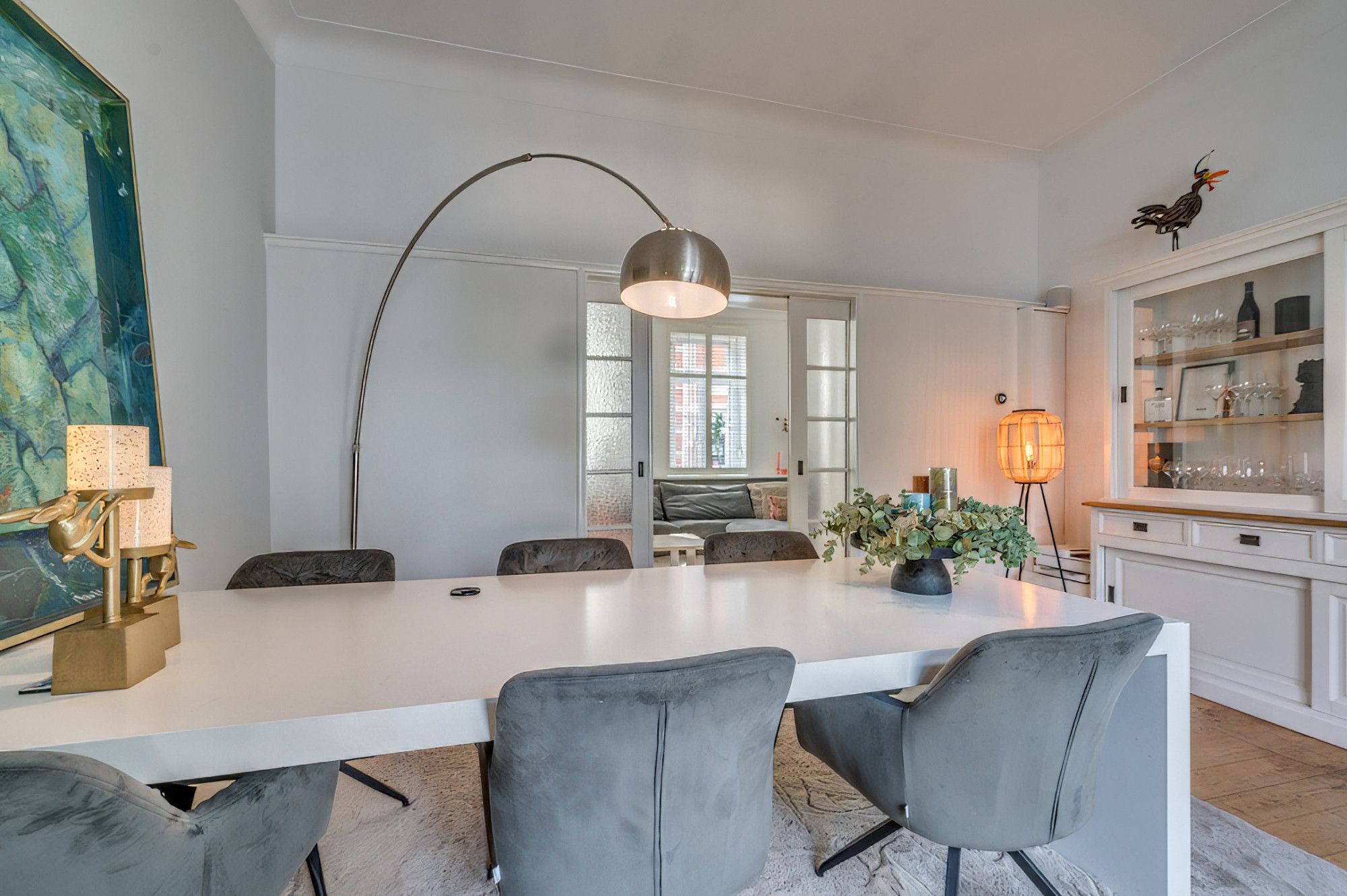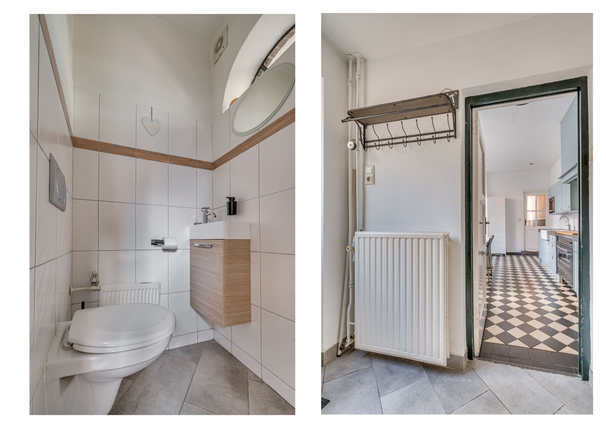 Vanuit het trottoir is de statige entree van de woning te betreden. De entree geeft toegang tot de riante ontvangsthal met authentieke tegelvloer. De ontvangsthal is voorzien van een garderobe en geeft toegang tot de woonkamer, kelder, keuken en imposante trapopgang. De ruime doorzonwoonkamer is liefst ca. 42m² groot en is voorzien van een fraaie houten vloer en schuifdeuren. Aan de voorzijde is de zithoek gerealiseerd met open haard en aan de achterzijde de eetkamer welke tevens toegang geeft middels openslaande tuindeuren naar de tuin en beschikt over een airco. De ruime leefkeuken is voorzien van een 6-pits gasfornuis, afzuigkap, oven, magnetron, koelkast, spoelbak, veel opbergruimte en een loopdeur naar de bijkeuken. In de bijkeuken is er een extra keukenblok met combioven/magnetron, een separate toiletruimte welke is voorzien van een zwevend toilet, fonteintje, buitenraam en verwarming en is de bijkeuken middels een loopdeur de tuin te betreden.