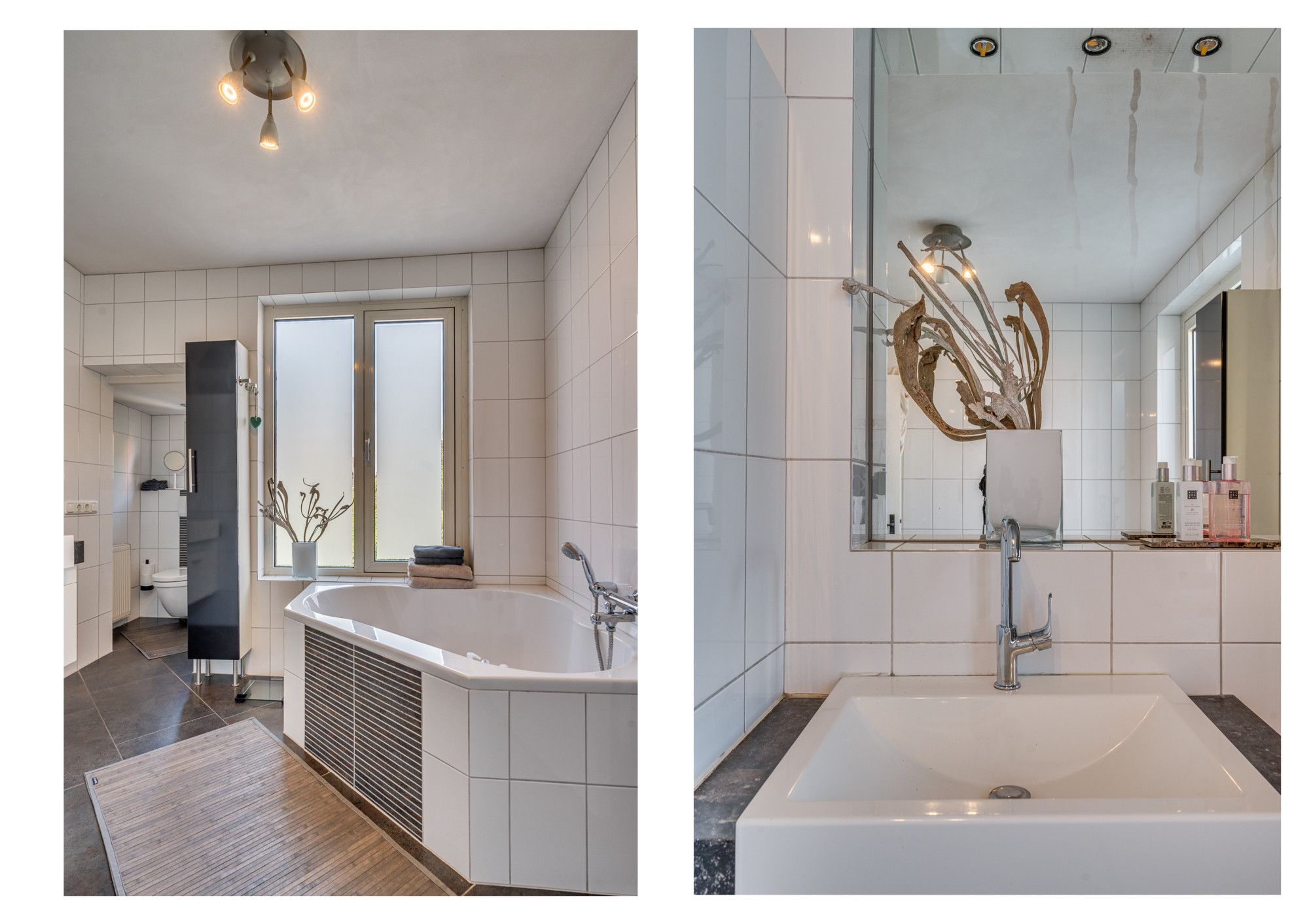 De riante overloop geeft toegang tot 3 slaapkamers, de badkamer en de trapopgang naar de 2e verdieping. De slaapkamers zijn ruim van opzet en allen voorzien van een houten plankenvloer. De riante badkamer is opgesplitst in 2 ruimtes. De voorzijde is voorzien van de witgoedaansluitingen en een wastafel met meubel. De achterzijde is voorzien van een ruim ligbad, inloopdouche, wastafel met meubel en separate toiletruimte. De gehele badkamer is voorzien van een tegelvloer. Tevens beschikt de masterbedroom over een airco.