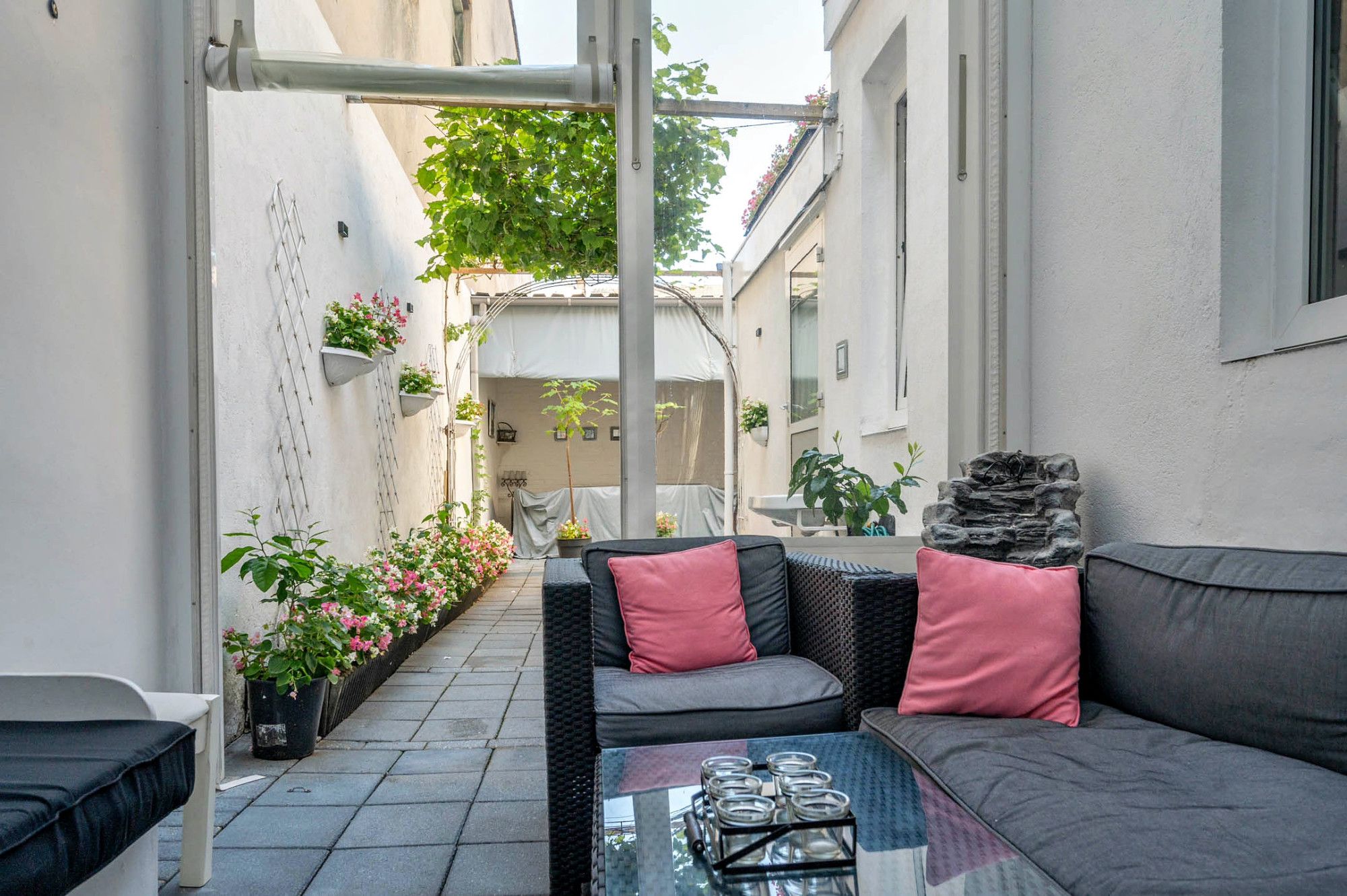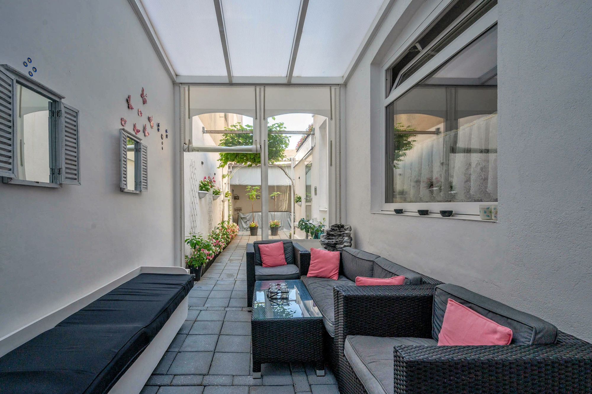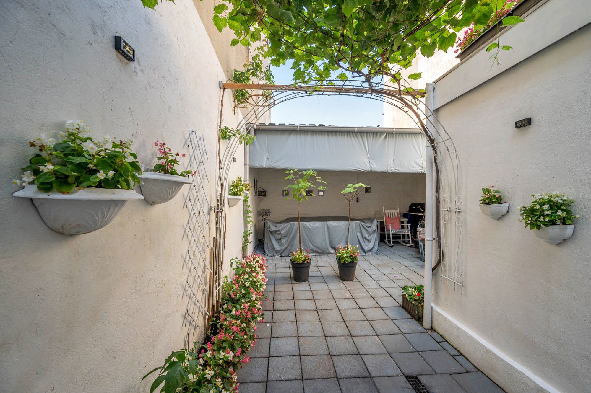 De tuin is onderhoudsvrij, geheel betegeld en voorzien van een overkapping aan de achtergevel en een terras met overkapping in de achtertuin.