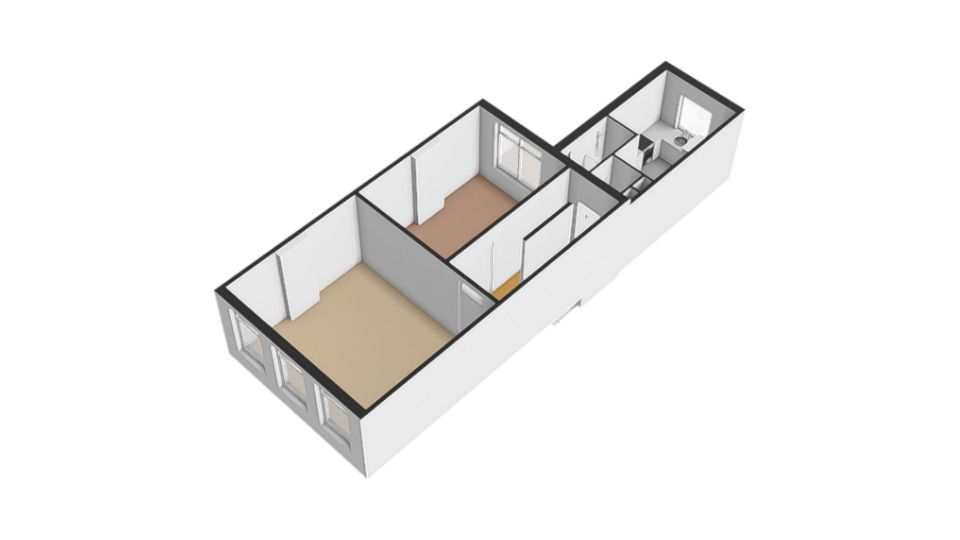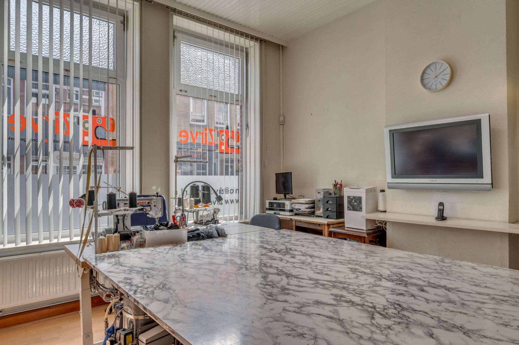 De eerste verdieping is bereikbaar middels het trappenhuis. De overloop geeft toegang tot de masterbedroom, badkamer, keuken en 2e woonkamer. De 2e woonkamer is aan de voorzijde van het pand gelegen en beschikt over een laminaatvloer, airco en veel natuurlijk lichtinval. De royale slaapkamer (17m²) is voorzien van een laminaatvloer. De badkamer is voorzien een douche, toilet en wastafel. Er is via een loopdeur toegang tot de keuken welke voorzien is van inbouwapparatuur.