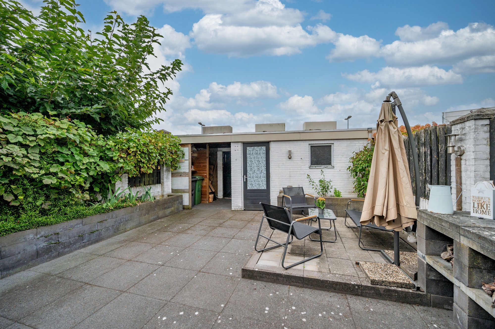 De onderhoudsarme achtertuin is voorzien van een ruim terras en een border met groen. De tuin is middels een vrije achterom te bereiken. Tevens is er een stenen berging aanwezig welke dient als opslag.