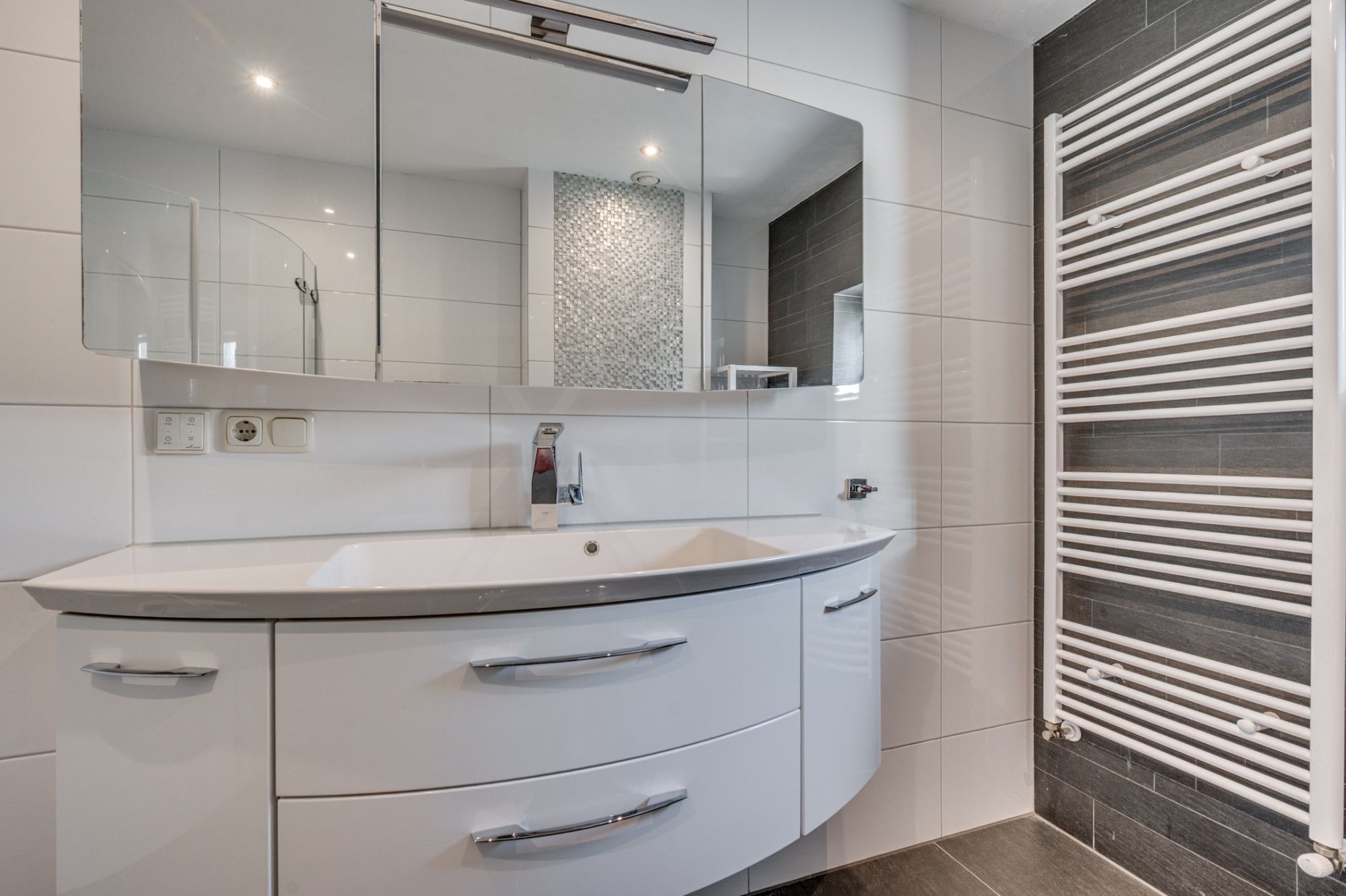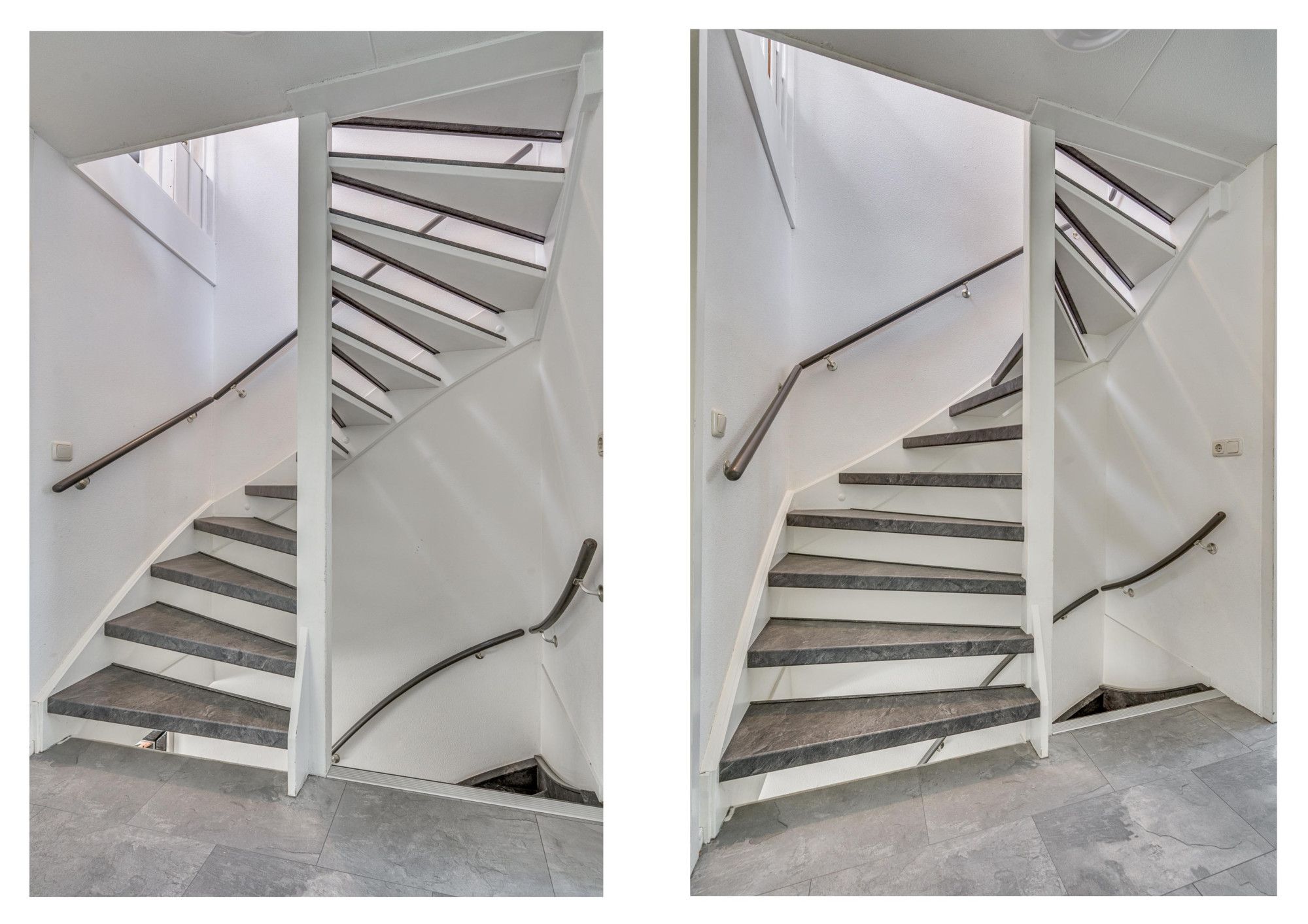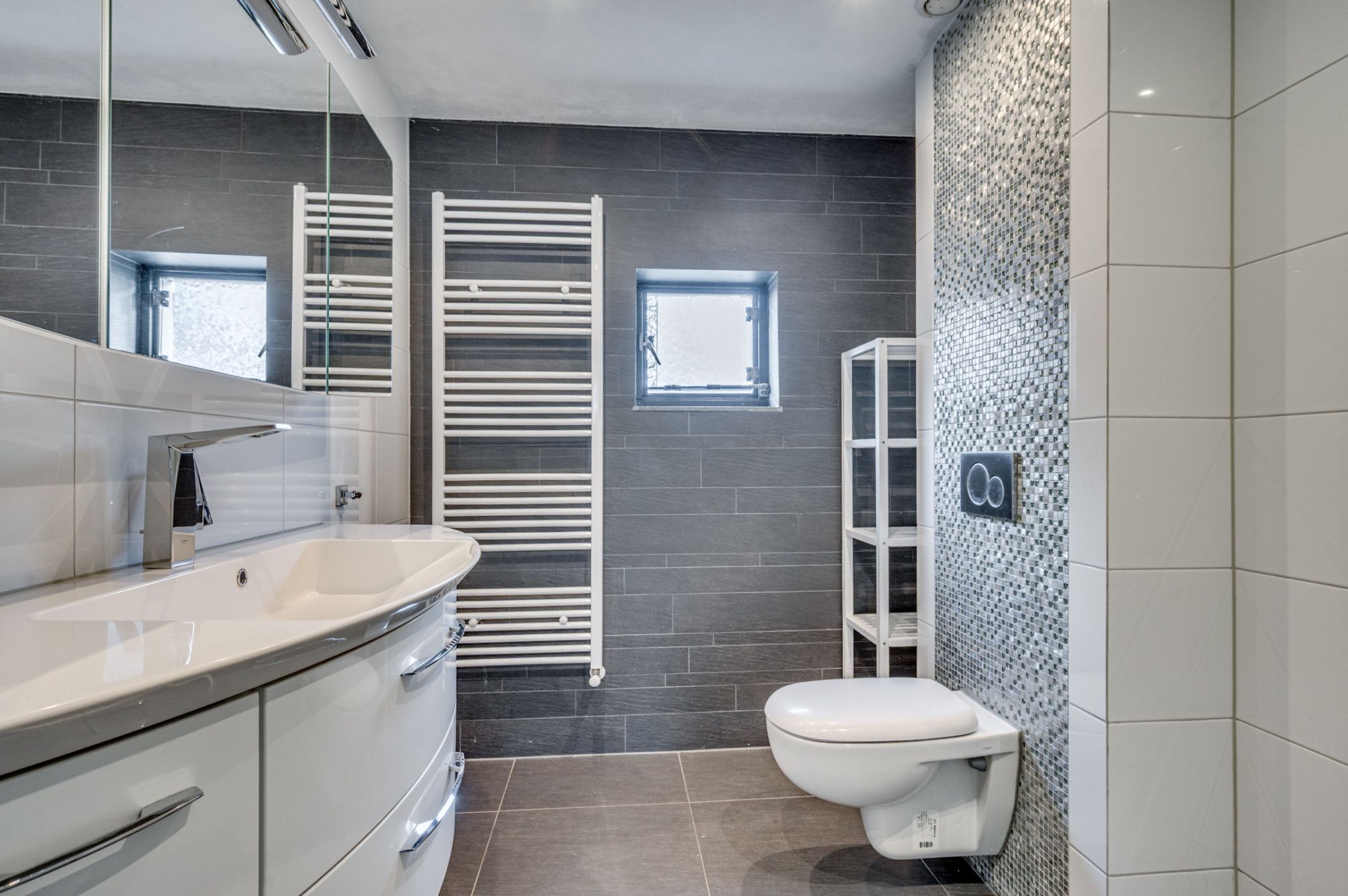 De overloop geeft toegang tot 3 zeer ruime slaapkamers, de badkamer en de vaste trapopgang naar de 2e verdieping. De slaapkamers zijn ca. 8m², 13,5m² en 15m² groot. De slaapkamers en de hal zijn voorzien van eenzelfde laminaatvloer en rolluiken. De badkamer is ca. 6m² groot en geheel betegeld. De badkamer is voorzien van een inloopdouche, zwevend toilet, wastafel met meubel, designradiator, buitenraam en mechanische ventilatie.