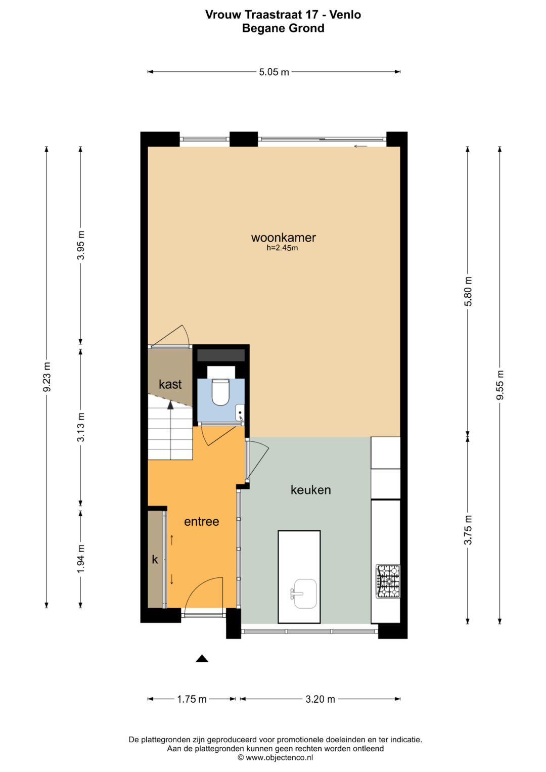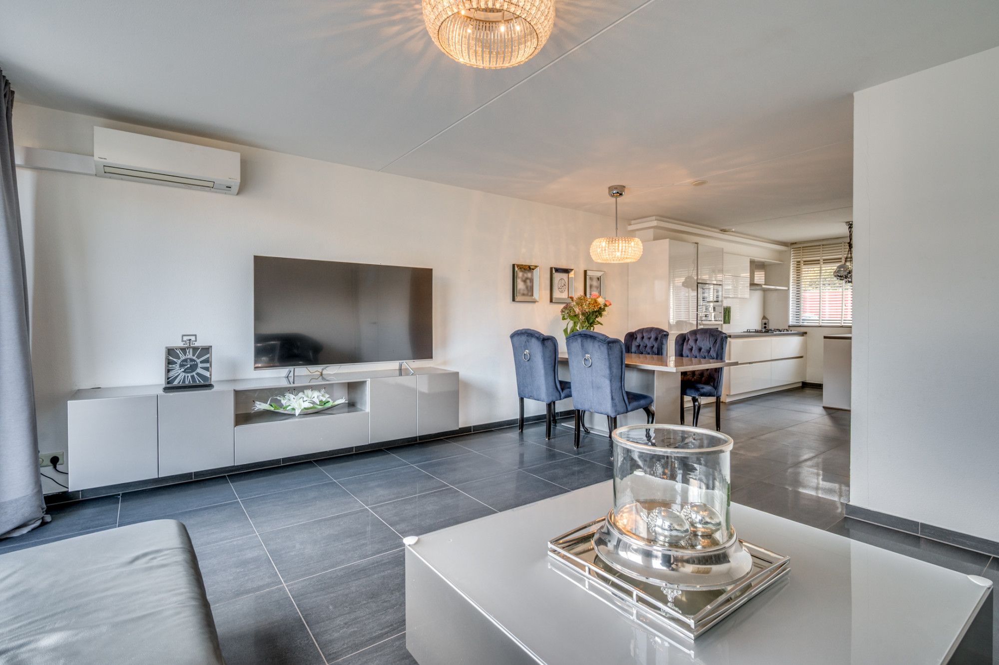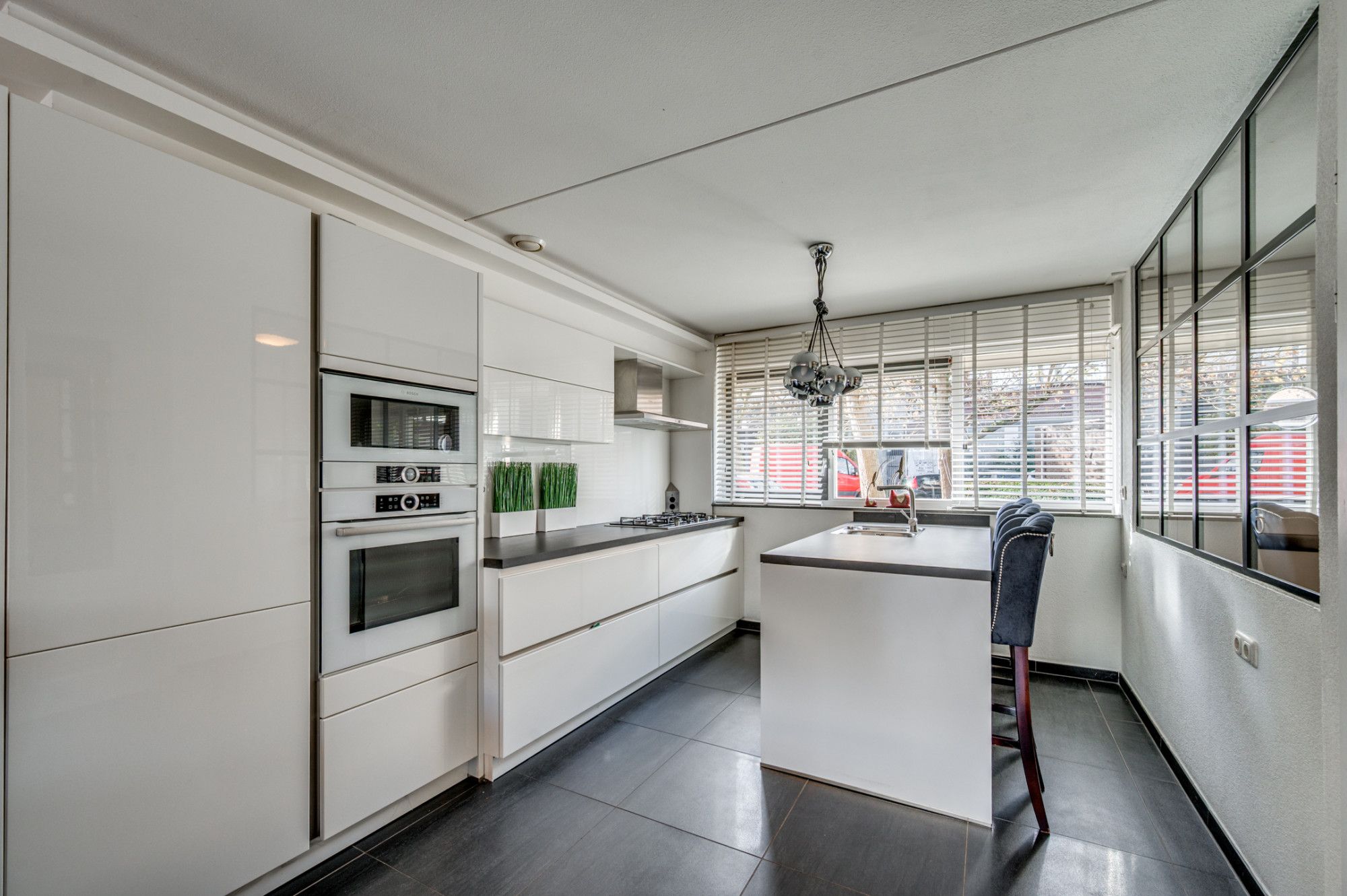 De entree/ hal geeft toegang tot de trapopgang naar de 1e verdieping, separate toiletruimte en de woonkamer. De geheel betegelde toiletruimte is voorzien van een zwevend toilet, fonteintje en mechanische ventilatie. Middels een loopdeur is de open keuken met woonkamer te betreden. De keuken is aan de voorzijde van de woning gelegen en is voorzien van een spoeleiland, 5-pits gasfornuis, afzuigkap, oven, magnetron, koelkast, diepvries en zeer veel opbergruimte. Aan de achterzijde is de woonkamer gelegen. Hier is een airco geplaatst en is er toegang tot de trapkast. Middels een schuifpui is de onderhoudsvriendelijke achtertuin te bereiken. De gehele begane grond is voorzien van een tegelvloer, verder zijn de woonkamer en de hal voorzien van vloerverwarming.