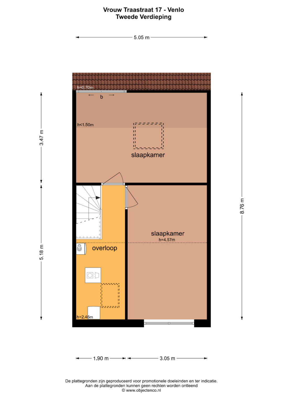 Middels een vaste trap is de overloop van de 2e verdieping te bereiken. De overloop geeft toegang tot de 4e en 5e slaapkamer. Op de overloop bevinden zich de witgoedaansluitingen en de combi CV-ketel (Nefit 2016, eigendom). De 2 ruime slaapkamers zijn voorzien van een laminaatvloer. De slaapkamer aan de voorzijde is verder voorzien van een airco.