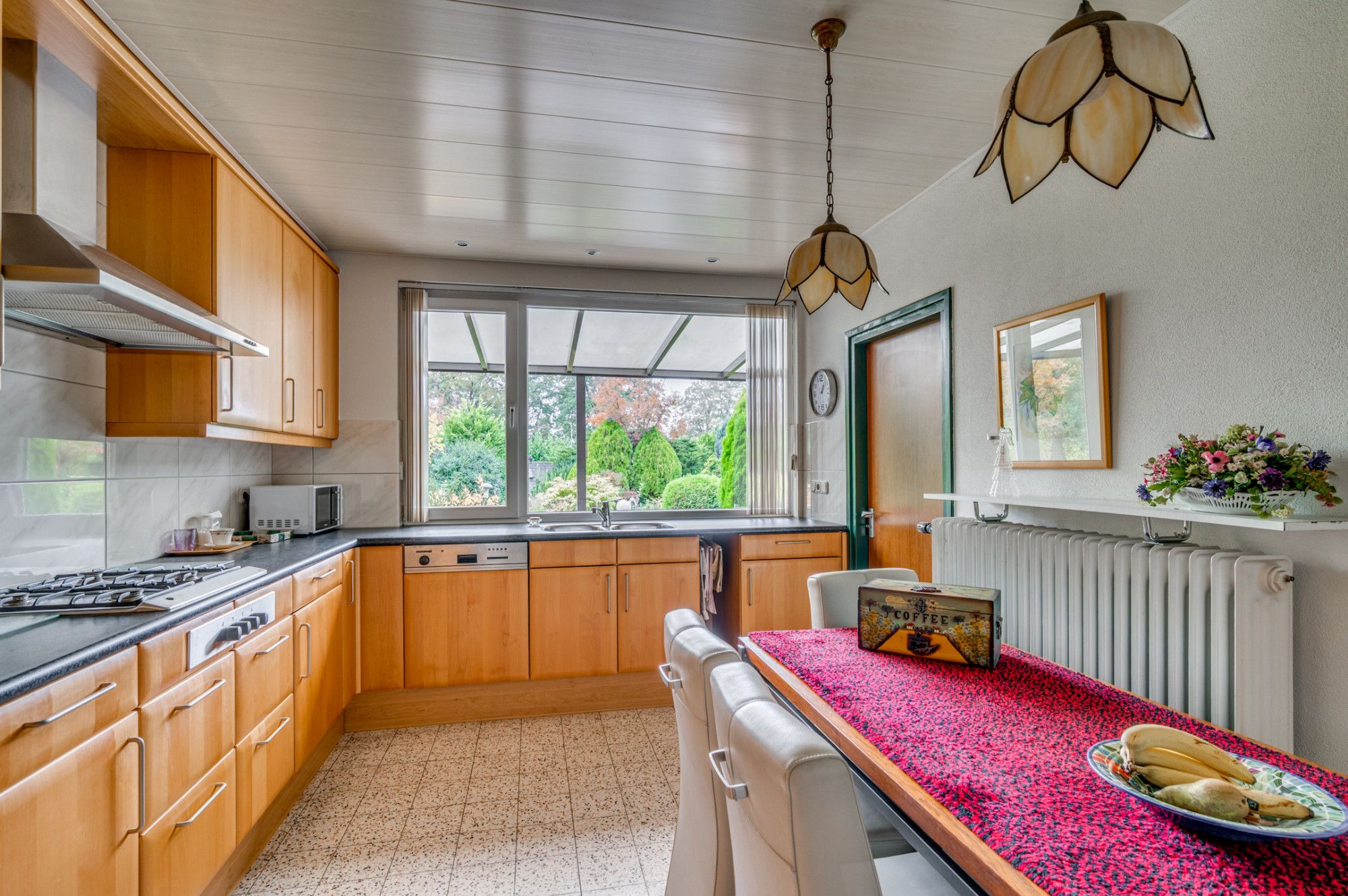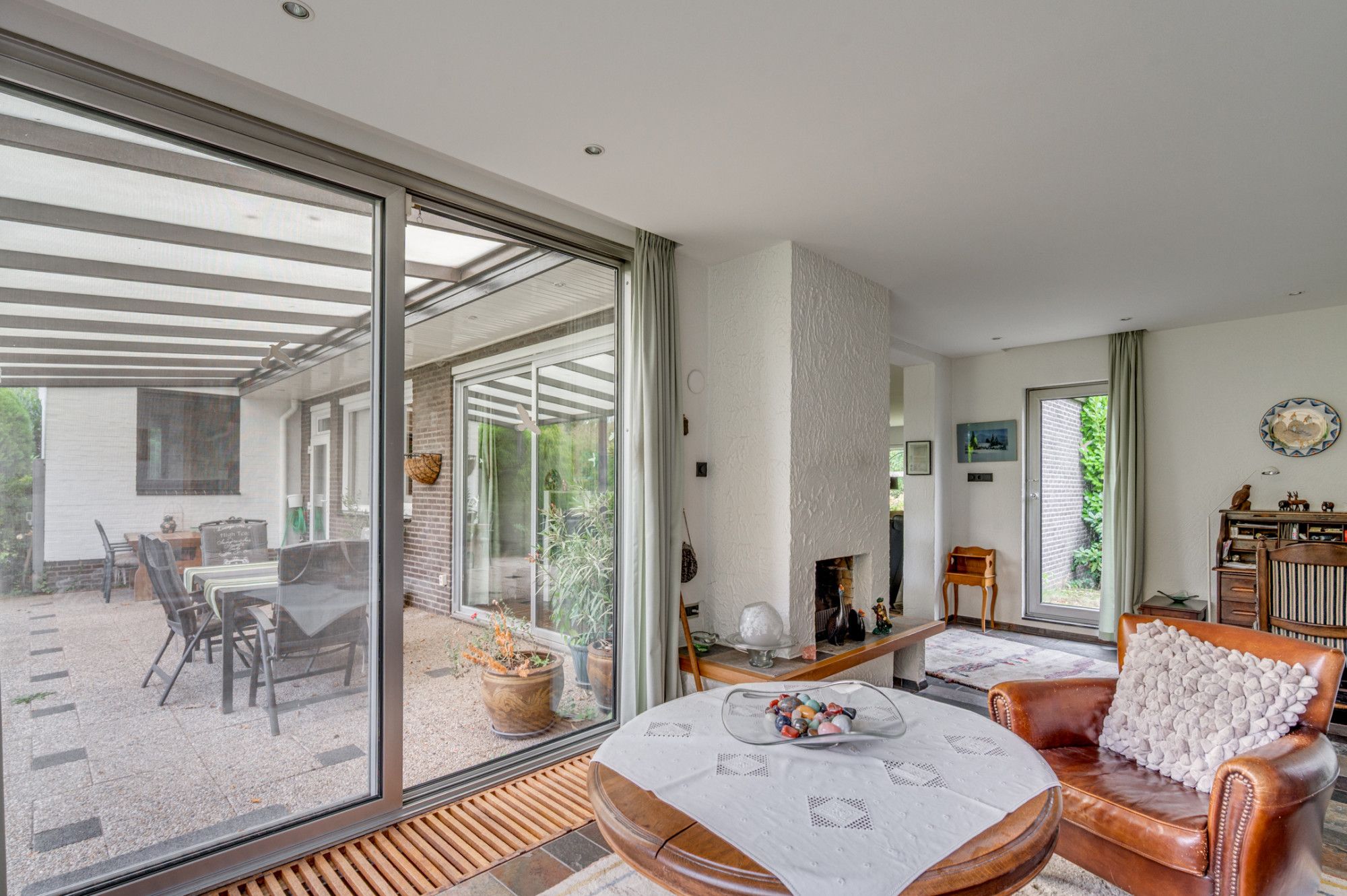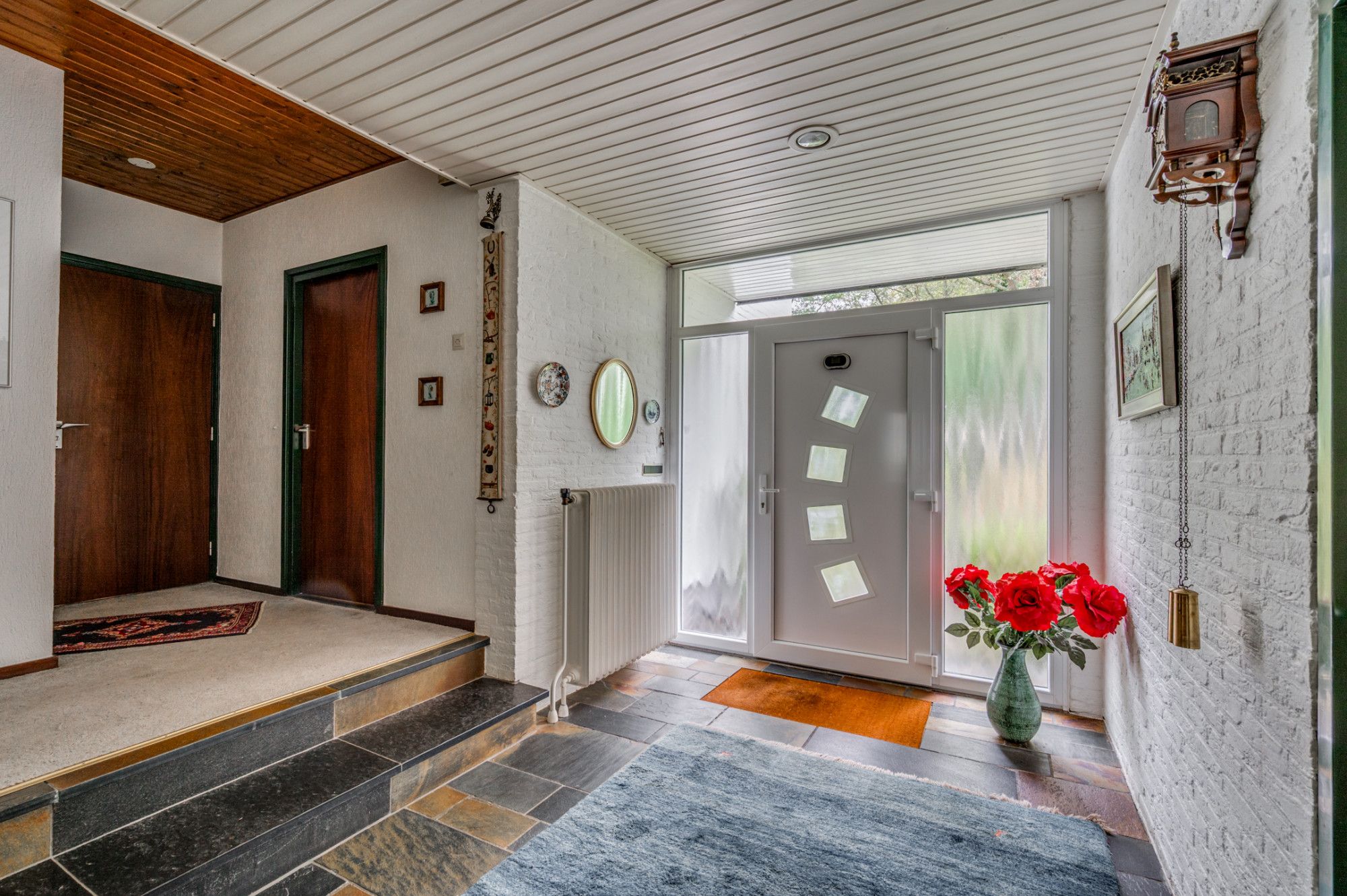 De ruime ontvangsthal geeft toegang tot de woonkamer en keuken aan de linkerzijde en de slaapvertrekken, badkamer en toiletruimte aan de rechterzijde. De ruime L-vormige woonkamer is voorzien van een leistenen vloer, zeer veel lichtinval door de grote raampartijen en een sfeervolle gashaard. Middels een schuifpui is er toegang naar de tuin/ overkapping. Via de woonkamer is de zithoek van de woning te bereiken. De zithoek is verdekt opgesteld aan de linker achterzijde van de woning. Hier is een houthaard aanwezig en een schuifpui welke wederom gemakkelijk toegang geeft tot de tuin. De ruime leefkeuken is van alle inbouwapparatuur voorzien en geeft middels een loopdeur toegang tot de bijkeuken. De bijkeuken beschikt over de witgoedaansluitingen, loopdeur naar de tuin en trapgang naar de kelder.