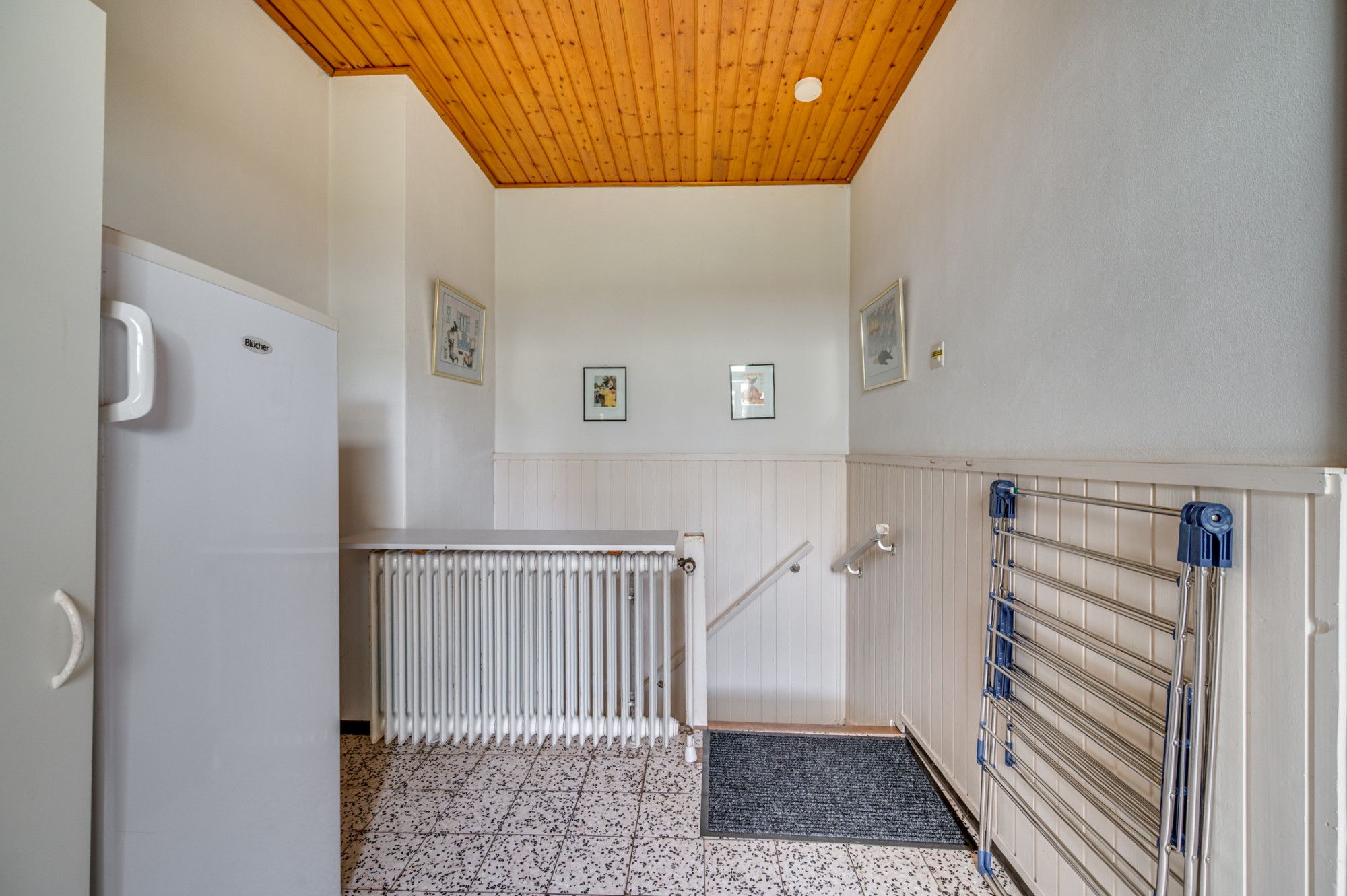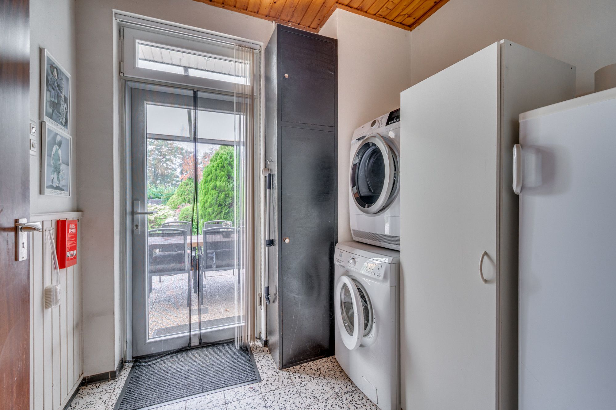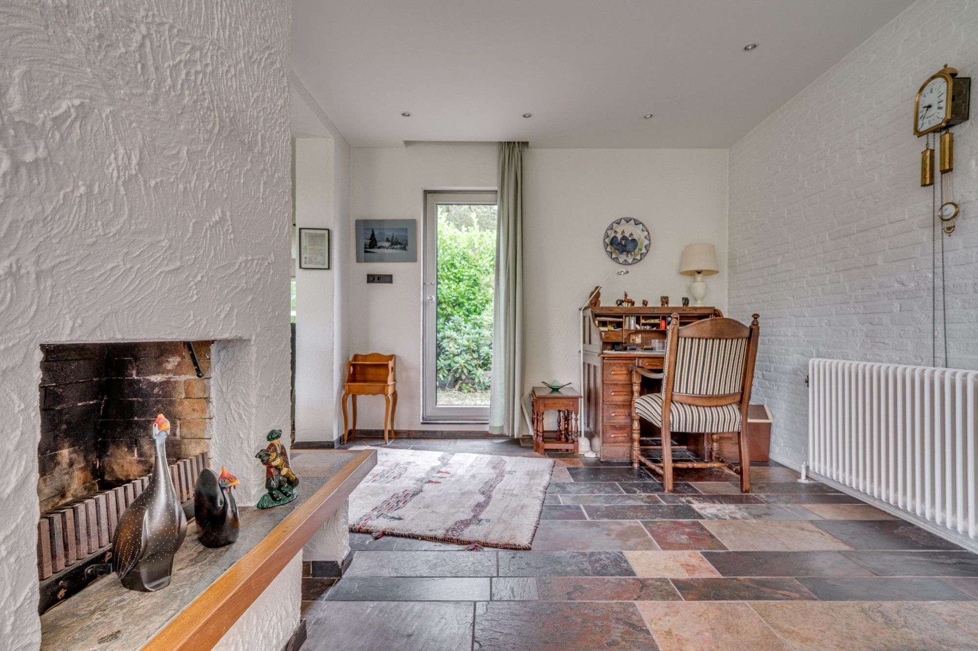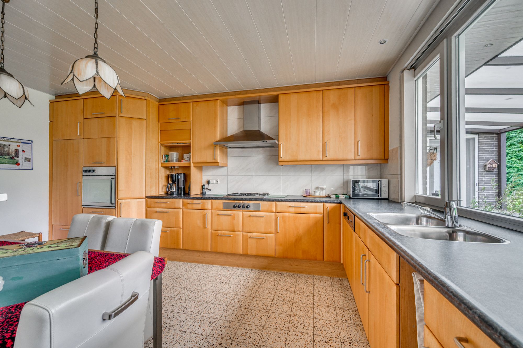 De ruime ontvangsthal geeft toegang tot de woonkamer en keuken aan de linkerzijde en de slaapvertrekken, badkamer en toiletruimte aan de rechterzijde. De ruime L-vormige woonkamer is voorzien van een leistenen vloer, zeer veel lichtinval door de grote raampartijen en een sfeervolle gashaard. Middels een schuifpui is er toegang naar de tuin/ overkapping. Via de woonkamer is de zithoek van de woning te bereiken. De zithoek is verdekt opgesteld aan de linker achterzijde van de woning. Hier is een houthaard aanwezig en een schuifpui welke wederom gemakkelijk toegang geeft tot de tuin. De ruime leefkeuken is van alle inbouwapparatuur voorzien en geeft middels een loopdeur toegang tot de bijkeuken. De bijkeuken beschikt over de witgoedaansluitingen, loopdeur naar de tuin en trapgang naar de kelder.