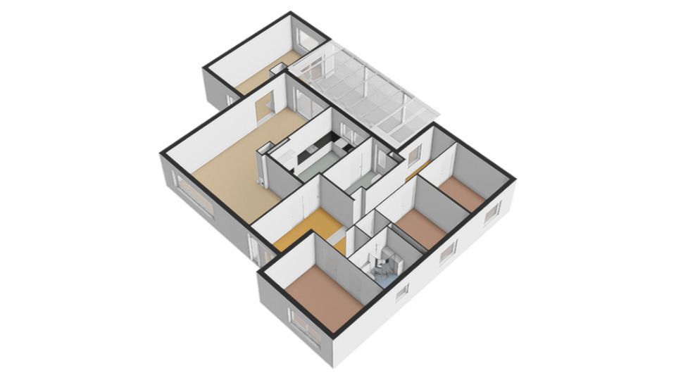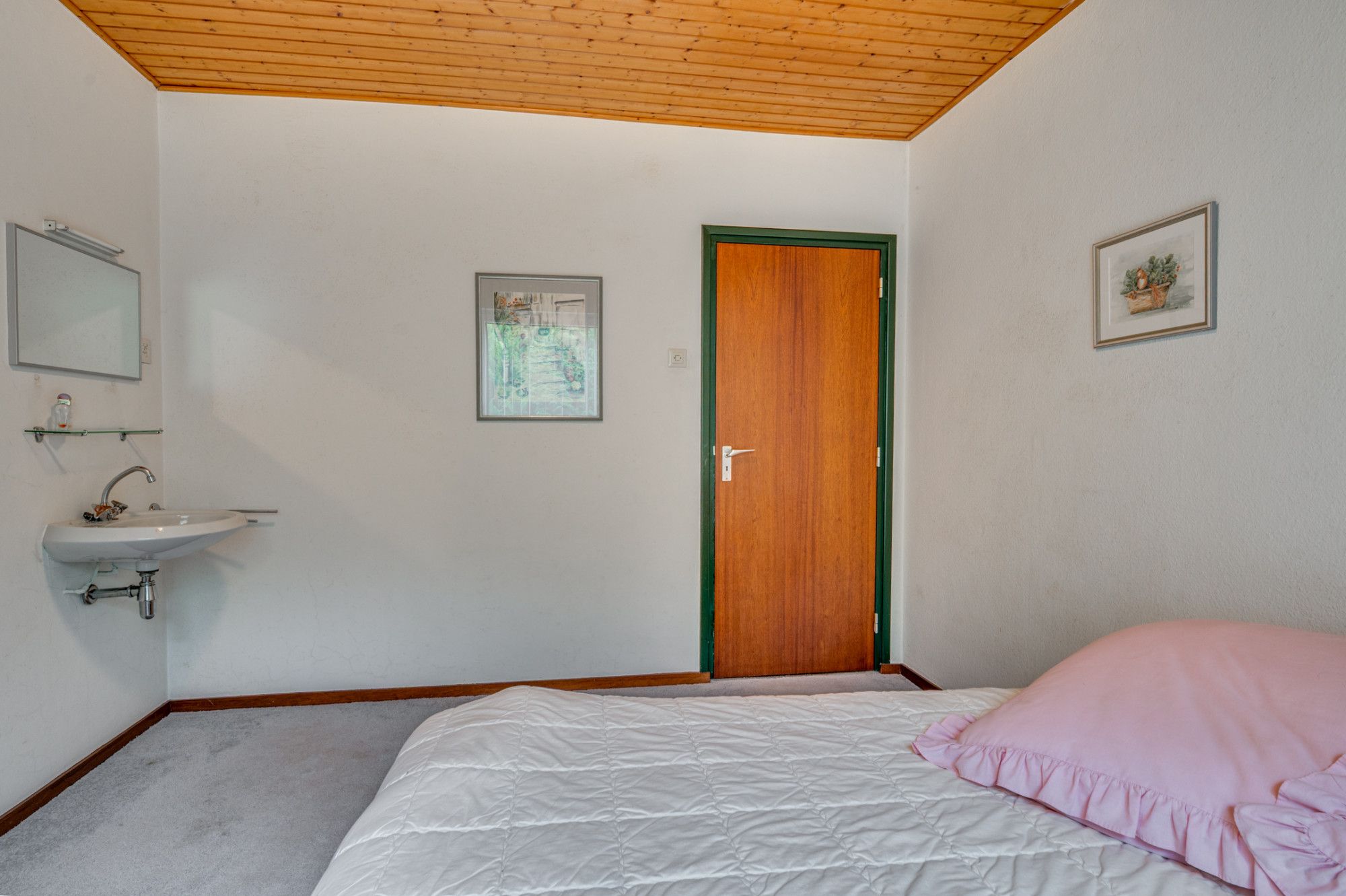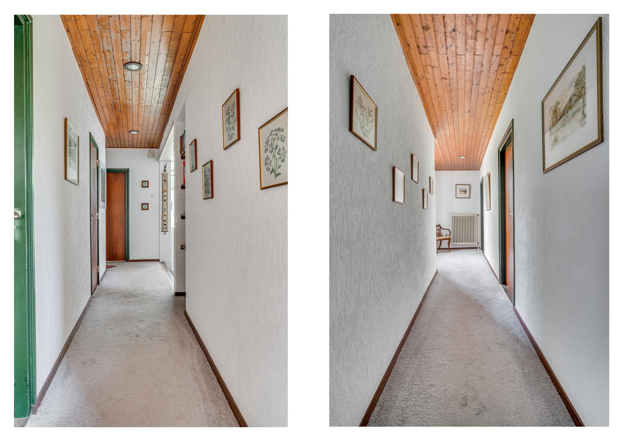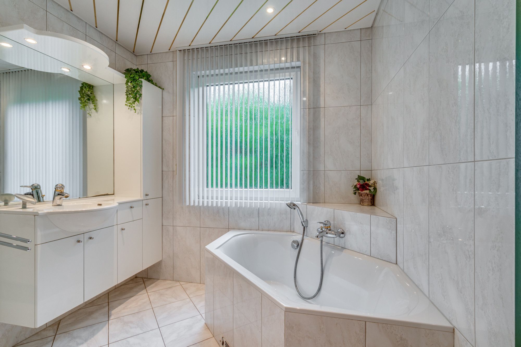 De ruime ontvangsthal geeft toegang tot de woonkamer en keuken aan de linkerzijde en de slaapvertrekken, badkamer en toiletruimte aan de rechterzijde. De ruime L-vormige woonkamer is voorzien van een leistenen vloer, zeer veel lichtinval door de grote raampartijen en een sfeervolle gashaard. Middels een schuifpui is er toegang naar de tuin/ overkapping. Via de woonkamer is de zithoek van de woning te bereiken. De zithoek is verdekt opgesteld aan de linker achterzijde van de woning. Hier is een houthaard aanwezig en een schuifpui welke wederom gemakkelijk toegang geeft tot de tuin. De ruime leefkeuken is van alle inbouwapparatuur voorzien en geeft middels een loopdeur toegang tot de bijkeuken. De bijkeuken beschikt over de witgoedaansluitingen, loopdeur naar de tuin en trapgang naar de kelder.