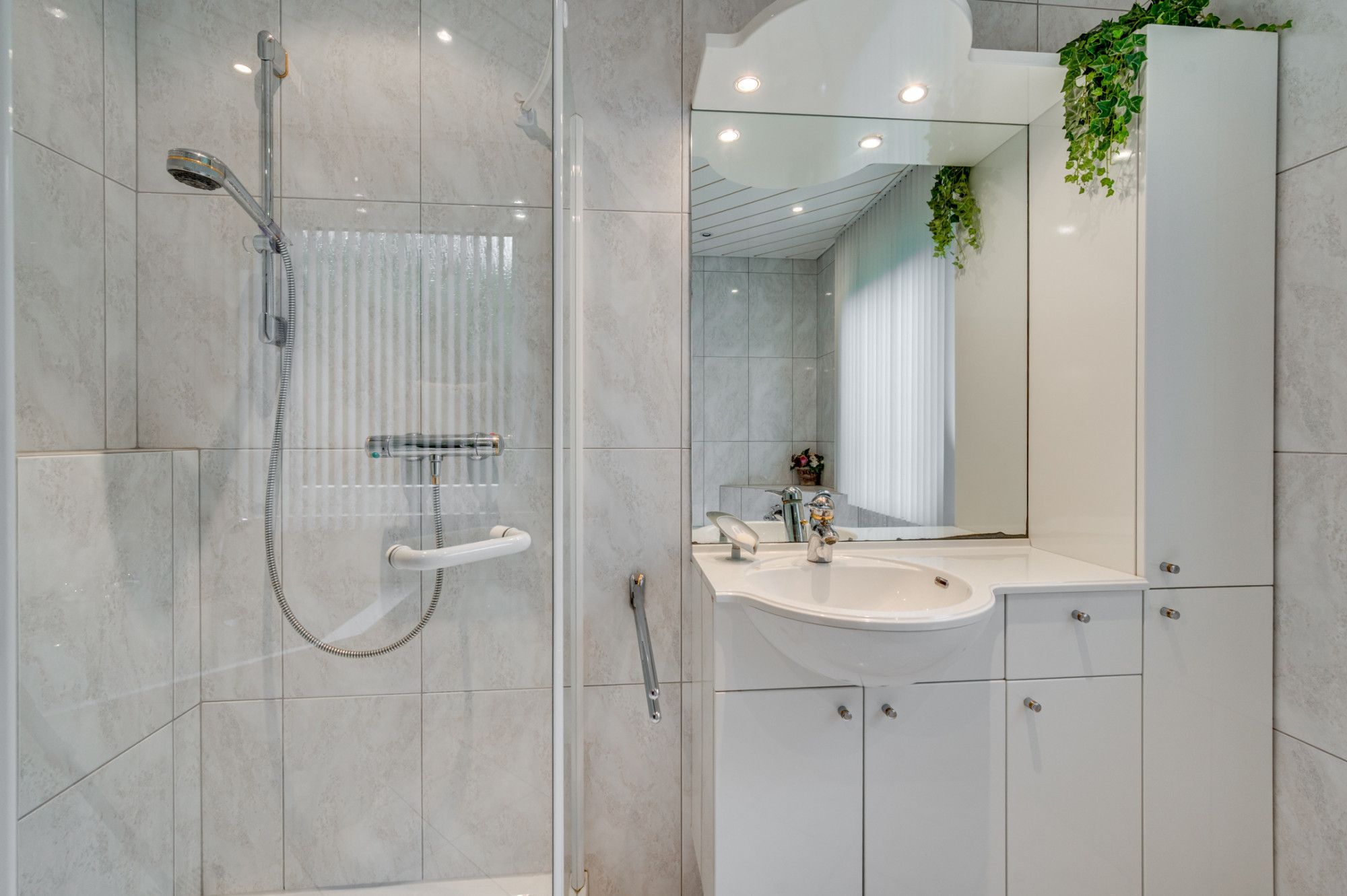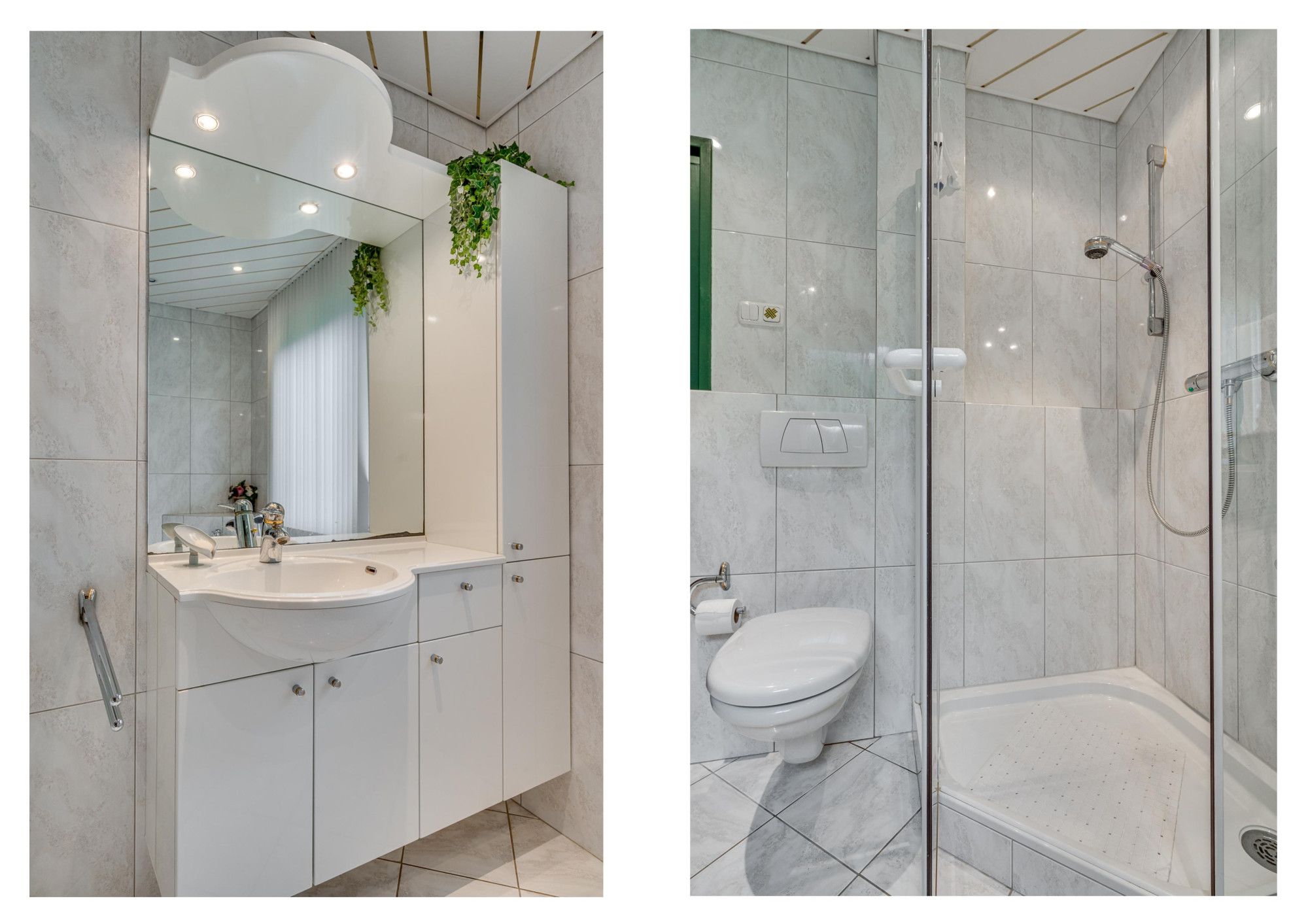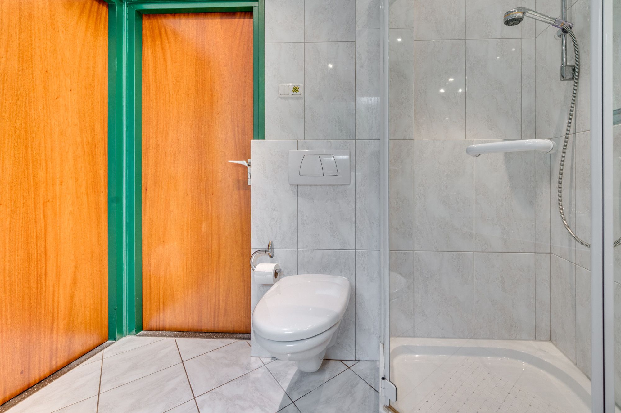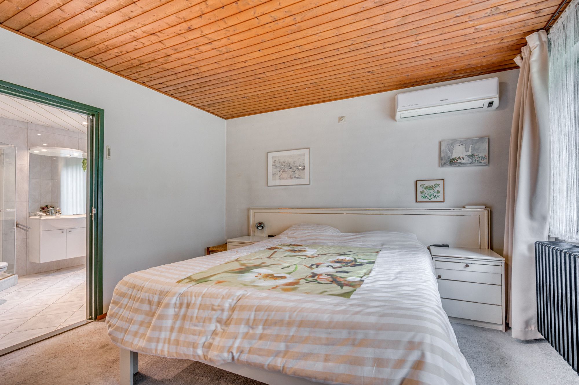 Bij binnenkomst van de woning is het mogelijk om middels 2 traptreden naar de 3 slaapkamers, badkamer en separate toiletruimte te gaan. De masterbedroom is aan de voorzijde van de woning gelegen. Deze is ca. 17m² groot, beschikt over een airco en geeft de mogelijk om de badkamer en suite te bereiken. De badkamer is geheel betegeld en voorzien van een douche, wastafel met meubel, ligbad, zwevend toilet en buitenraam. De badkamer is tevens te bereiken via de hal. De separate toiletruimte is deels betegeld en voorzien van een toilet, fonteintje en mechanische ventilatie. De 2 slaapkamers aan de achterzijde zijn ca. 12m² groot.