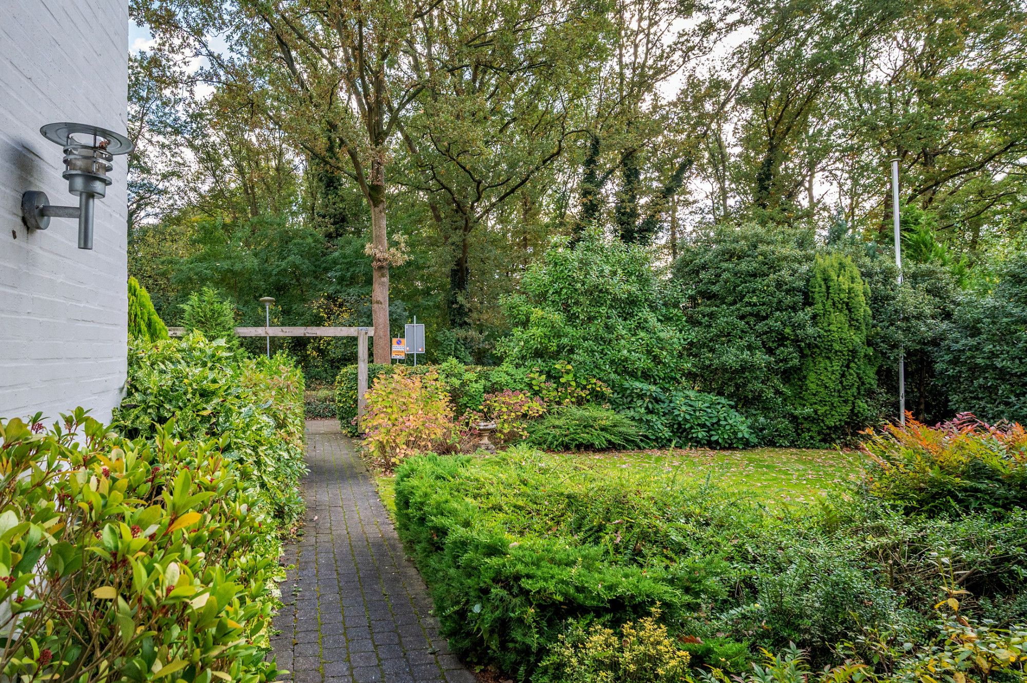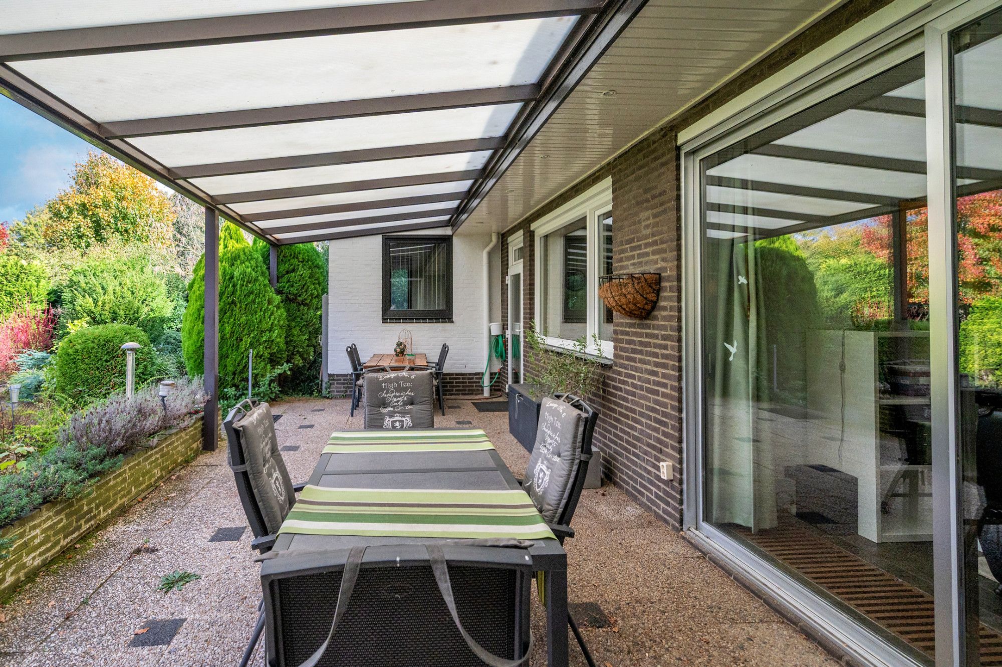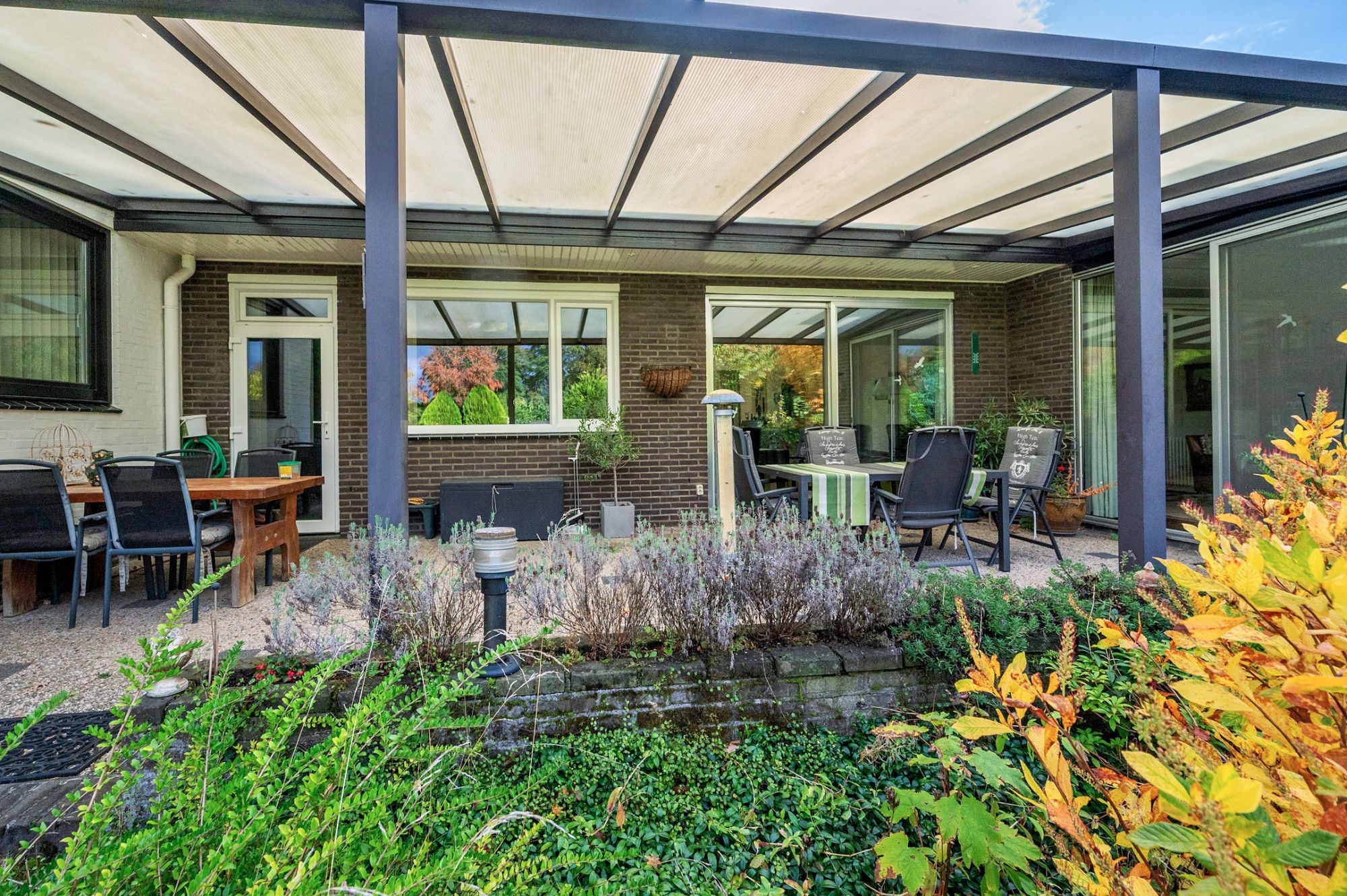 De woning is geheel rondom voorzien van tuin. De achtertuin beschikt over zeer veel privacy en groen. Aan de achtergevel is een overkapping geplaatst welke prachtig uitzicht geeft op het groen.