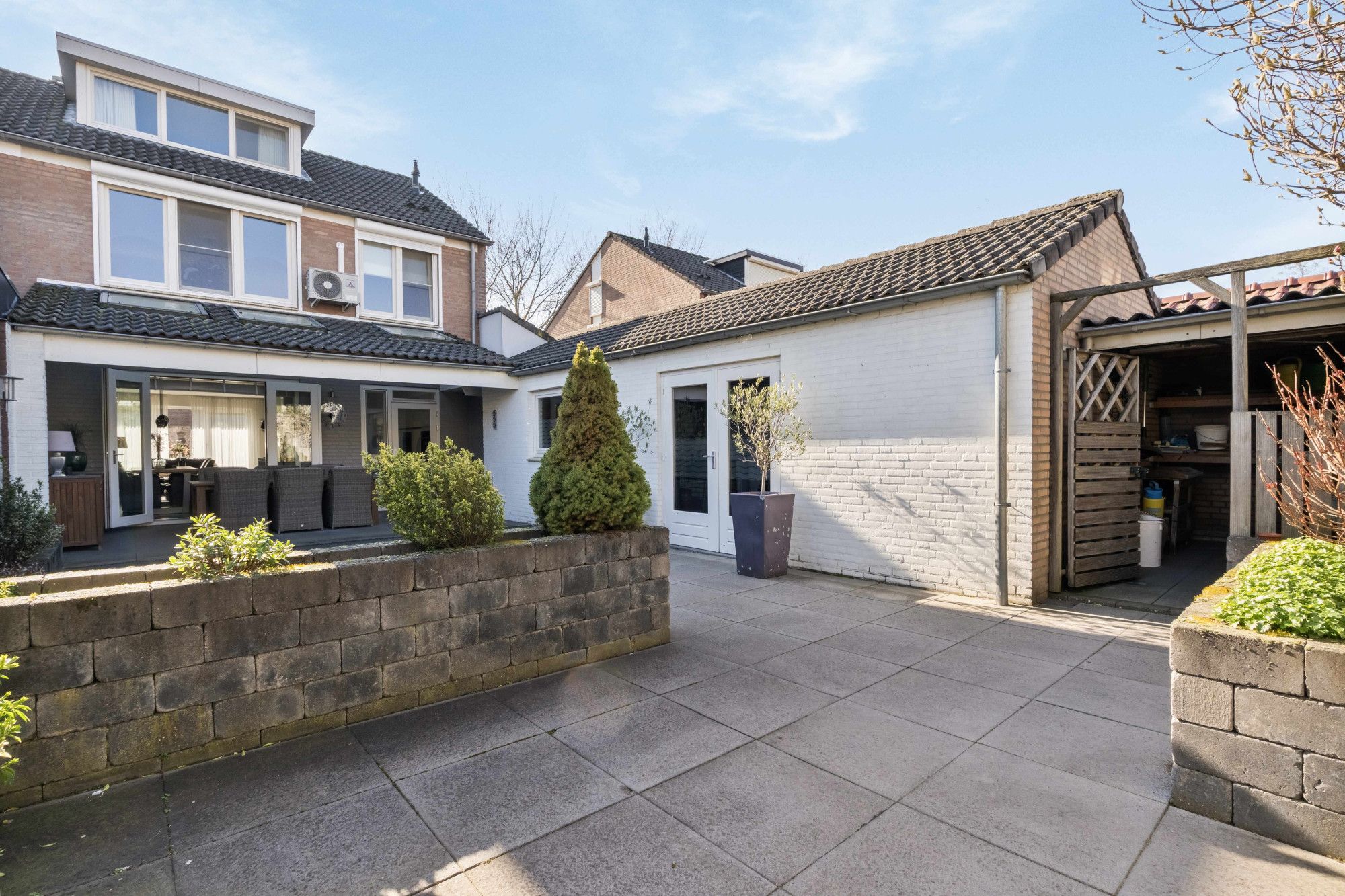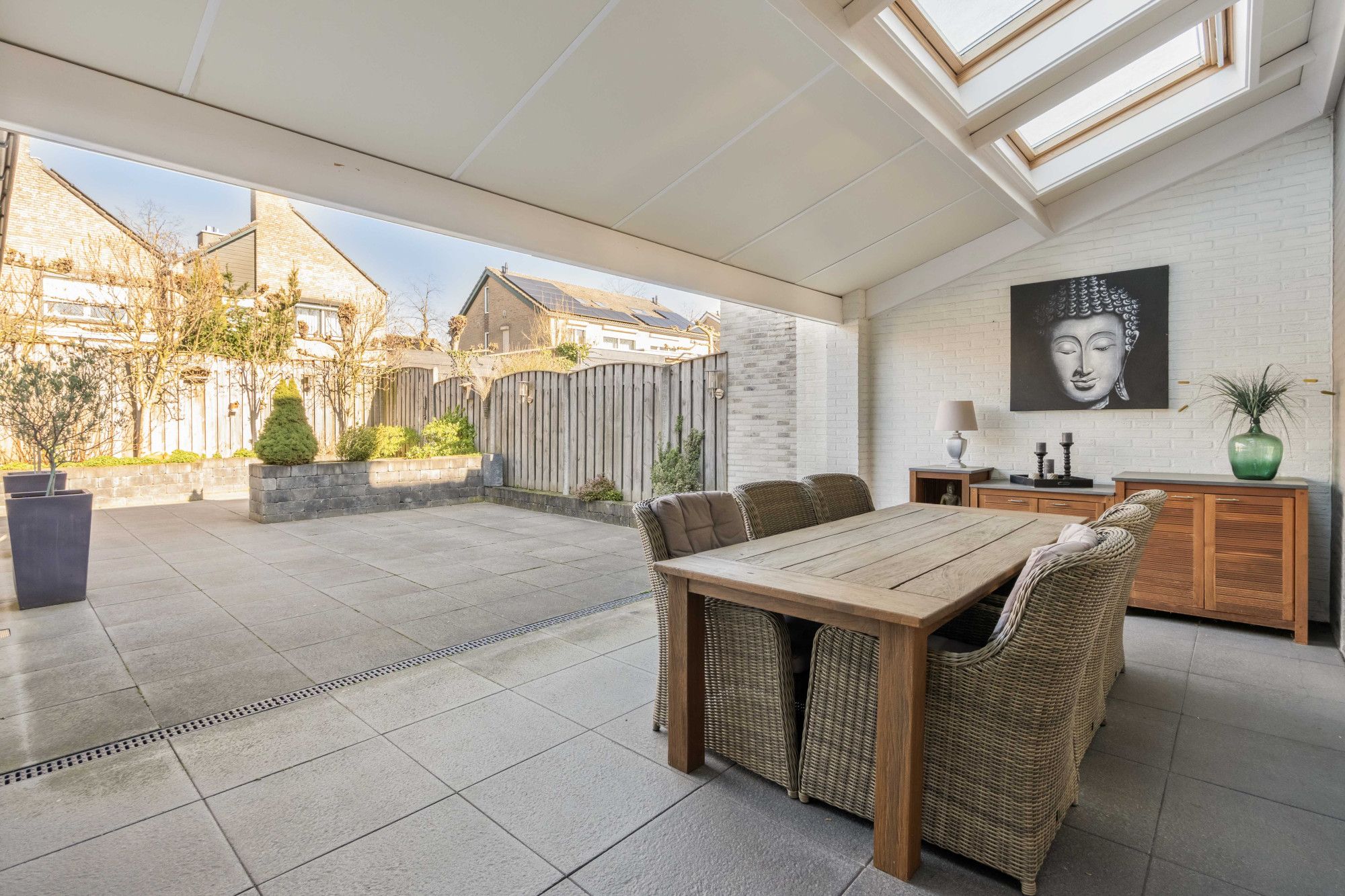 De onderhoudsvriendelijke achtertuin is in 2010 aangelegd en beschikt over borders en een ruime, sfeervolle en geïsoleerde overkapping (ca. 15,5m2) met dakpannen en drie dakramen. Een heerlijke plek om in alle rust te ontspannen of lange zomeravonden met familie en vrienden door te brengen. Daarnaast is er nog een separate overkapping/berging voor tuingereedschap.