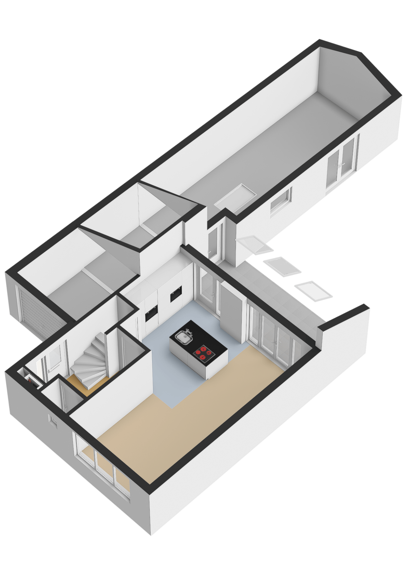 De woonkamer en keuken samen bieden een royale leefruimte van ca. 43 m2. De gehele begane grond is afgewerkt met een geïsoleerde keramische tegelvloer met vloerverwarming, wat zorgt voor optimaal comfort.