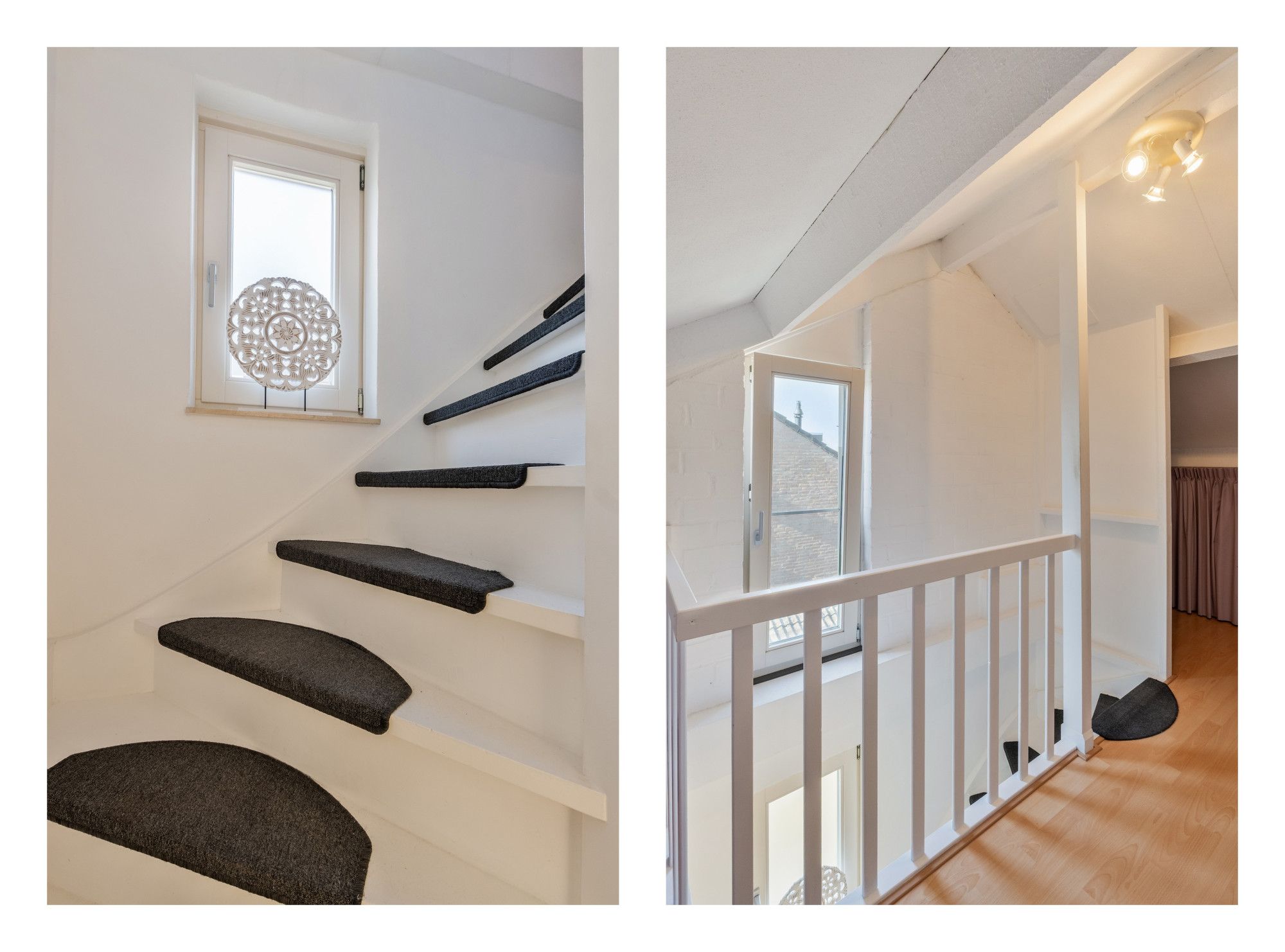 Via een vaste trap bereikt u de tweede verdieping. Hier bevindt zich een praktische overloop met witgoedaansluiting, bergruimte en de Nefit cv-combiketel (2018, eigendom).