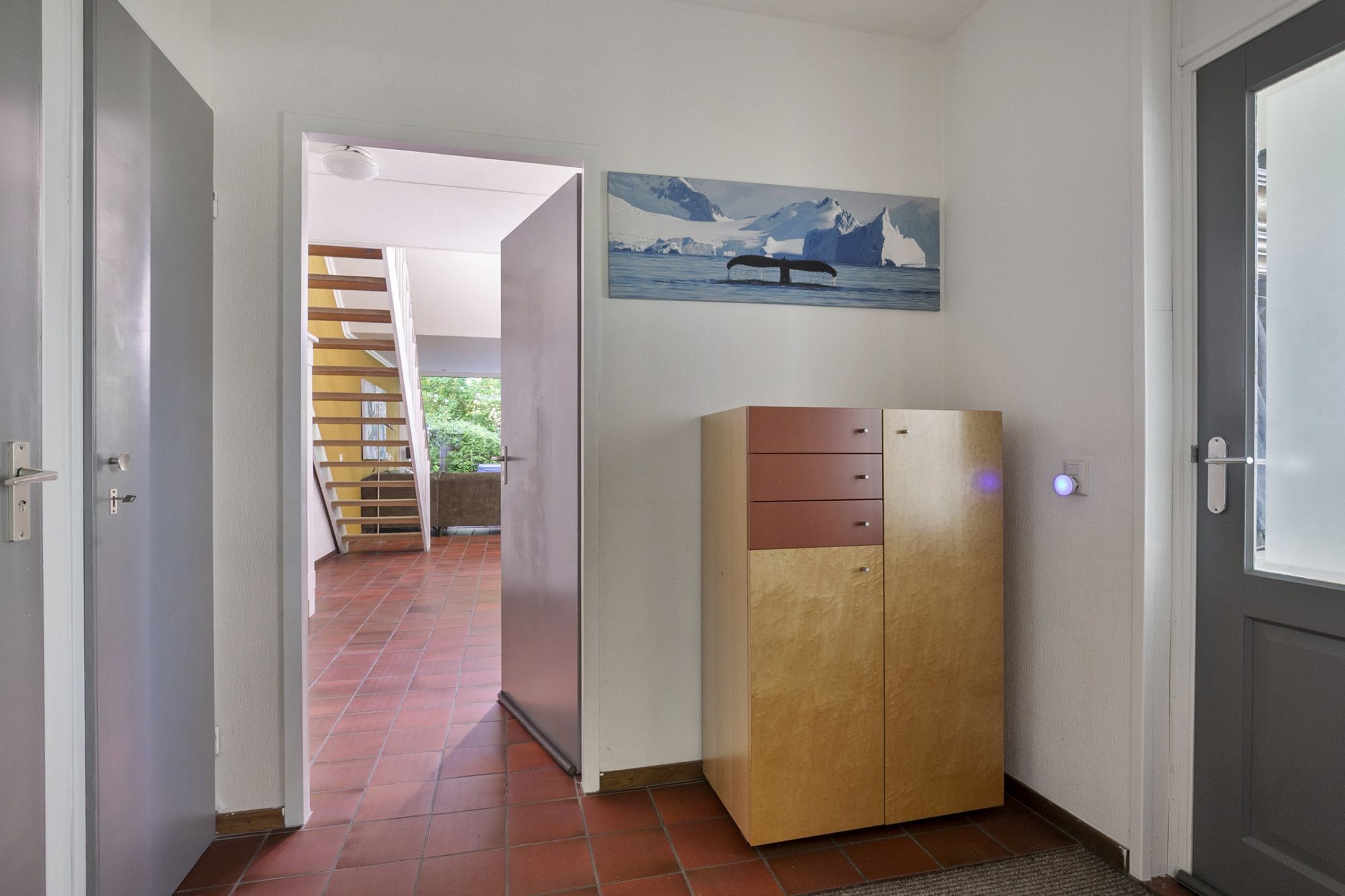 Entree/hal met toiletruimte, meterkast met vernieuwde groepenkast en toegang tot de multifunctionele ruimte aan de voorzijde van de woning welke kan worden benut als werkkamer, speelkamer of zelfs slaapkamer. Aan de achterzijde is de woonkamer gelegen welke is georiënteerd op de achtertuin door de grote raampartij aan de achterzijde met schuifpui en het grote raam aan de zijkant. Wat de woonkamer speels maakt is de trap naar de verdieping met vide wat zorgt voor een ruimtelijk gevoel.. De half open keuken is eenvoudig en voorzien van gaskooktoestel, afzuigkap en oven.