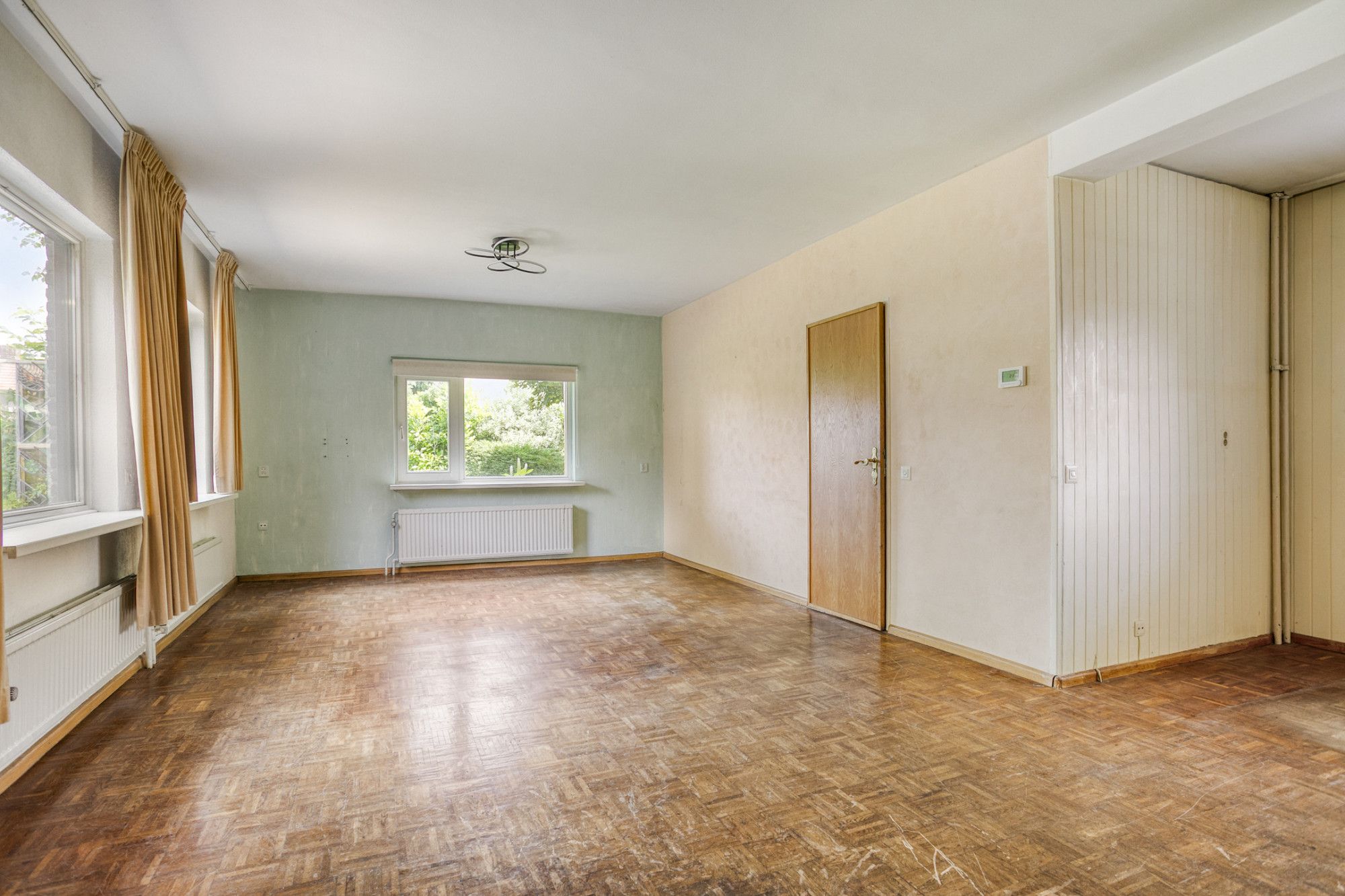De woonkamer is ruim opgezet (circa 38 m²) en voorzien van grote raampartijen die zorgen voor veel lichtinval. Vanuit de woonkamer heb je zicht op de achtertuin. De ruimte is eenvoudig uitgevoerd en biedt volop mogelijkheden om geheel naar eigen smaak en wens gemoderniseerd te worden.