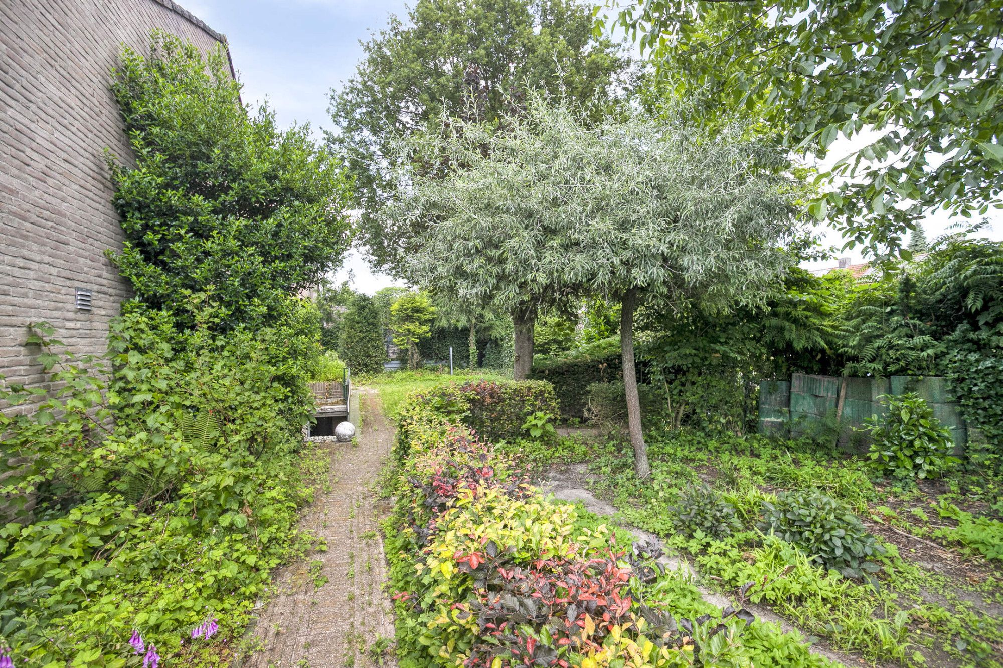 De tuin is gelegen op het noordwesten en biedt een combinatie van bestrating en groen. Het betreft een ruime tuin en door de ligging en het formaat is er voldoende ruimte om een fijn terras en speel- of tuinruimte te realiseren. Achterin de tuin bevindt zich een praktische overkapping.