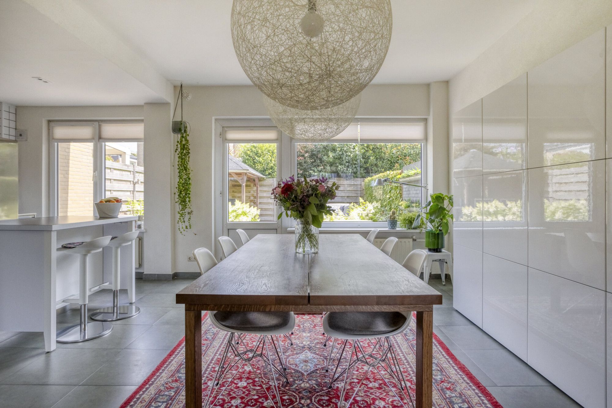De open keuken is echt een fijne plek in huis, deze is voorzien van een 5-pits inductie kookplaat (2022) een combi oven/magnetron (2023) een vaatwasser en een ruime Amerikaanse koelkast met ijsdispenser. Het keukeneiland biedt extra werk-en opbergruimte maar is ook gewoon een gezellige plek om aan te zitten en praten tijdens het bakken en koken.