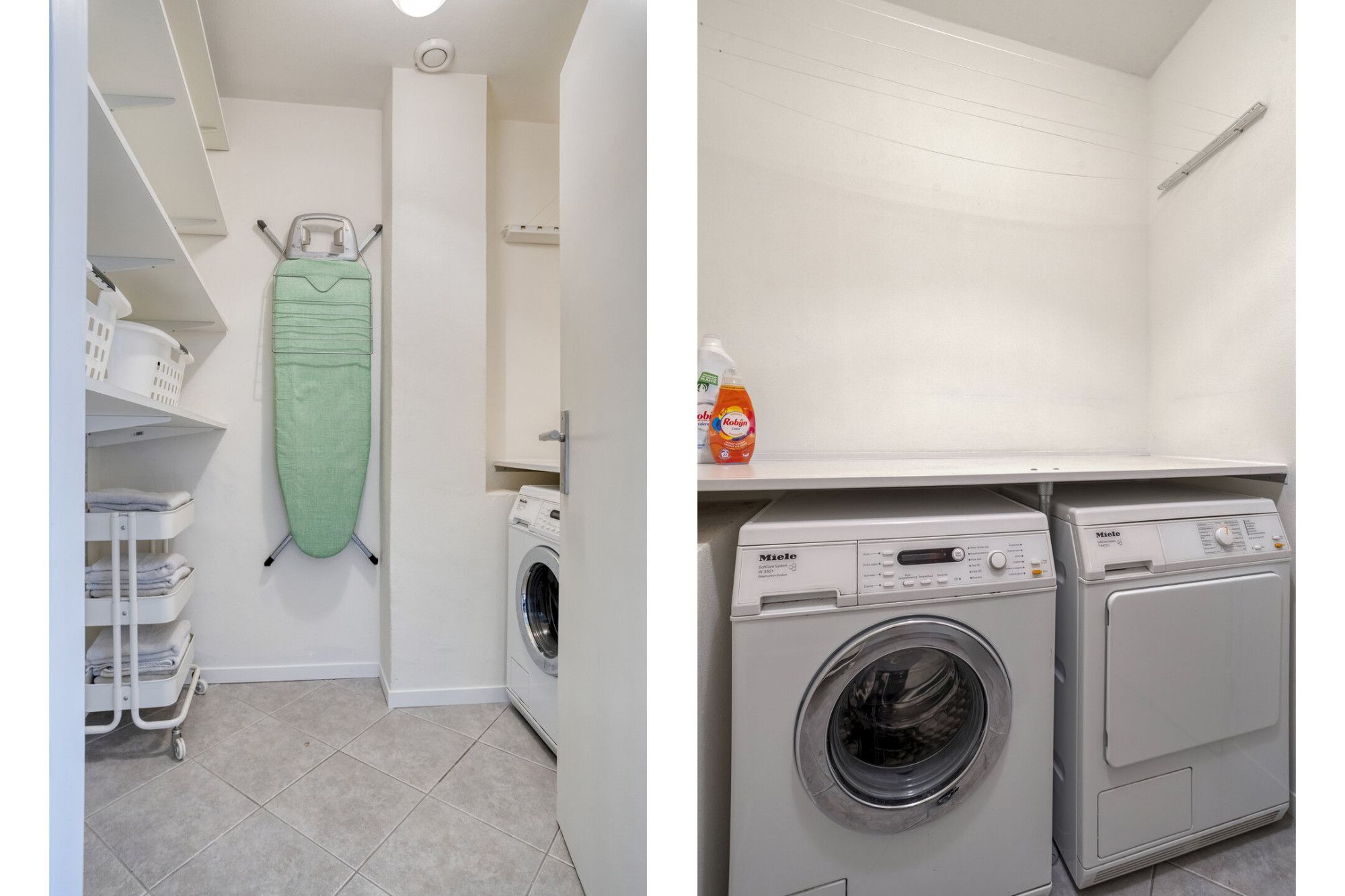 In de wasruimte bevinden zich aansluitingen voor wasmachine en droger. Deze ruimte is praktisch ingericht.