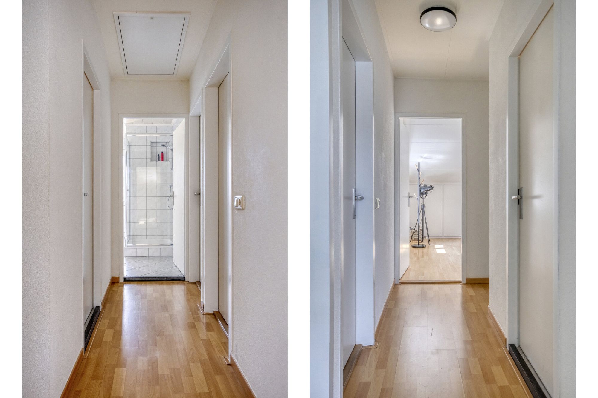 Via de trap kom je uit op de overloop. Vanuit hier is er een toegang tot 3 slaapkamers, een badkamer en de wasruimte.